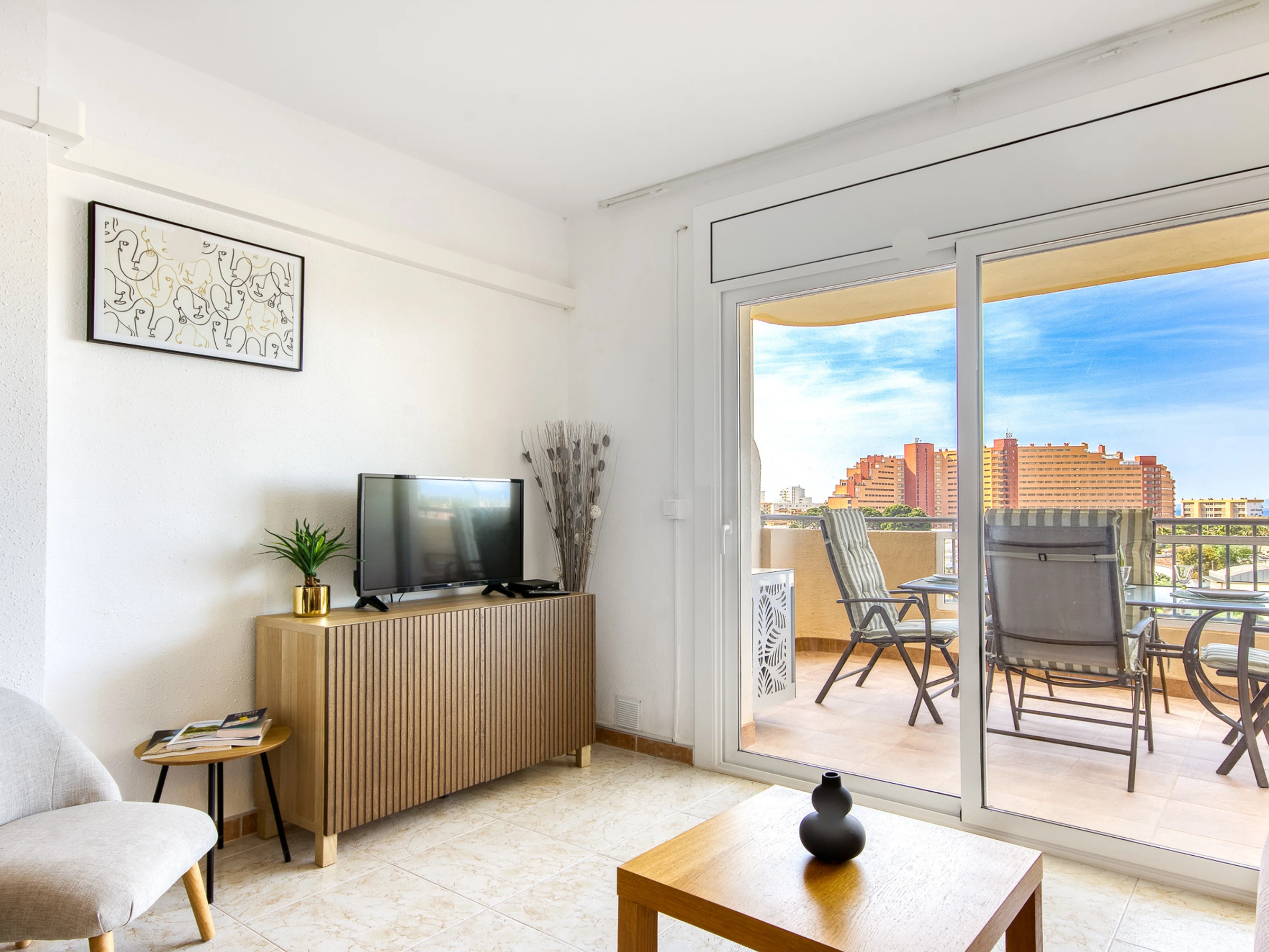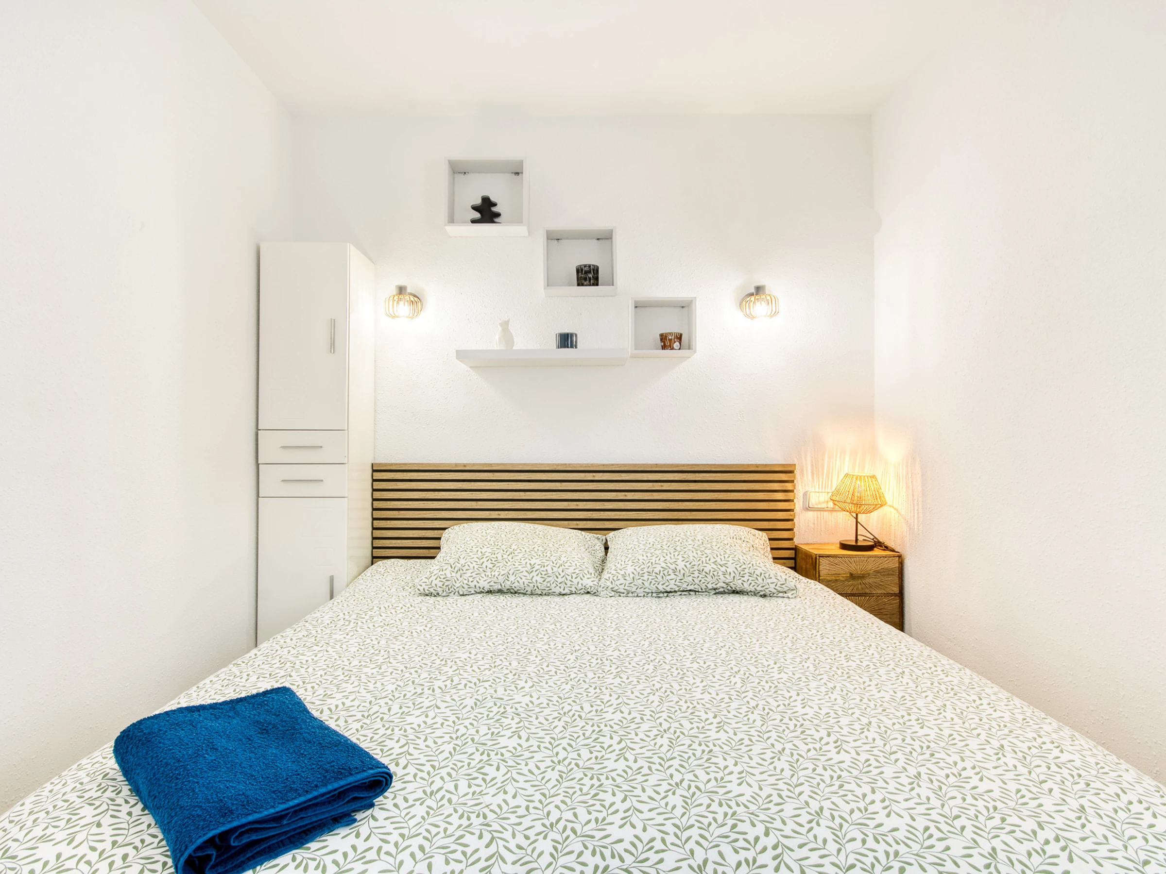 El apartamento cuenta con 1 dormitorio bien distribuido, equipado con una cama doble de 150 cm. Su capacidad total es para 4 personas. El salón dispone de un sofá cama convertible para dos personas, perfecto para alojar a los acompañantes,siendo ideal para familias o parejas que buscan un espacio práctico y confortable.