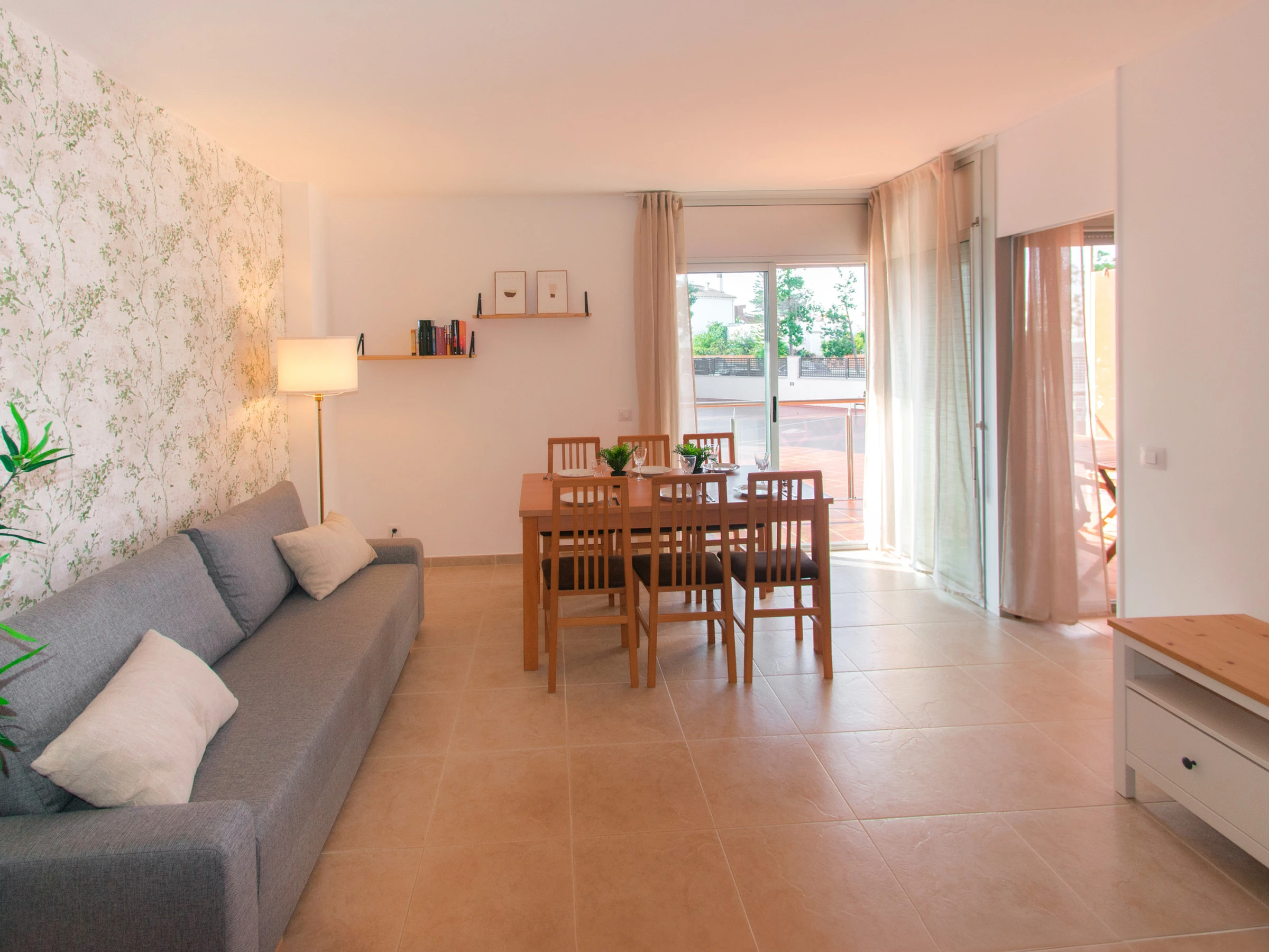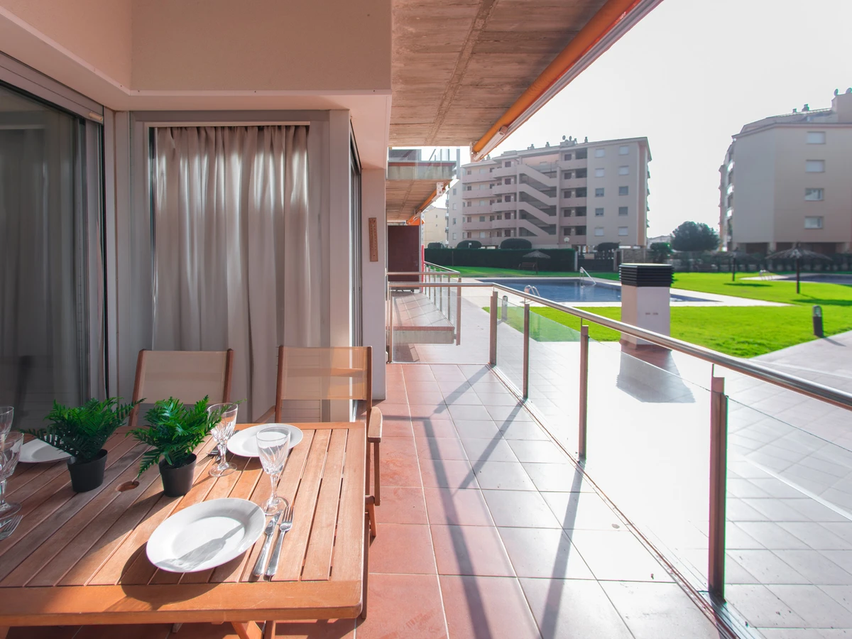 Apartamento amplio y cómodo, con salón-comedor, cocina equipada y baño completo. Perfecto para unas vacaciones en Roses, con piscina comunitaria para refrescarse en temporada y terraza para comer al aire libre.