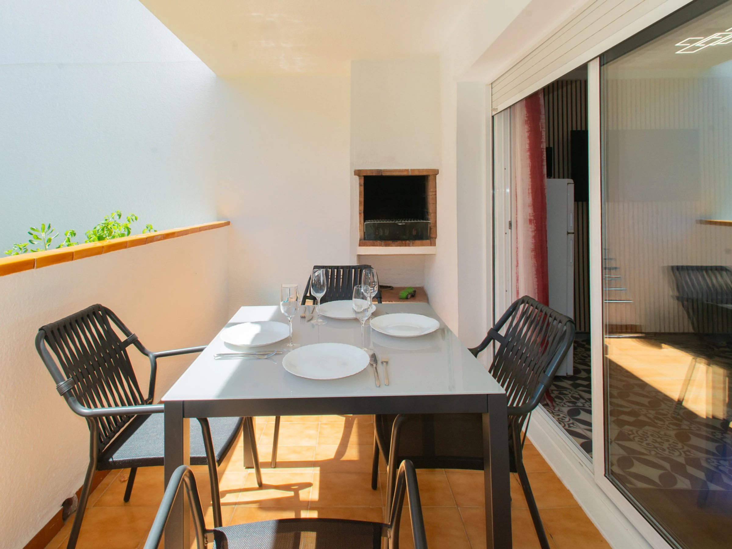 Desde la sala de estar se accede a una terraza que se convertirá en su lugar favorito para desayunar y cenas. La zona de comedor en la terraza ofrece la posibilidad de disfrutar de las comidas al aire libre, deleitándose con las hermosas vistas de los alrededores. Aquí se puede pasar el tiempo leyendo un libro o simplemente disfrutando de la tranquilidad y la calma.