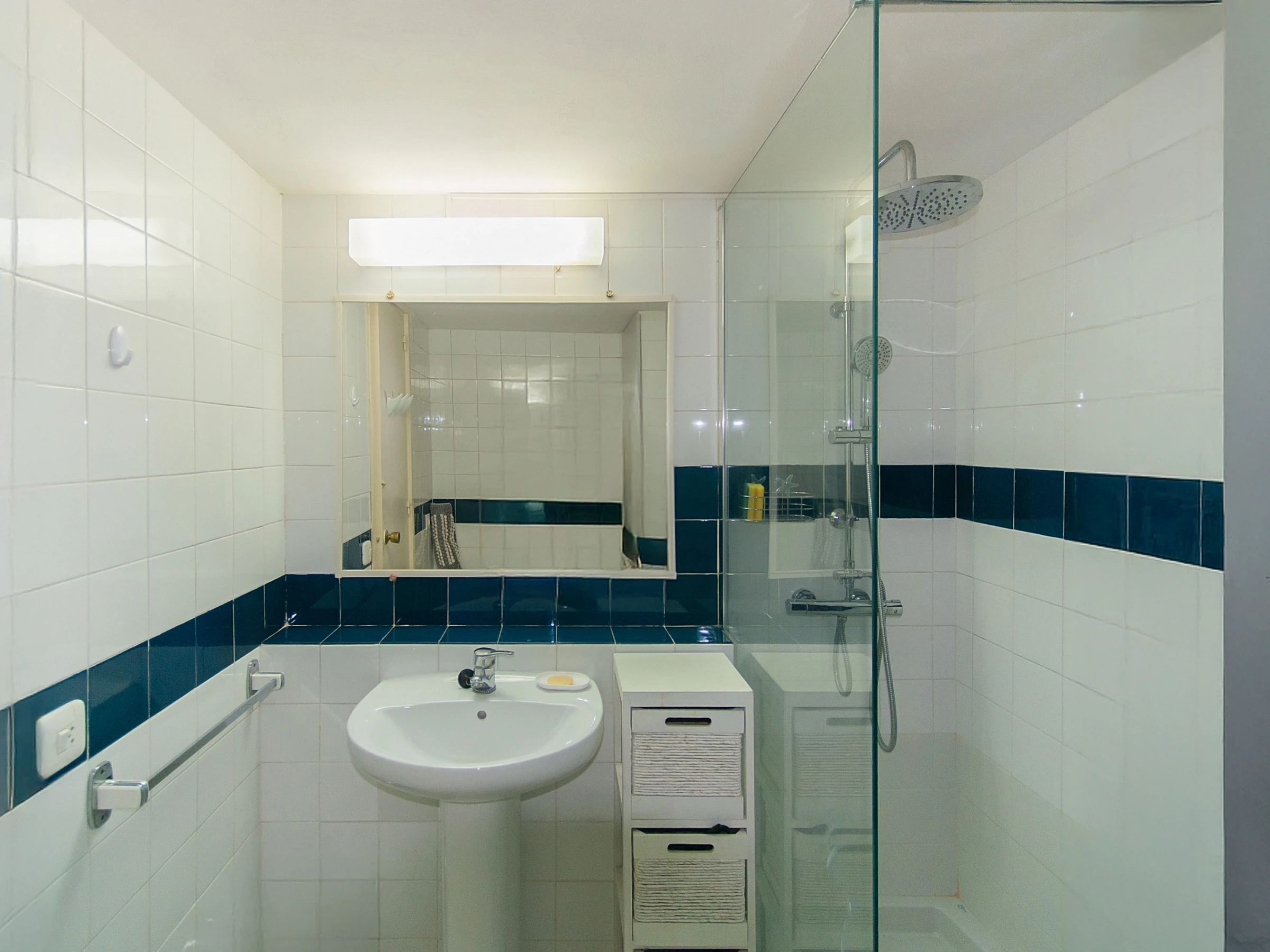 El baño con ducha proporciona todas las comodidades necesarias. Alrededor del estudio hay numerosos cafés y restaurantes donde se pueden probar delicias locales y disfrutar de la atmósfera de la hospitalidad española.