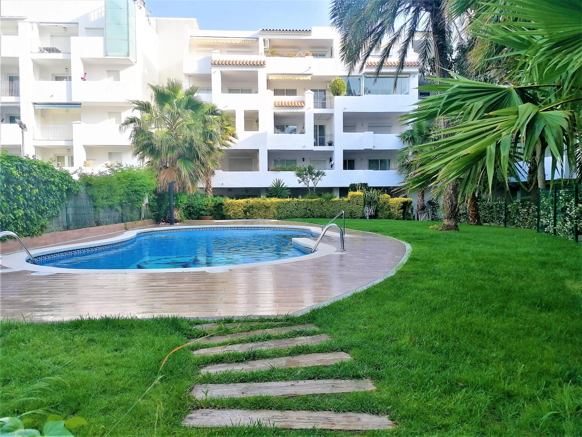 Descubre un espacio tranquilo y acogedor en la zona de Cala Montjoi de Roses. Este apartamento, ubicado en la planta baja del edificio “Royal Marine I”, ofrece vistas a unprecioso jardín comunitario y a la piscina de agua salada, creando un entorno perfecto para relajarte o disfrutar del aire libre. Ideal para hasta 4 personas, el apartamento de 40 m² cuenta con una habitación con cama doble (1,50 m) y dos camas individuales (0,90 m cada una), un baño completo y aire acondicionado en el hall, garantizando estancias cómodas y agradables. La terraza da al jardín y a la piscina, perfecta para tomar un café por la mañana, leer a la sombra o cenar al aire libre. En el interior encontrarás una cocina totalmente equipada (horno, microondas, cafetera, tostadora), lavadora, televisión por satélite y espacio de almacenamiento. Otros servicios y comodidades: * Piscina de agua salada (abierta del 15 de mayo al 15 de octubre). * Aparcamiento para bicicletas para explorar los alrededores y la costa. * WiFi gratuito en la recepción del edificio. * Situado a unos 1,4 km del mar, en una zona residencial tranquila. No se admiten mascotas. Ropa de cama y toallas no incluidas (opción de alquiler disponible). Este apartamento es ideal para una pequeña familia o un grupo de amigos que busquen un refugio tranquilo, bien equipado y con fácil acceso a la naturaleza y al relajado ambiente mediterráneo.