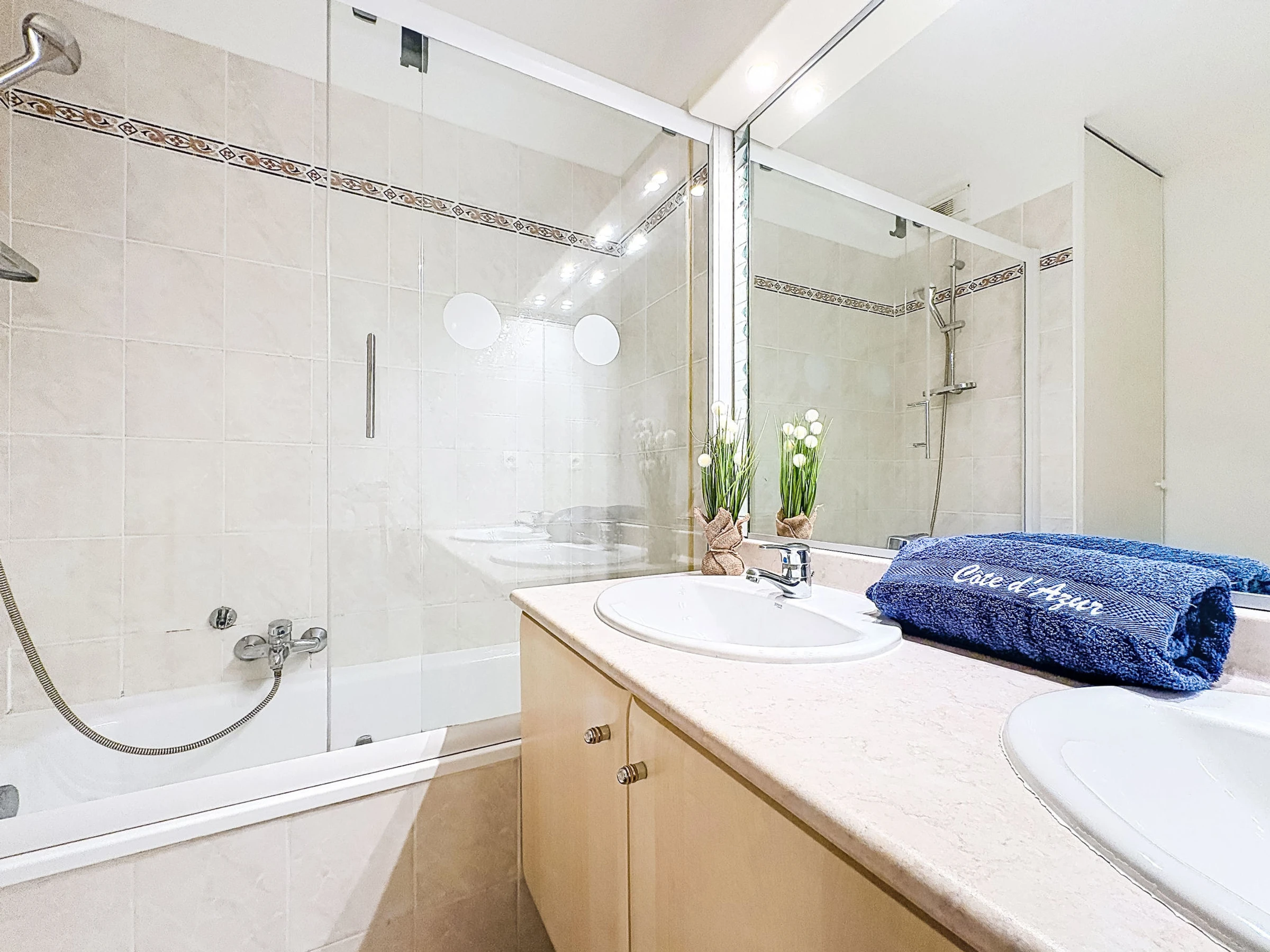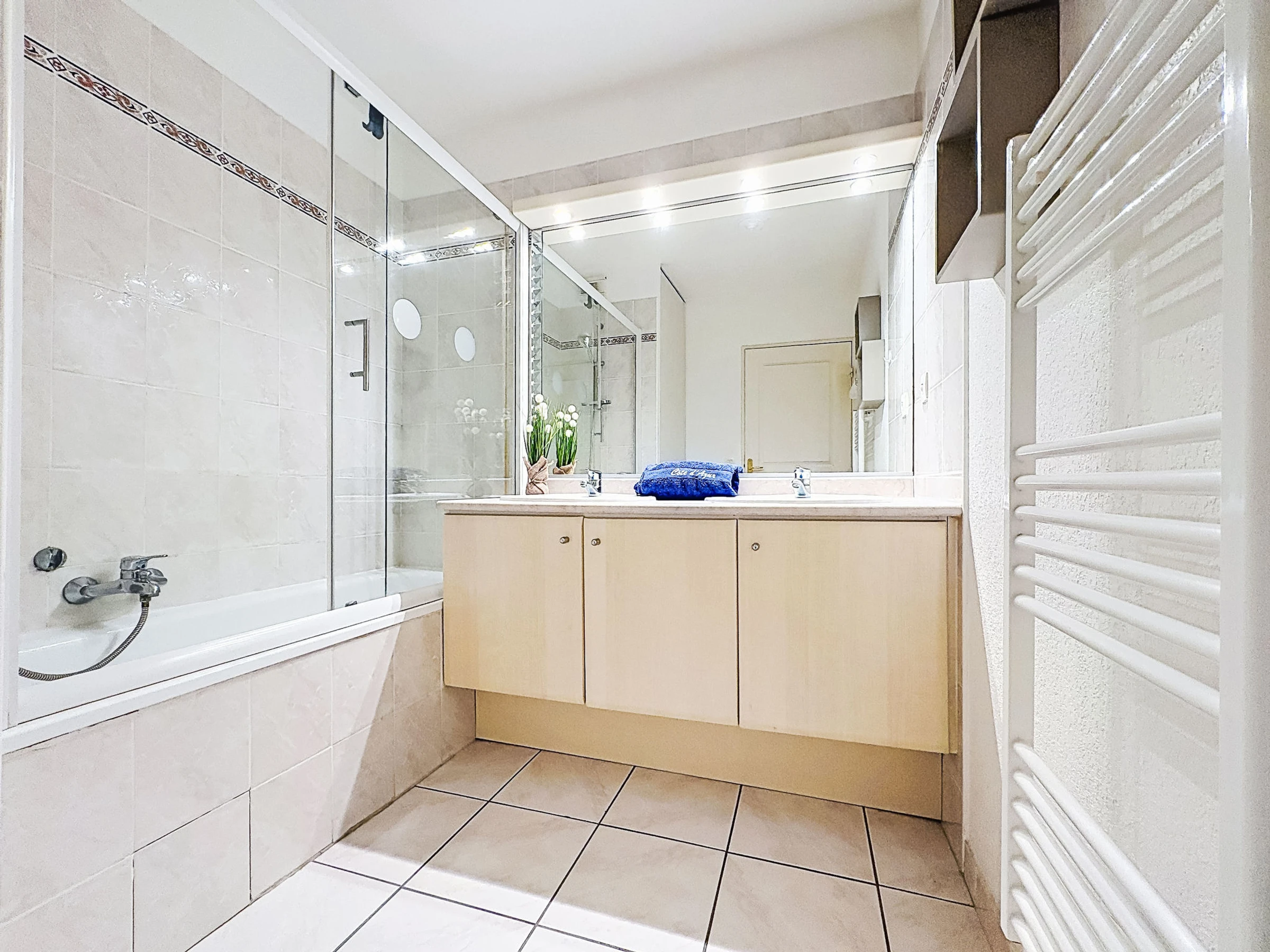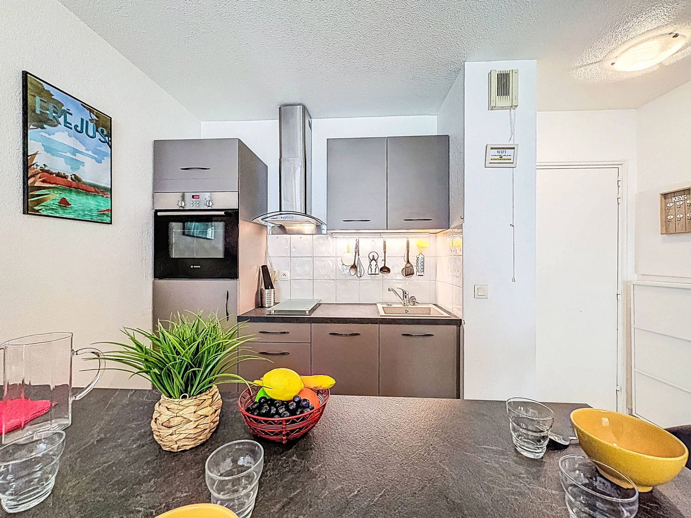 Apartamento de 3 estancias 48 m2 en el 2° piso. Con mobiliario bonito y moderno: salón-comedor con TV (pantalla plana), ventilador. Salida a la terraza. 1 dorm. con 1 cama de matrimonio (180 cm, 200 cm de longitud), ventilador. Salida a la terraza. 1 dorm., pequeño con 2 camas (80 cm, 180 cm de longitud). Cocina abierta (horno, lavavajillas, 2 placas de vitrocerámica, tostadora, hervidor de agua eléctrico, microondas, congelador, cafetera eléctrica) con rincón-comedor. Baño, WC separado, doble lavabo. Calefacción. Terraza grande 21 m2 parcialmente cubierta. Muebles de terraza. El alojamiento dispone de: lavadora, secadora, plancha, secador de pelo. Internet (Wifi, gratis). Garaje n. B26 (petite voiture) (1 coche), altura 200 cm, ancho 235 cm. A tener en cuenta: TV solamente FR. Detector de humo. Oferta de un particular según el art. 155, IV del CGI. [hidden]