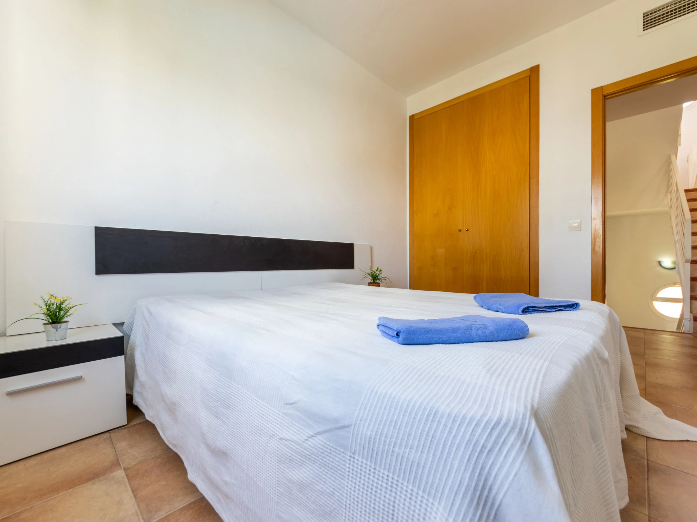 Casa adosada 4 estancias 120 m2 en 3 plantas. Vivienda adecuada para 6 adultos. Con mobiliario funcional: salón-comedor 20 m2 con mesa de comedor, TV digital, pantalla plana, aire acondicionado y bomba de calor, caliente. Salida al jardín. Cocina (horno, 4 placas de vitrocerámica, hervidor de agua eléctrico, microondas, congelador, cafetera eléctrica). Ducha/WC. Calefacción, aire acondicionado, calentador (90 litros). Planta superior: 1 dorm. con 2 camas (90 cm, 190 cm de longitud), baño/bidet/WC. 1 dorm. con 1 cama de matrimonio (150 cm, 190 cm de longitud). 1 dorm. con 2 camas (90 cm, 190 cm de longitud). Baño/bidet/WC. Terraza 27 m2, jardín. Muebles de terraza, barbacoa. El alojamiento dispone de: lavadora, plancha, secador de pelo. Plaza de aparcamiento n. 24. [hidden] // Reg. Nr.: ESFCTU00004302400066916100000000000000000[hidden]7
