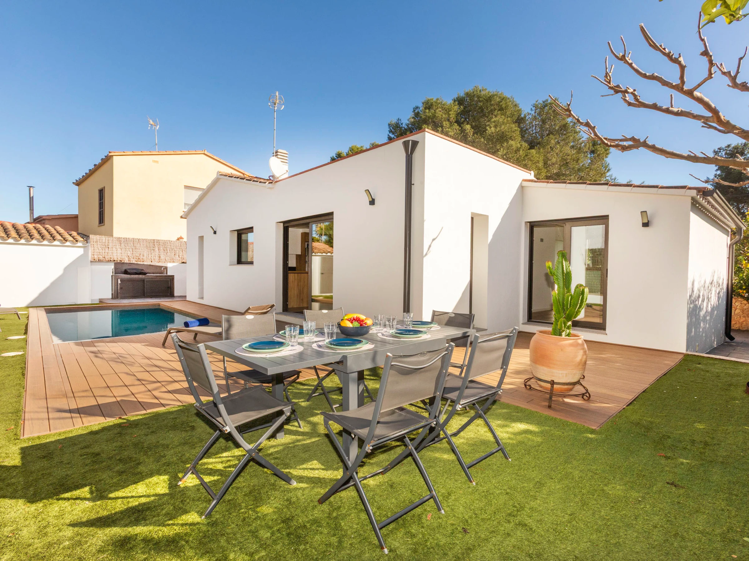 Casa 4 estancias 120 m2. Espacioso, completamente reformada, con mobiliario bonito y agradable: salón-comedor con mesa de comedor, TV satélite, pantalla plana, equipo de música, aire acondicionado, bomba de calor, caliente y persianas eléctricas. Salida a la piscina. 1 dorm. con 1 cama de matrimonio (150 cm, 190 cm de longitud), ducha/WC, aire acondicionado, bomba de calor, caliente y persianas eléctricas. Salida a la terraza, a la piscina. 1 dorm. con 1 cama de matrimonio (150 cm, 190 cm de longitud), aire acondicionado, bomba de calor, caliente y persianas eléctricas. 1 dorm. con 2 camas (90 cm, 190 cm de longitud), aire acondicionado, bomba de calor, caliente y persianas eléctricas. Cocina abierta (horno, lavavajillas, 4 placas de vitrocerámica, tostadora, hervidor de agua eléctrico, microondas, congelador, cafetera eléctrica). Ducha/WC. Terraza pequeña, terraza-jardín grande. Muebles de terraza, barbacoa, tumbonas. El alojamiento dispone de: lavadora, plancha, secador de pelo. Internet (Wifi, gratis). Plaza de aparcamiento (vallada). A tener en cuenta: casa para no fumadores. [hidden] // Reg. Nr.: ESFCTU00001701500012613100000000000000000[hidden]3