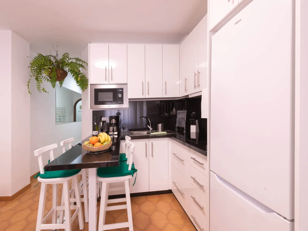 La cocina, completamente equipada, incluye frigorífico, microondas, horno, congelador, vajilla, utensilios de cocina, cafetera, tostadora y hervidor de agua. Todo lo que necesitas para preparar tus comidas con facilidad.