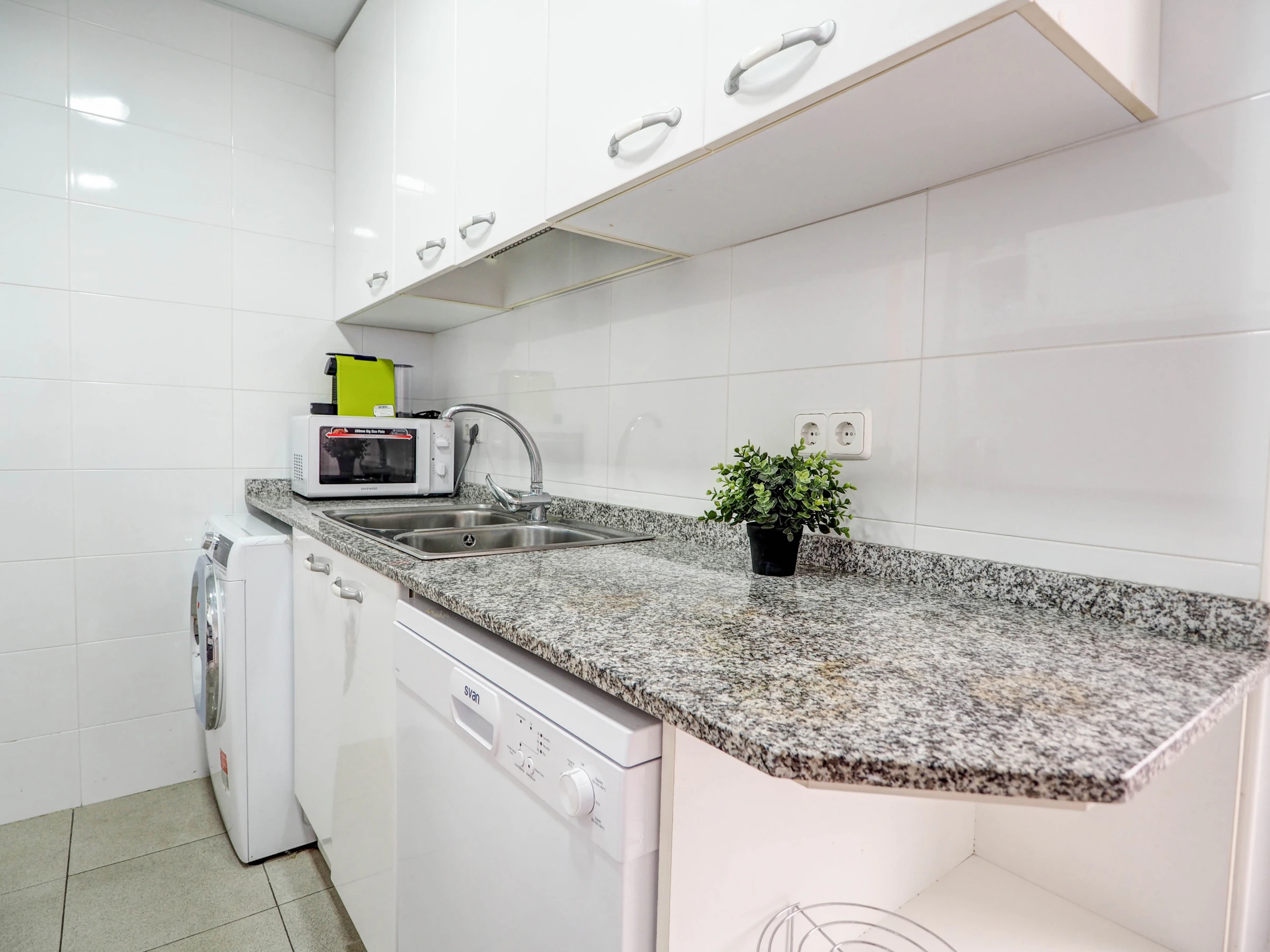 La cocina está equipada con todo lo que pueda necesitar, a excepción del lavavajillas.