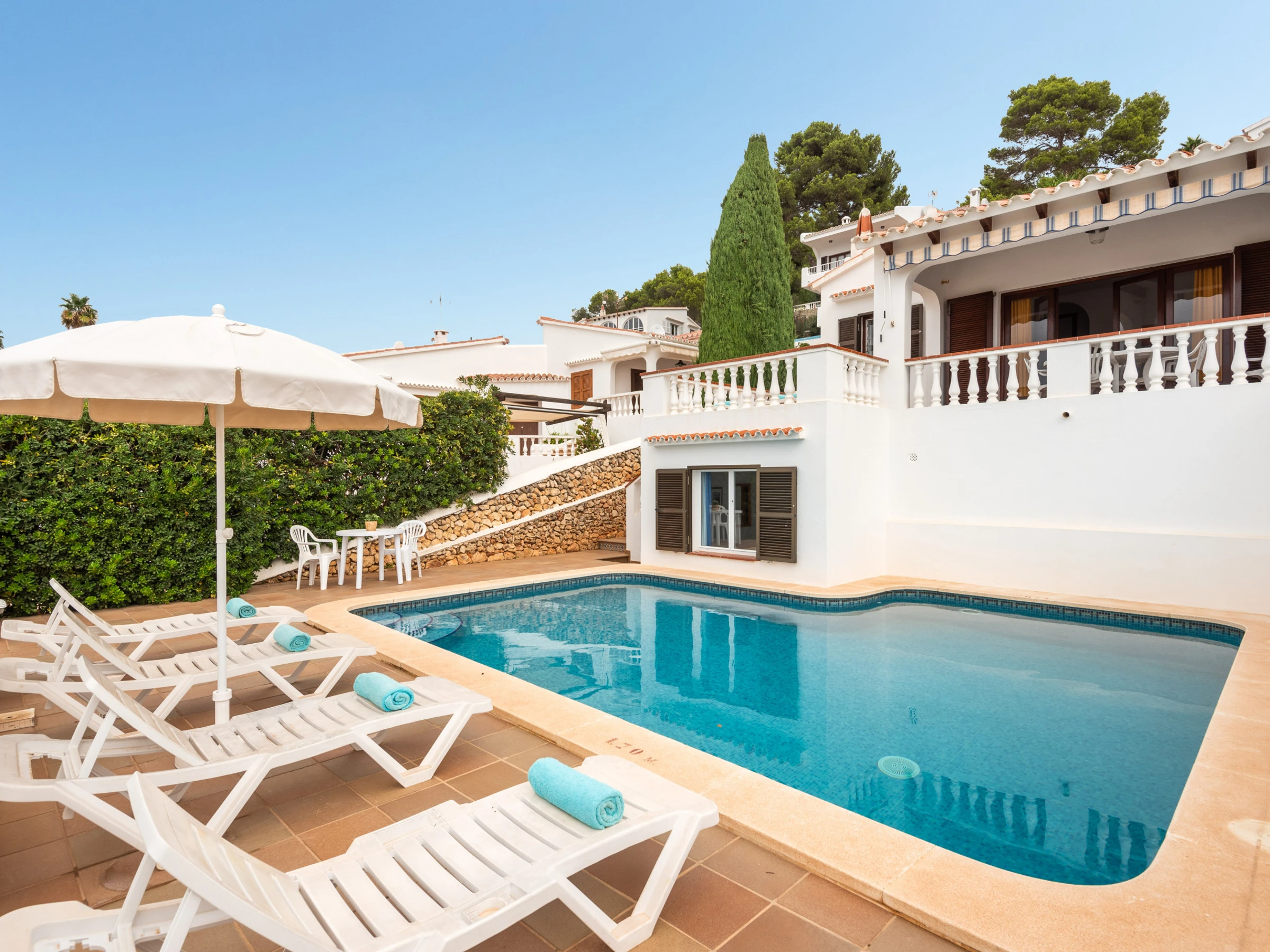 En el exterior, podrás relajarte en el jardín privado, disfrutar de una barbacoa con tus seres queridos o simplemente tomar el sol en la terraza. La piscina privada es perfecta para refrescarse en los días calurosos.