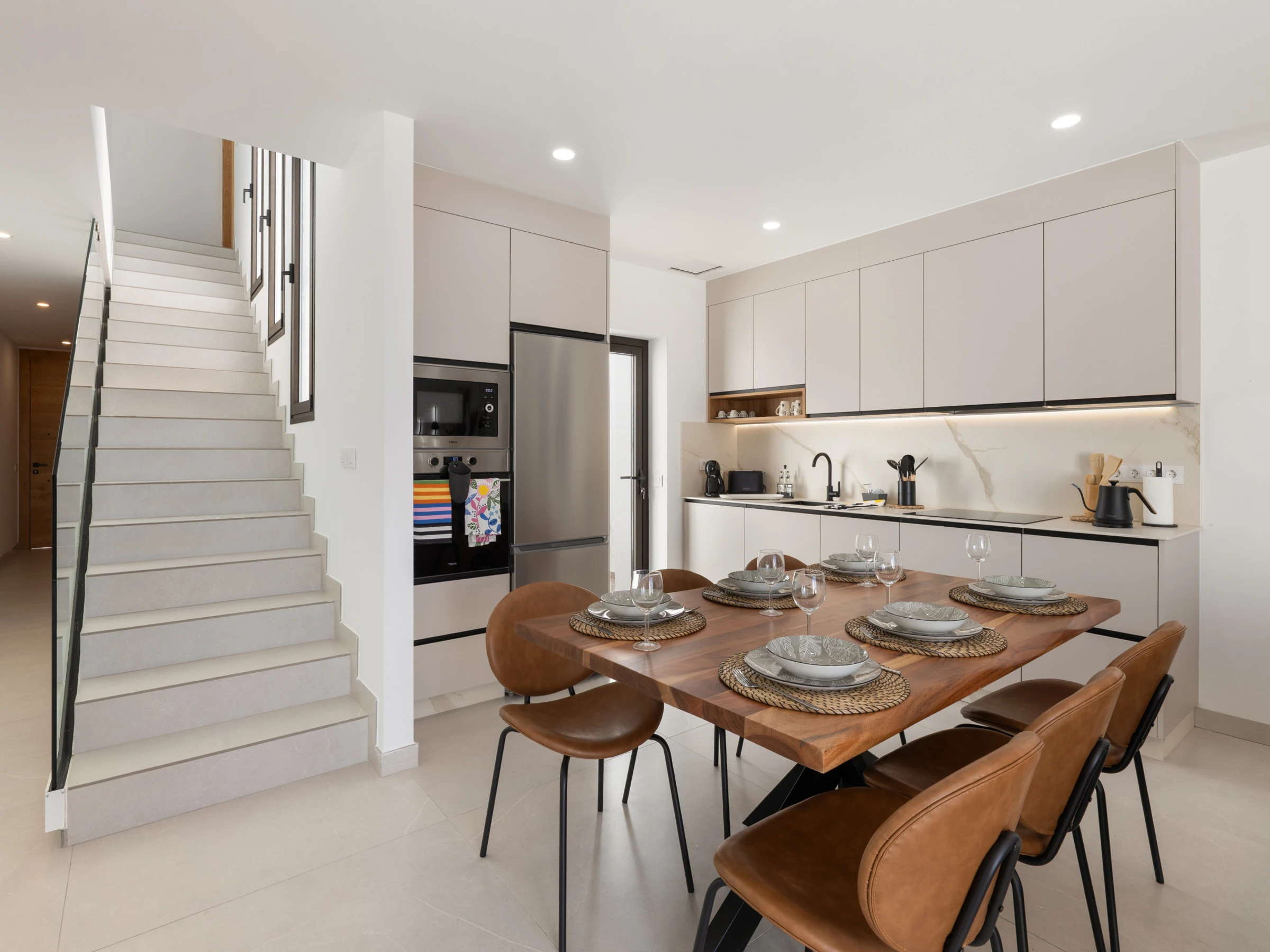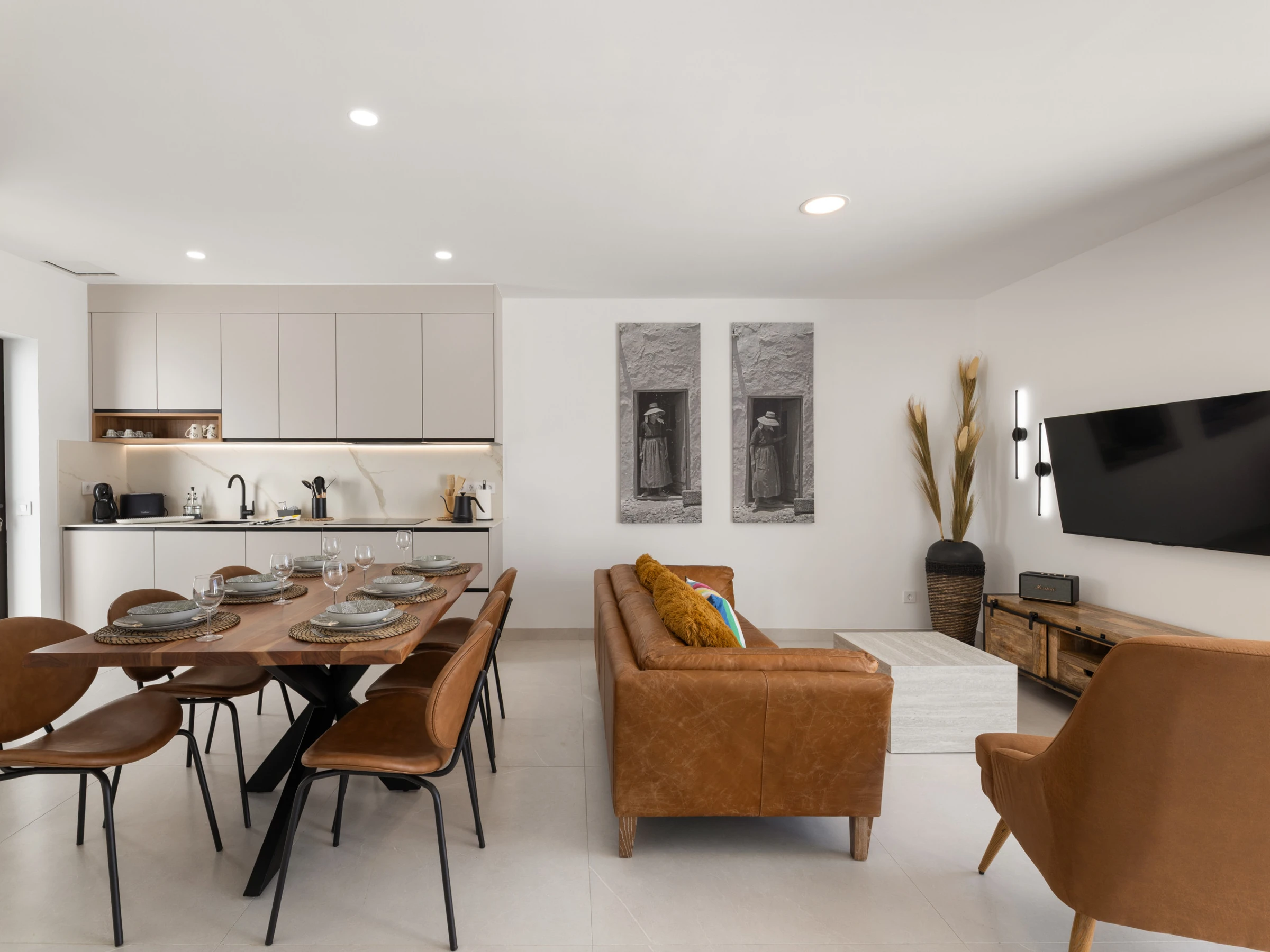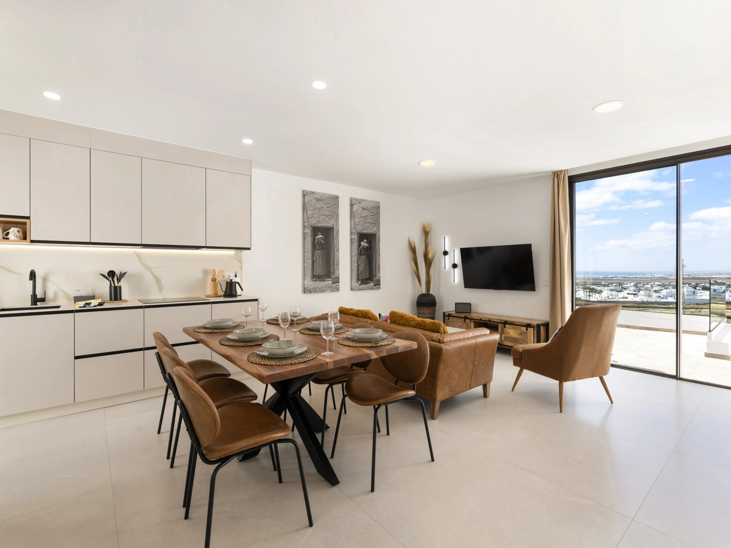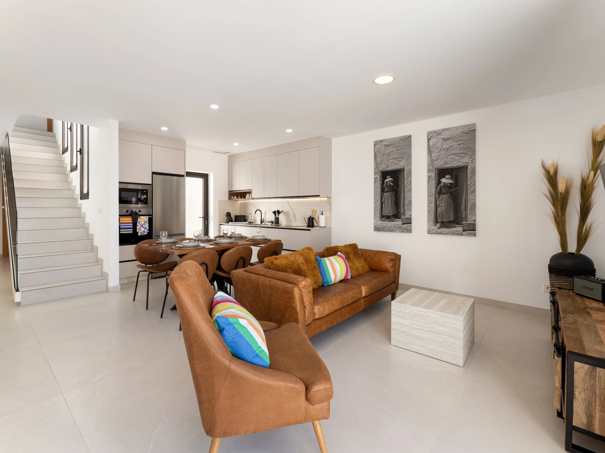 Cada dúplex ofrece tres amplios dormitorios, tres baños completos (uno de ellos in suite), un elegante salón-comedor de concepto abierto y una cocina totalmente equipada, donde diseño y funcionalidad se combinan a la perfección. Además, cada vivienda cuenta con tres terrazas privadas, ideales para disfrutar del clima privilegiado de Lanzarote, organizar reuniones al aire libre o simplemente relajarse en un espacio íntimo.