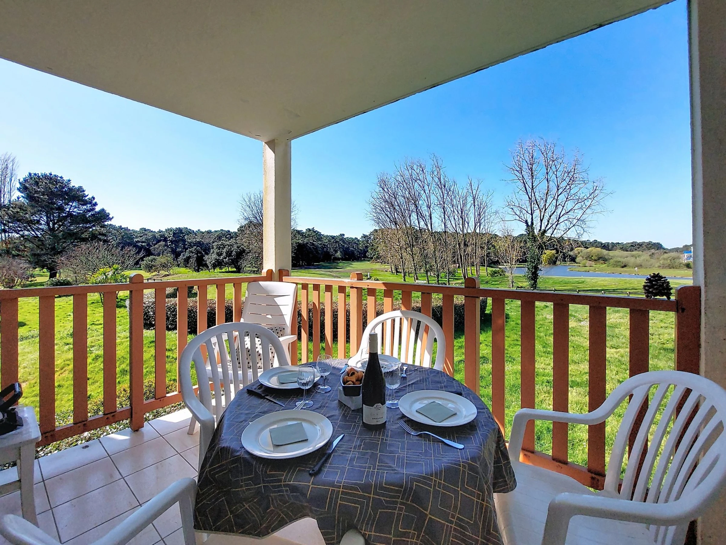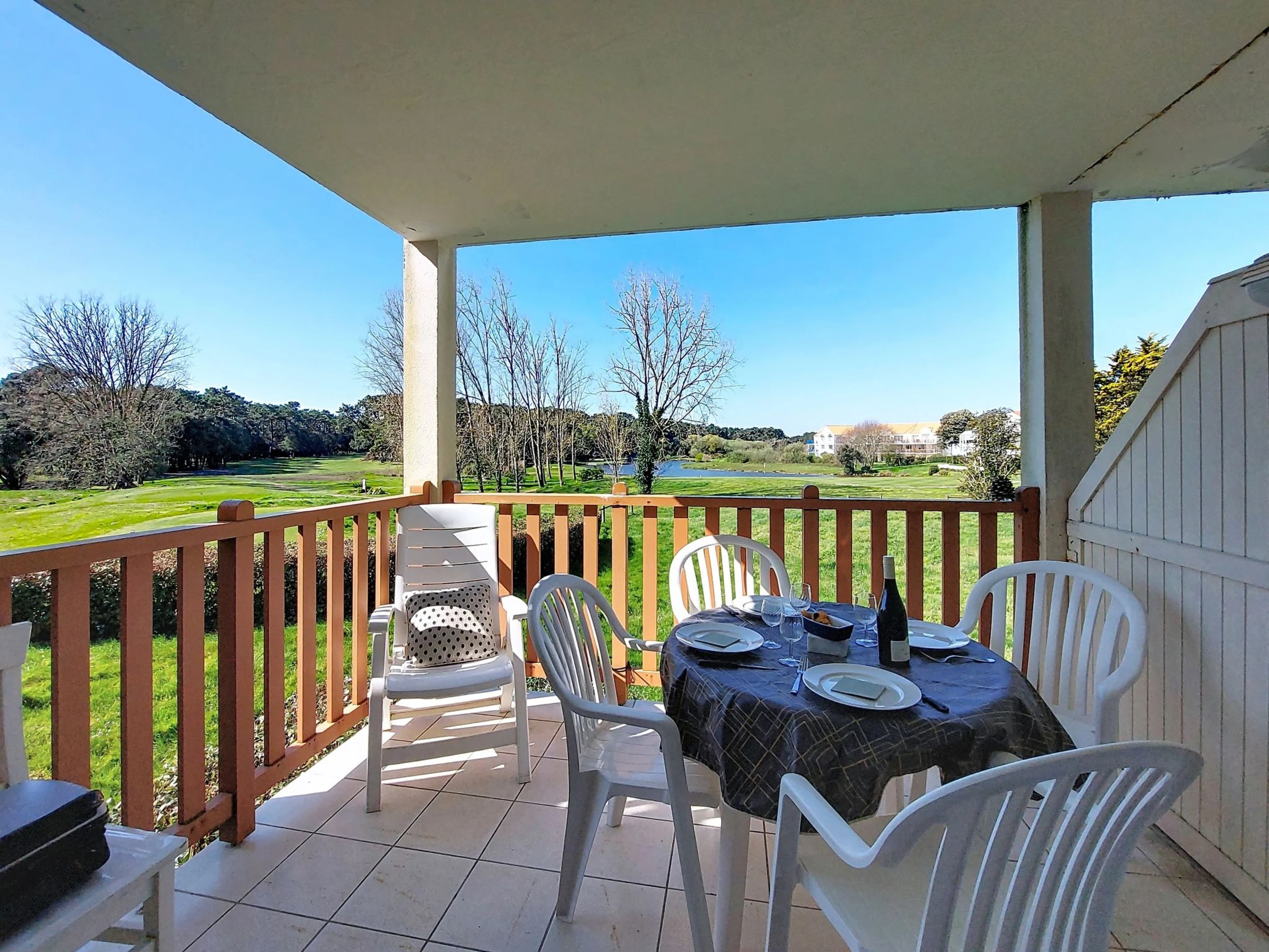 "Le Saint Hilaire", apartamento de 2 estancias 30 m2 en el 1° piso. Vivienda adecuada para 2 adultos + 2 niños. Con mobiliario bonito: entrada. Salón con 1 cama-nido (2 pers. 2 x 80 cm, 190 cm de longitud), rincón-comedor y TV (pantalla plana). Salida al balcón. 1 dorm. con 1 cama doble (140 cm, 190 cm de longitud). Cocina abierta (lavavajillas, 4 Placas de inducción, tostadora, hervidor de agua eléctrico, microondas, cafetera eléctrica). Baño, WC separado. Calefacción eléctrica. Balcón 6 m2, orientación suroeste. Muebles de balcón. Vista bonita al lago, al jardín, al bosque y Campo de golf. El alojamiento dispone de: plancha, secador de pelo. Internet (Wifi, gratis). Plaza de aparcamiento. A tener en cuenta: apartamento para no fumadores. Permitido máximo 1 mascota pequeña / perro. Detector de humo. Oferta de un particular según el art. 155, IV del CGI.