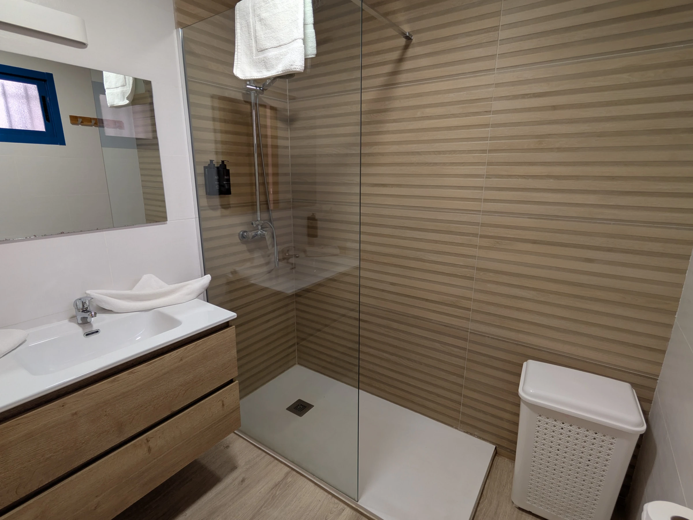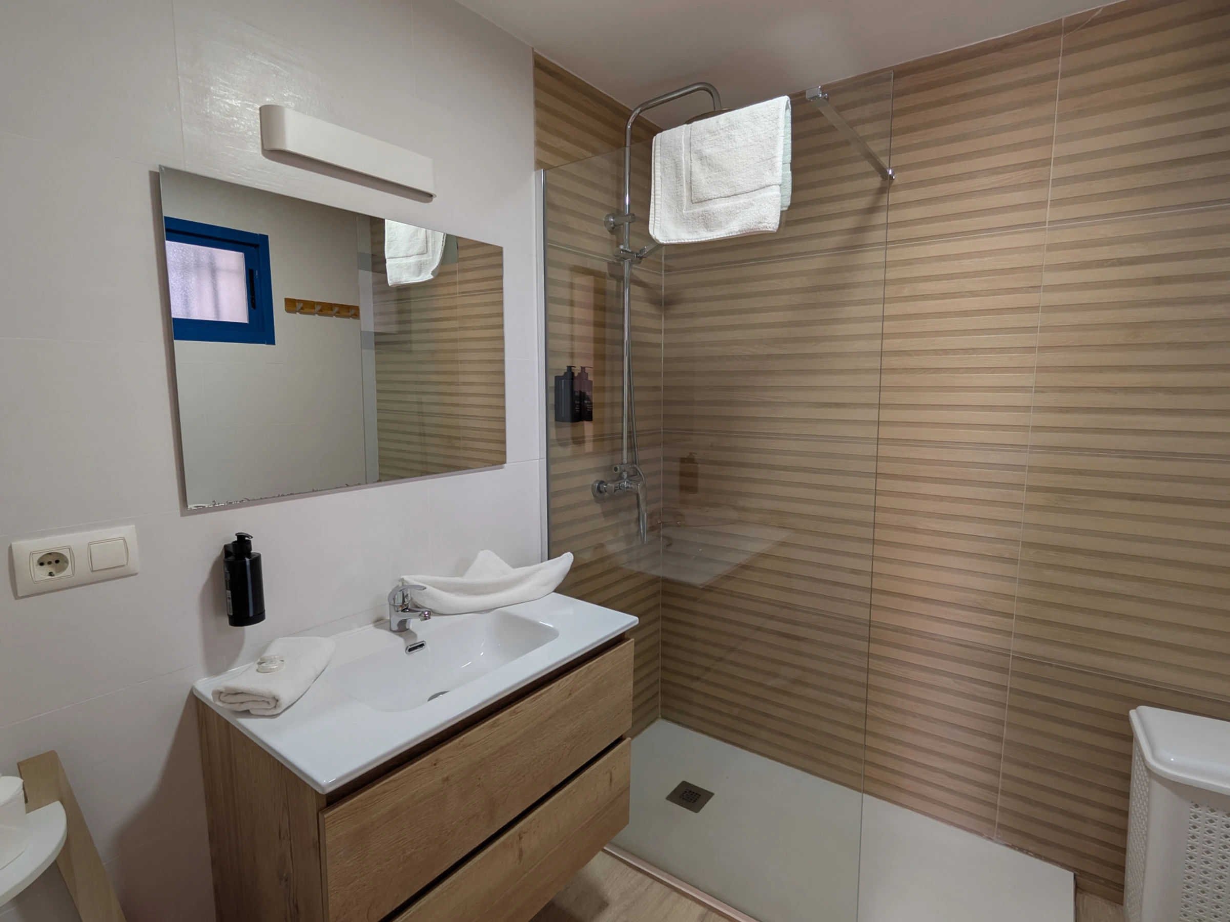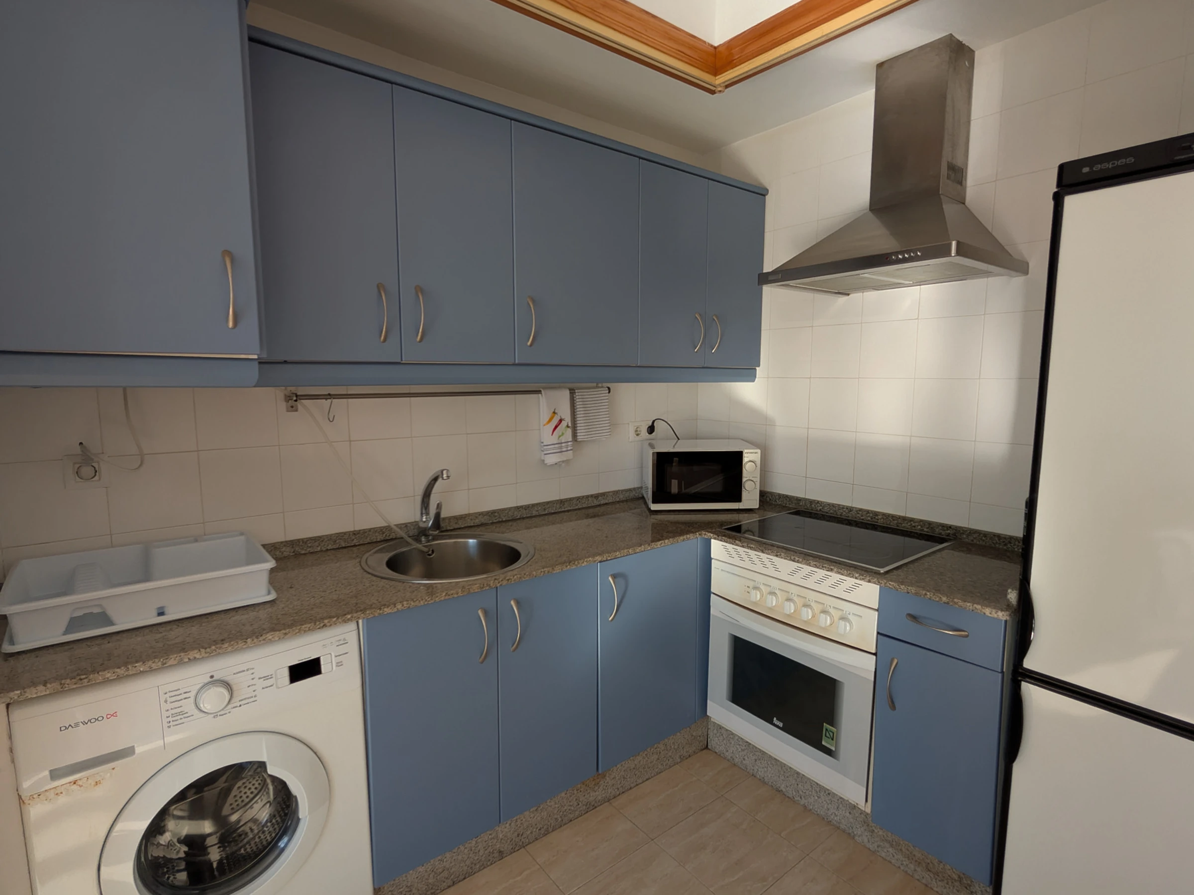 Apartamento con vistas al mar. A la mano de todo, lo primero que nos encontramos al entrar al alojamiento es un amplio y luminoso salón el cual disfruta de vistas al la playa y al mar. La cocina, integrada en la misma estancia, cuenta con todo el equipamiento necesario para cocinar en casa: placa vitrocerámica de 4 fuegos, microondas, nevera-combi, [hidden] pasillo no lleva hasta las habitaciones; una con cama doble y la otra con 2 individuales y al baño (con plato de ducha). Lo mejor de este apartamento es su céntrica situación, sus vistas y su relación precio/calidad.