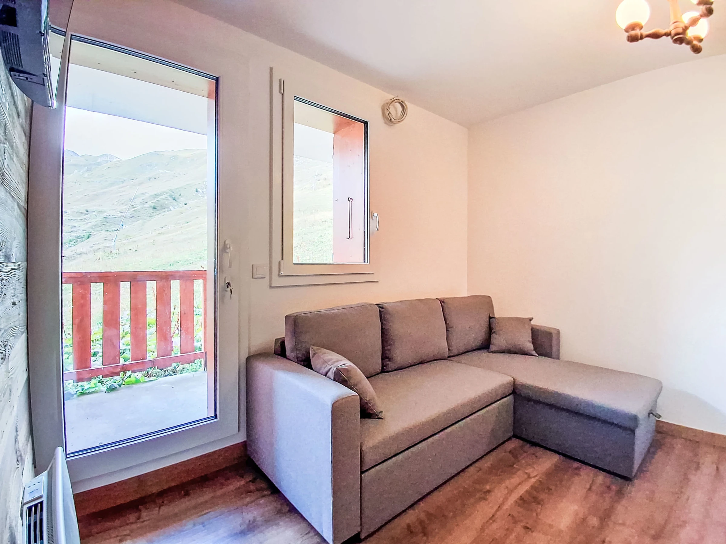 Apartamento de 2 estancias 33 m2 en el 2° piso. Vivienda adecuada para 2 adultos. Reformado en 2024, con mobiliario bonito: salón-comedor con 1 sofá-cama doble (160 cm, 200 cm de longitud), TV (pantalla plana), calefacción eléctrica. Salida al balcón. 1 dorm. con 1 cama de matrimonio (140 cm, 190 cm de longitud). Cabina con 1 x 2 literas (80 cm, 190 cm de longitud). Rincón-cocina (horno pequeño, lavavajillas, 4 Placas de inducción, tostadora, hervidor de agua eléctrico, microondas). Ducha, WC separado. Calefacción eléctrica. Balcón, orientación suroeste. Vista muy bonita a las montañas y a la pista de esquí. El alojamiento dispone de: Internet (Wifi, gratis). A tener en cuenta: apartamento para no fumadores. Detector de humo. En lugar de un dormitorio cerrado, algunos espacios para dormir están situados en una zona diáfana (galería, alcoba, etc.). Oferta de un particular según el art. 155, IV del CGI.