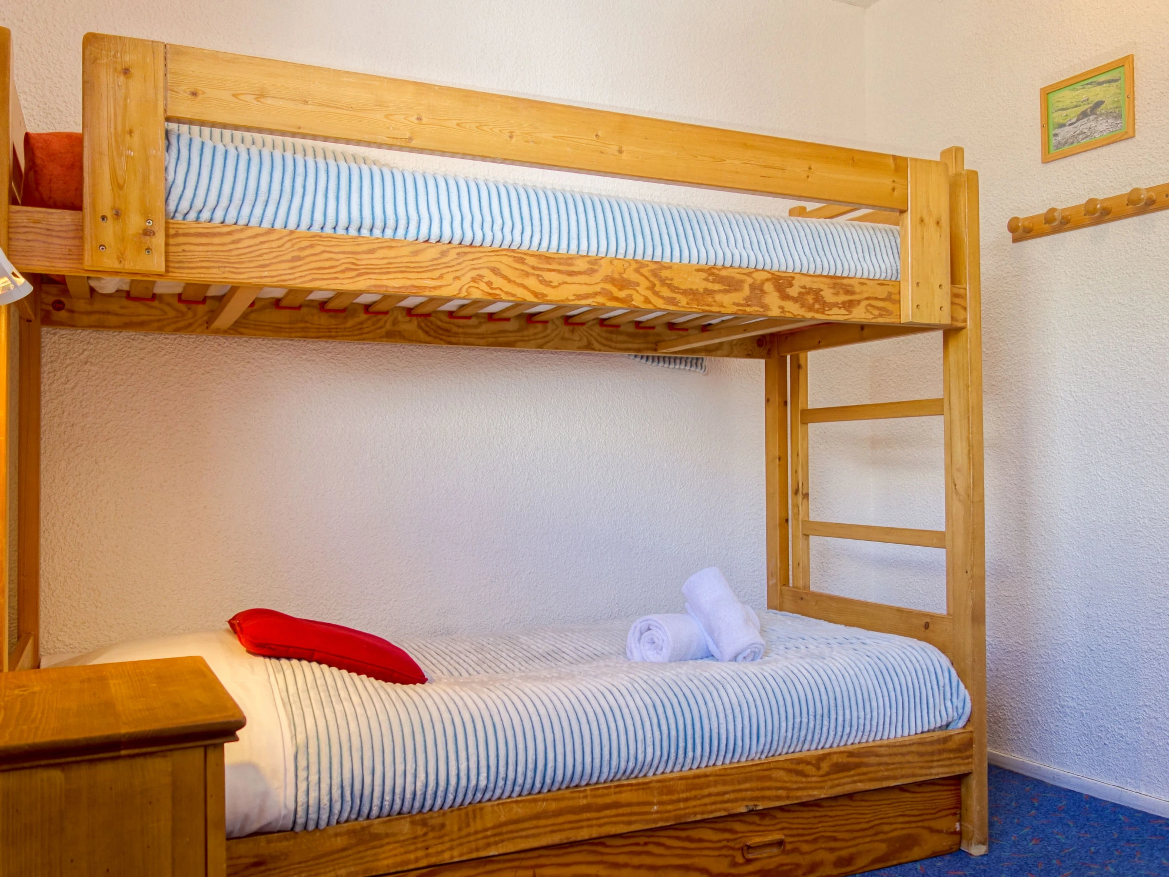 Apartamento de 3 estancias 55 m2 en el 3° piso. Con mobiliario funcional y bonito: salón-comedor con 1 cama (80 cm), 1 cama-nido (2 pers. 2 x 80 cm), TV y DVD. Salida al balcón, orientación sur. 1 dorm. con 2 camas (90 cm). Salida al balcón, orientación oeste. 1 dorm. con 1 x 2 literas (80 cm). Cocina abierta (horno pequeño, lavavajillas, 4 placas de vitrocerámica, microondas). Baño, ducha, WC separado. Vista panorámica muy bonita a las montañas y a la pista de esquí. El alojamiento dispone de: Internet (Wifi, extra). A tener en cuenta: apartamento para no fumadores. Detector de humo.
