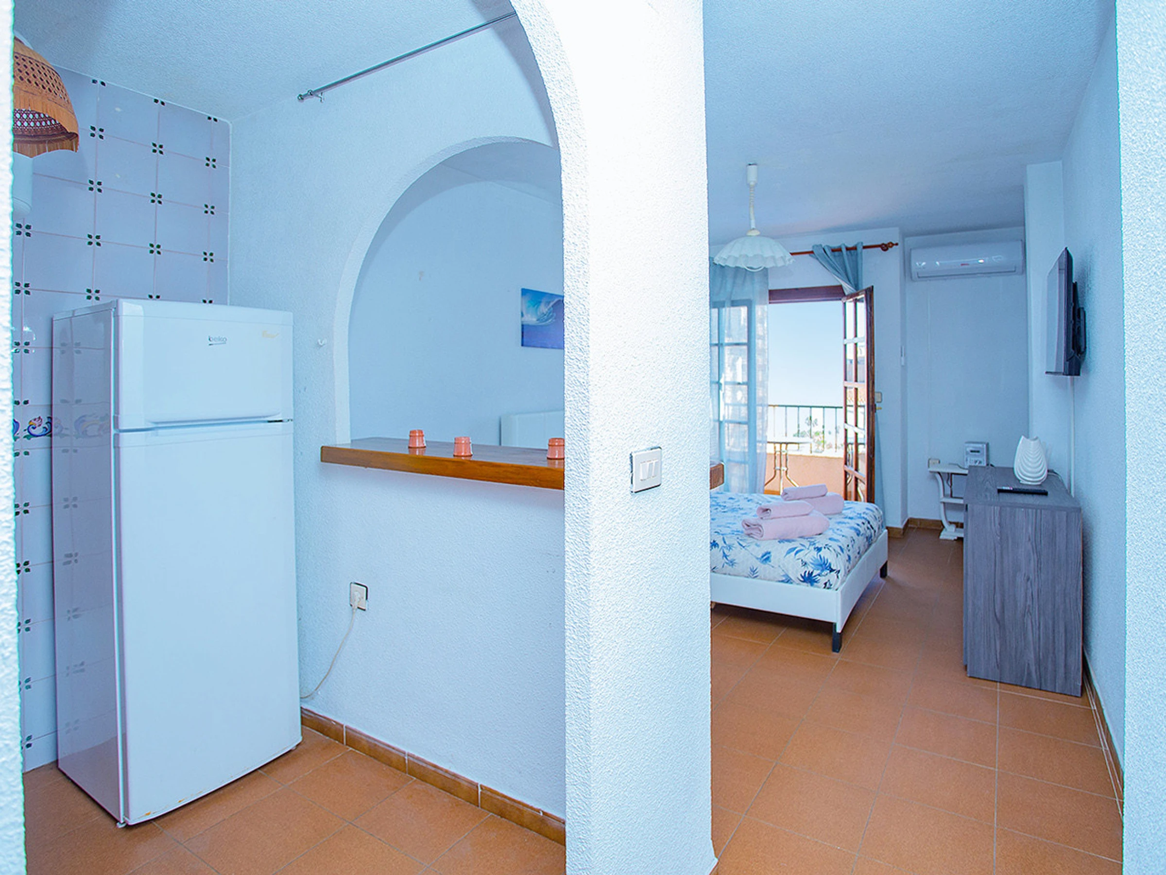 El bonito estudio en Torrevieja de 28m² con 1 dormitorio, un baño con bañera y una cocina totalmente equipada.