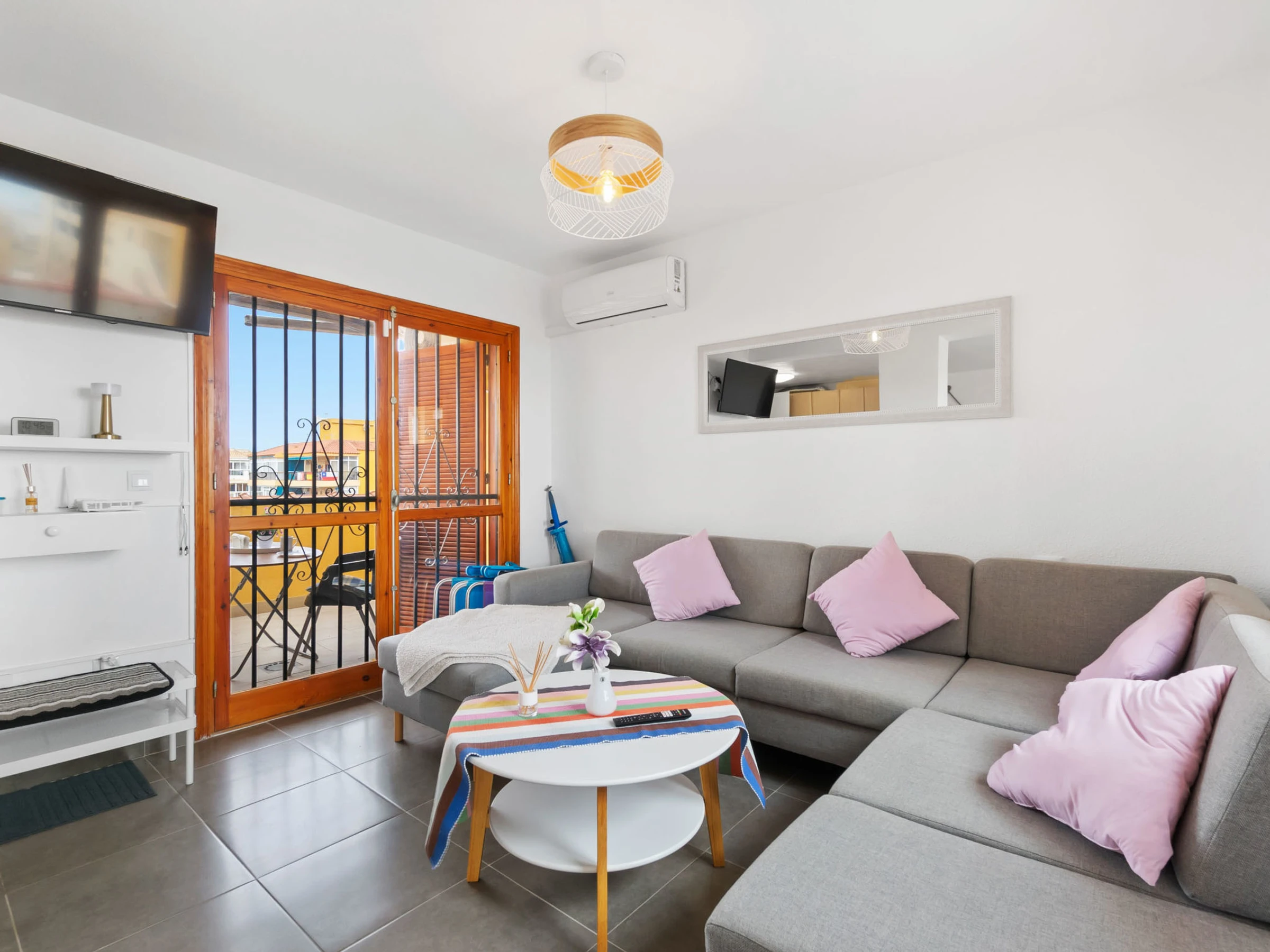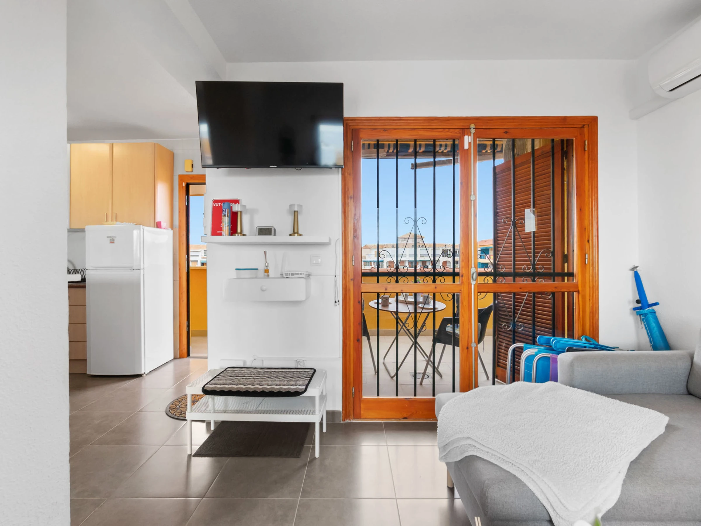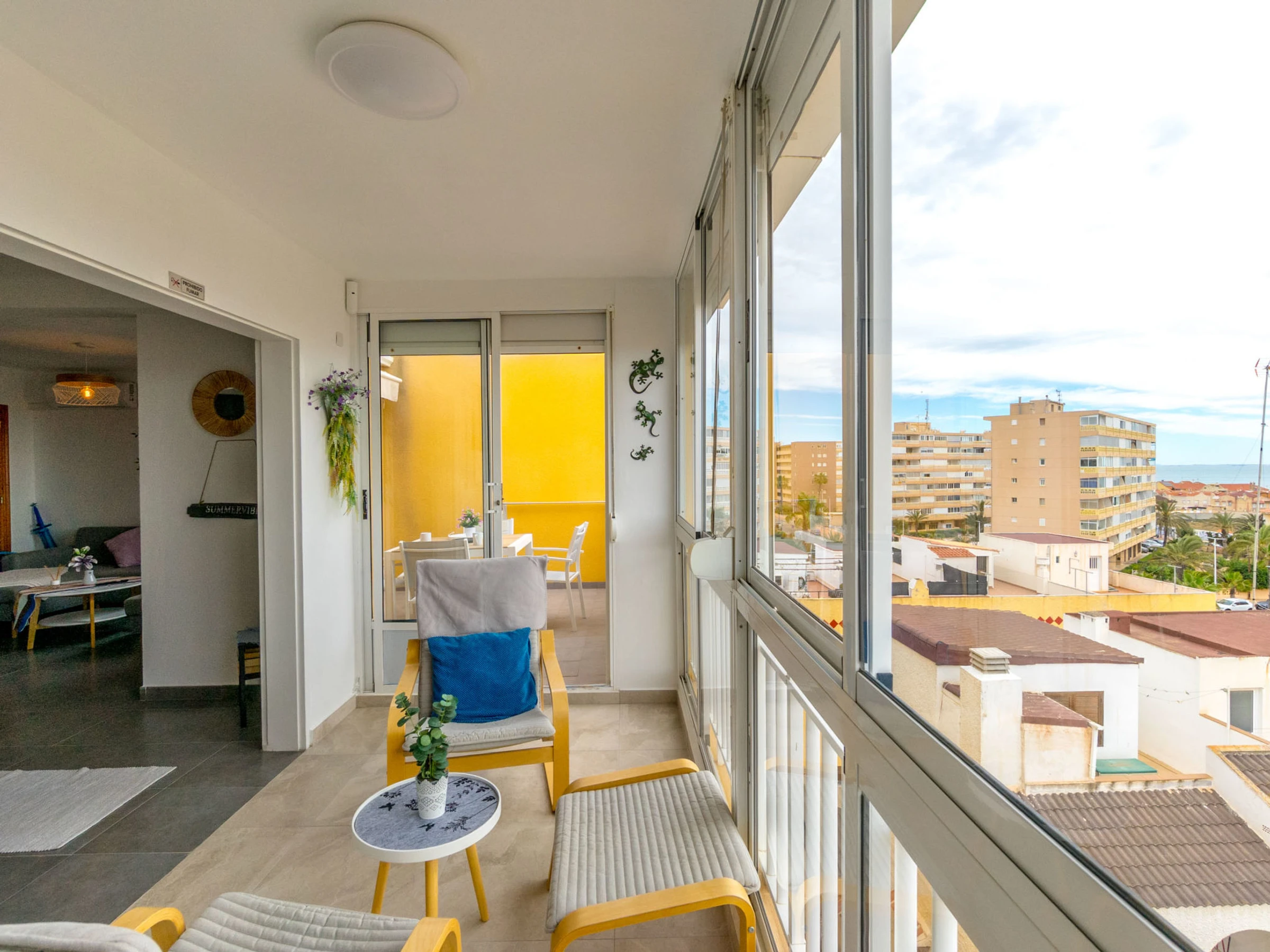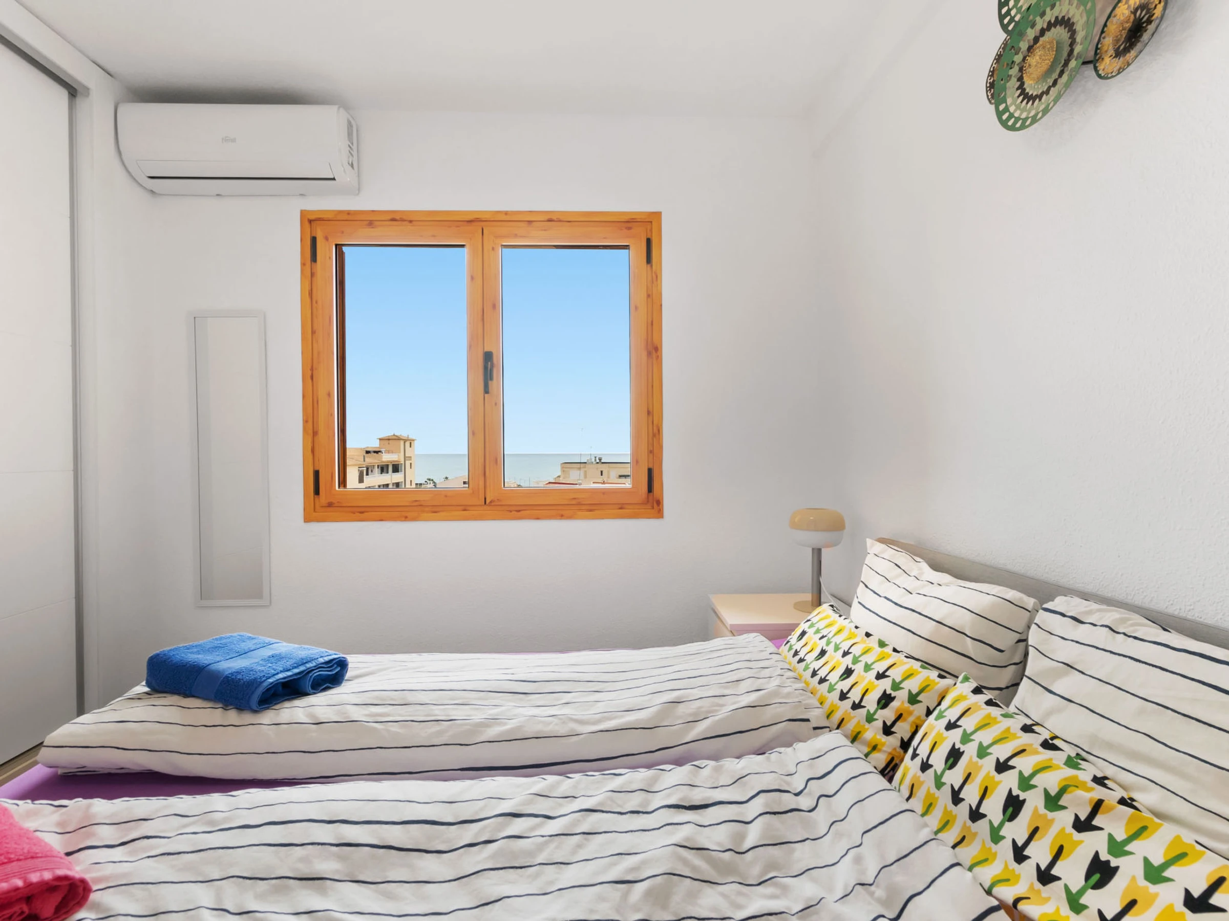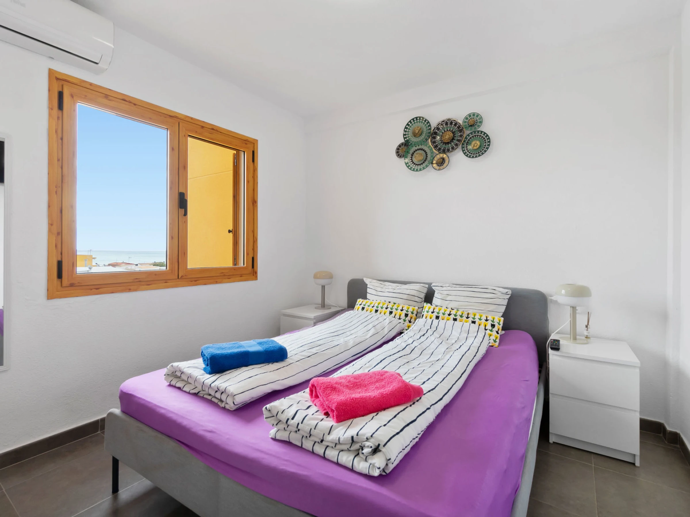 "Viñamar", apartamento de 3 estancias 74 m2 en el 5° piso. Espacioso y luminoso, con mobiliario confortable y bonito: salón-comedor abierto con TV digital, aire acondicionado y bomba de calor, caliente. Salida a la terraza. 1 dorm. con 1 cama de matrimonio (1 x 160 cm, 200 cm de longitud), TV, aire acondicionado y bomba de calor, caliente. 1 dorm. con 1 cama de matrimonio (1 x 140 cm, 200 cm de longitud), aire acondicionado y bomba de calor, caliente. Cocina abierta (horno, 3 placas de vitrocerámica, tostadora, hervidor de agua eléctrico, cafetera eléctrica). Ducha/WC. Balcón, terraza. Muebles de terraza, rincón para sentarse. Vista bonita al mar y al pueblo. El alojamiento dispone de: lavadora, plancha, secador de pelo. Internet (Wifi, gratis). Garaje n. 45. A tener en cuenta: casa para no fumadores. [hidden] // Reg. Nr.: ESFCTU00000305900013457100000000000000000[hidden]6