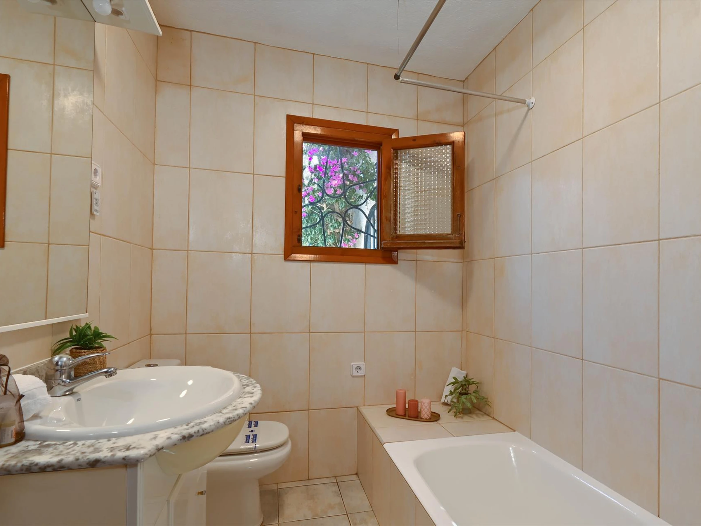 La casa tiene 2 dormitorios y 2 baños. El alojamiento ofrece privacidad, un jardín bonito con césped y árboles y una piscina bonita. Su comodidad y la cercanía a la playa, actividades deportivas, instalaciones de ocio, lugares para salir, lugares de interés y cultura hacen de esta villa un buen alojamiento para pasar sus vacaciones en España con familiares o amigos e incluso con sus mascotas.