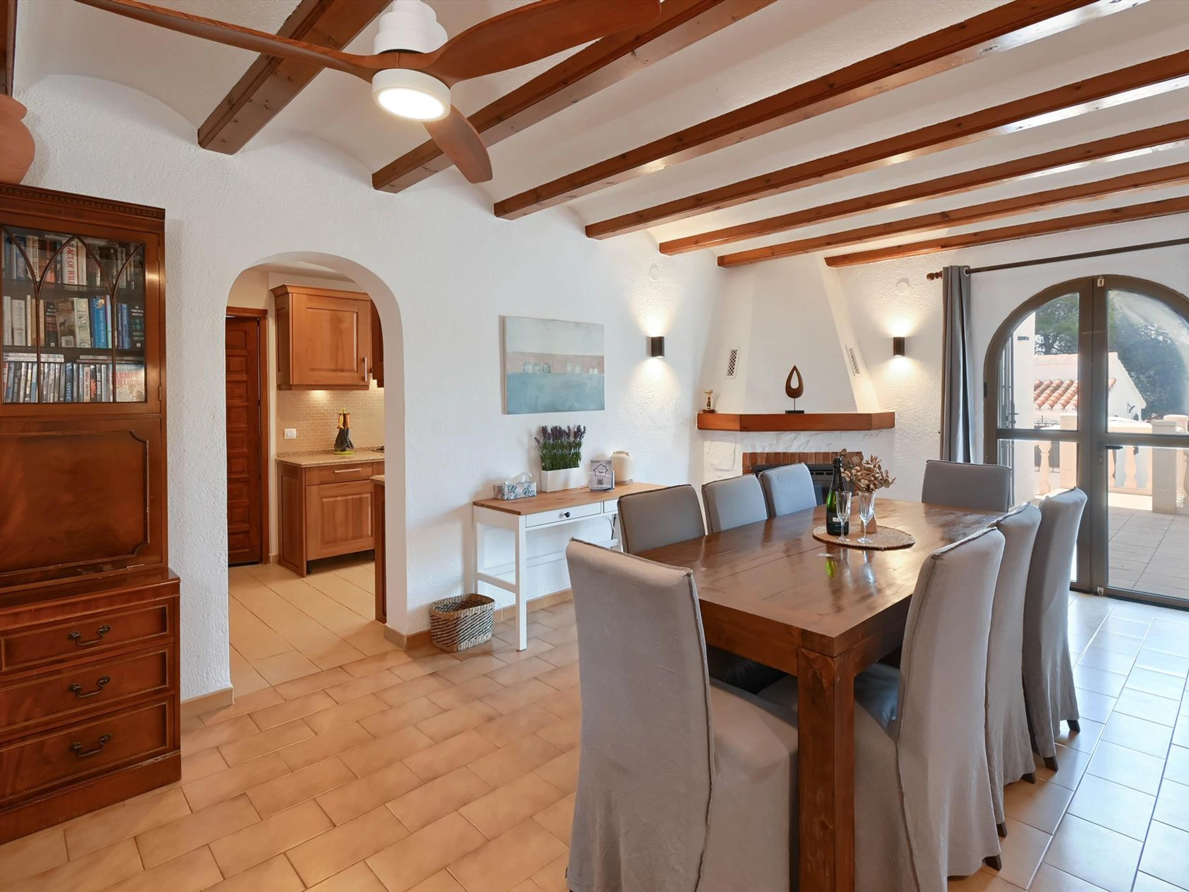 CocinaCocina-comedor abierta con vitrocerámica, horno eléctrico, microondas, lavavajillas, frigorífico, congelador, cafetera, hervidor eléctrico, batidora, tostadora y exprimidor.