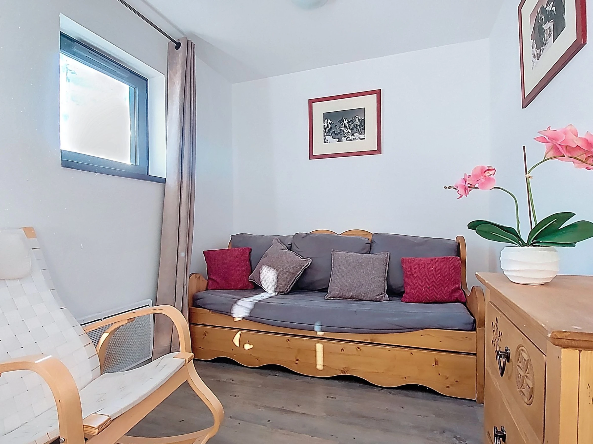 Apartamento de 2 estancias 45 m2 en el 3° piso, orientación sur. Espacioso, con mobiliario muy confortable y moderno: salón-comedor con 1 cama-nido (1 pers. 2 x 80 cm, 190 cm de longitud), mesa de comedor y TV (pantalla plana), calefacción eléctrica. Salida al balcón. 1 dorm., grande con 1 cama de matrimonio (1 x 160 cm, 190 cm de longitud). Cabina, sin ventanas con 2 camas (90 cm, 190 cm de longitud), WC separado. Cocina abierta (horno, lavavajillas, 4 Placas de inducción, tostadora, hervidor de agua eléctrico, microondas, congelador, cafetera eléctrica). Ducha, WC separado. Balcón grande 4 m2, orientación sur. Vista panorámica muy bonita a las montañas, al valle, a la pista de esquí, al paisaje y a la localidad. El alojamiento dispone de: Internet (Wifi, extra). A tener en cuenta: apartamento para no fumadores. Detector de humo. En lugar de un dormitorio cerrado, algunos espacios para dormir están situados en una zona diáfana (galería, alcoba, etc.). Oferta de un particular según el art. 155, IV del CGI. [hidden]