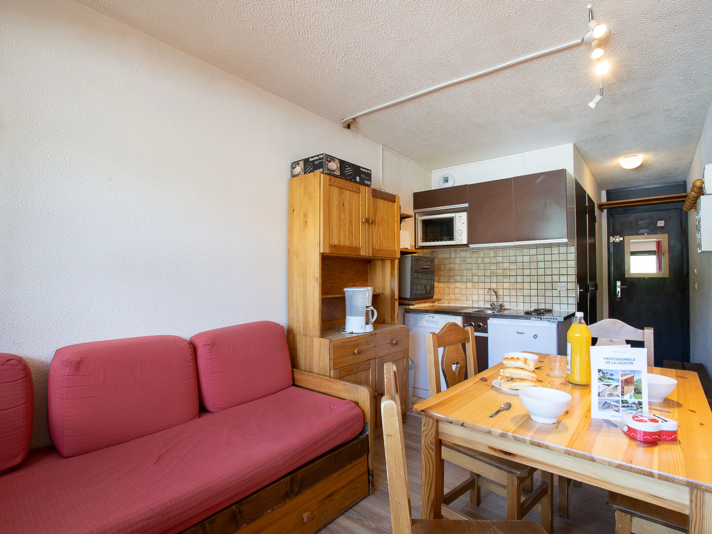 "Vanoise 152", apartamento de 2 estancias 27 m2 en el 1° piso, orientación sur. Salón-comedor. 1 dorm. con cortina con 1 cama-nido (2 pers. 2 x 80 cm, 190 cm de longitud), TV (pantalla plana), estufa eléctrica. Cabina con 1 x 2 literas (80 cm, 190 cm de longitud). Rincón-cocina (2 fogones, horno, lavavajillas, microondas, cafetera eléctrica, horno Raclette). Baño, WC separado. Balcón pequeño 2 m2, orientación sur. El alojamiento dispone de: Internet (Wifi, extra). A tener en cuenta: detector de humo. En lugar de un dormitorio cerrado, algunos espacios para dormir están situados en una zona diáfana (galería, alcoba, etc.). [hidden]