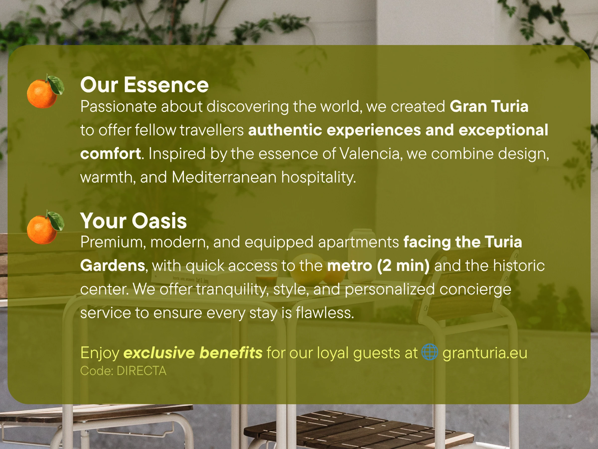 Apartamento de diseño que ofrece máximo confort, luminosidad y accesibilidad. Ubicado frente al Jardín del Turia, el gran pulmón verde de Valencia. A solo 2 minutos a pie del metro, con conexión directa al centro, las playas y el aeropuerto. Además, cuenta con estacionamiento público gratuito cercano, sujeto a disponibilidad (Parking Alcàsser).
