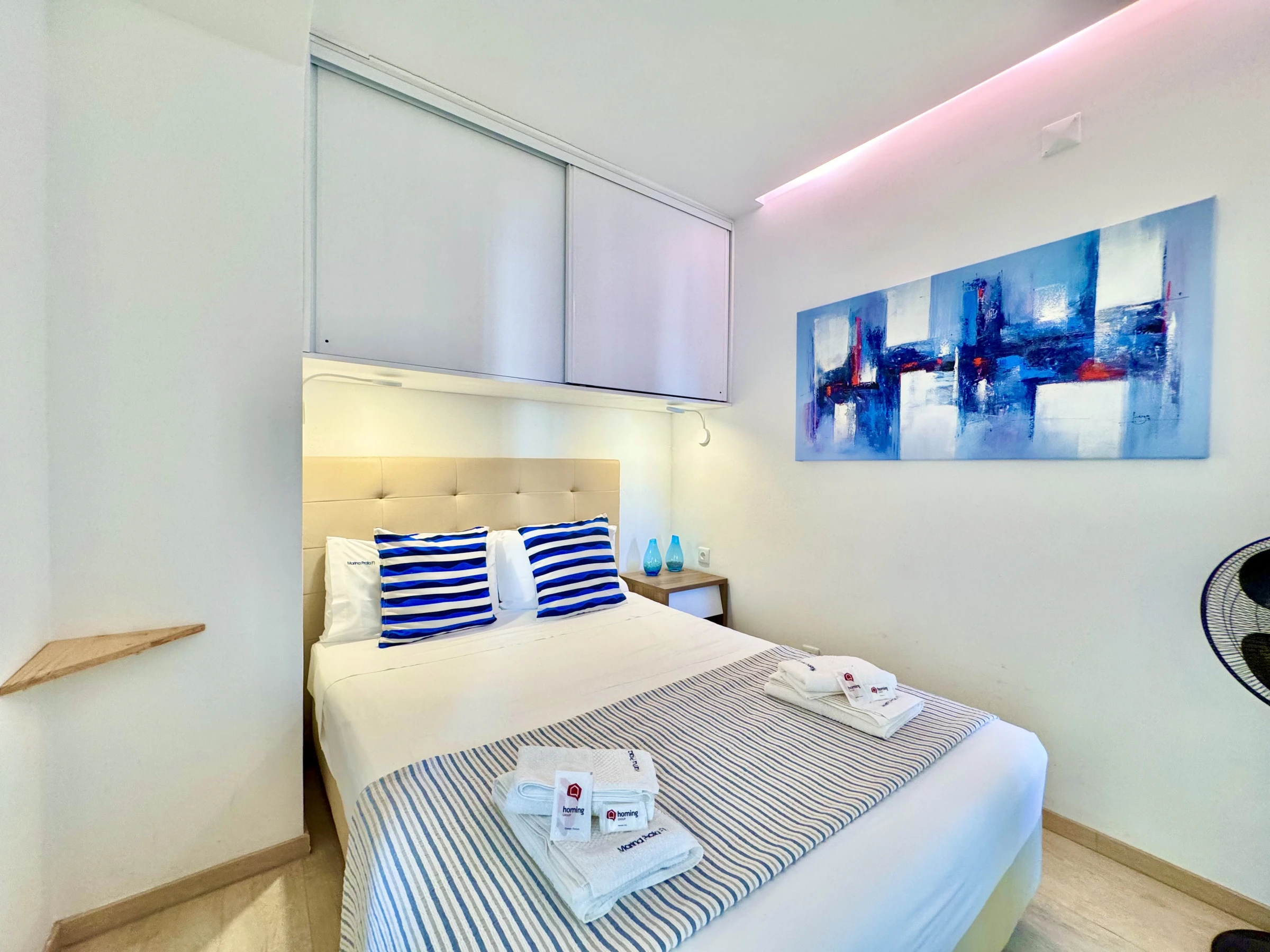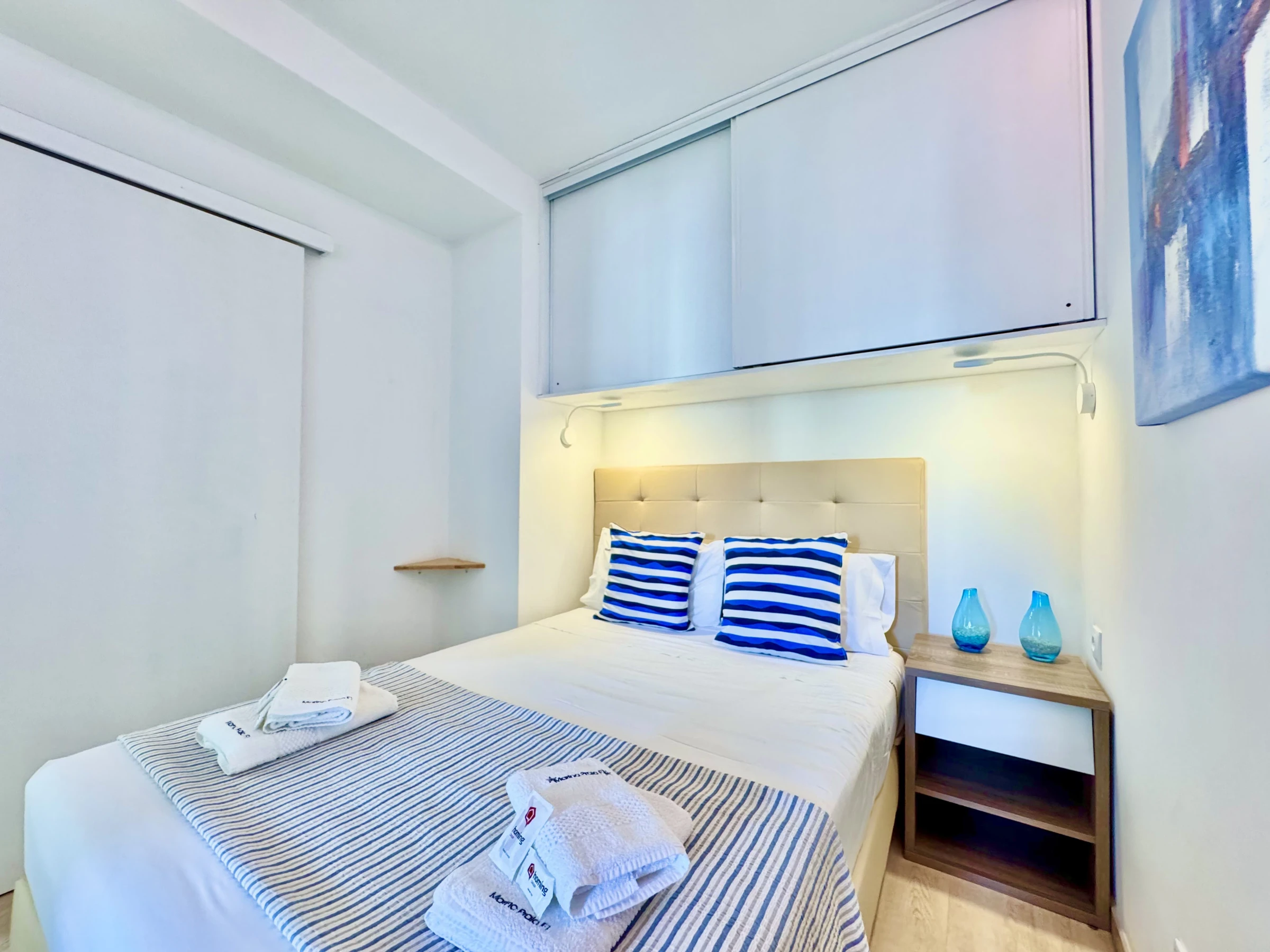 Descubra el equilibrio perfecto entre comodidad y ubicación en este encantador apartamento de 2 habitaciones, situado en la prestigiosa zona de la Marina. Ideal para familias, parejas o grupos pequeños, el alojamiento ofrece un amplio balcón donde puede relajarse al final del día, con vista a los barcos y la puesta de sol.