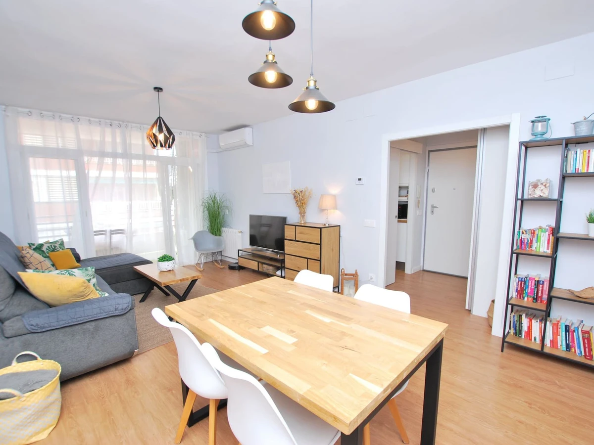 Espectacular apartamento decorado con mucho cariño y amor. Los propietarios se han encargado personalmente de escoger todos los detalles y comodidades para que puedas disfrutar de tu estancia en un pueblo seguro, tranquilo y familiar. Destacamos su bonita terraza y su excelente ubicación, a tan solo 8 minutos de la playa y de la estación de tren, con fácil acceso a Barcelona y a la Costa Brava.