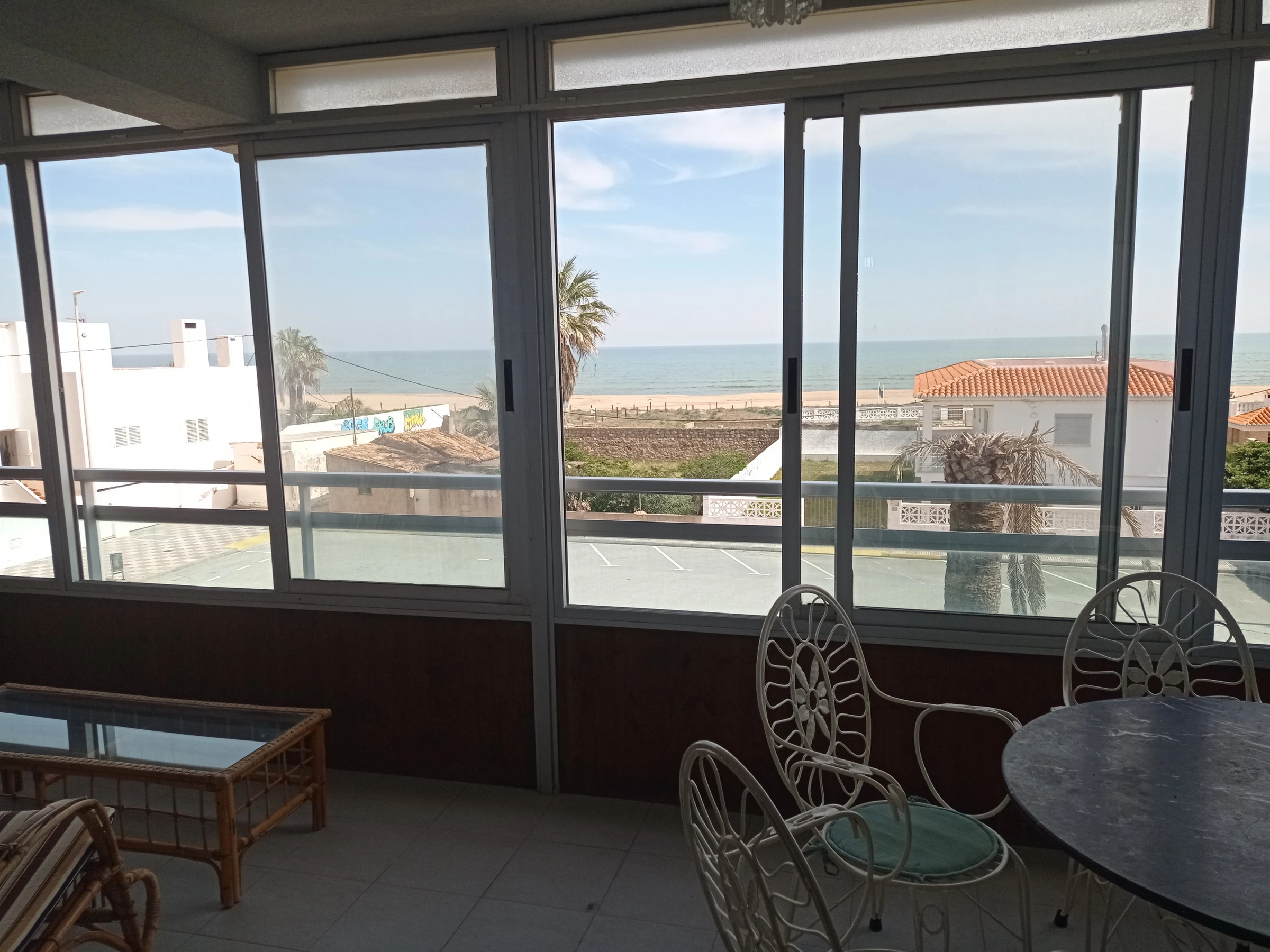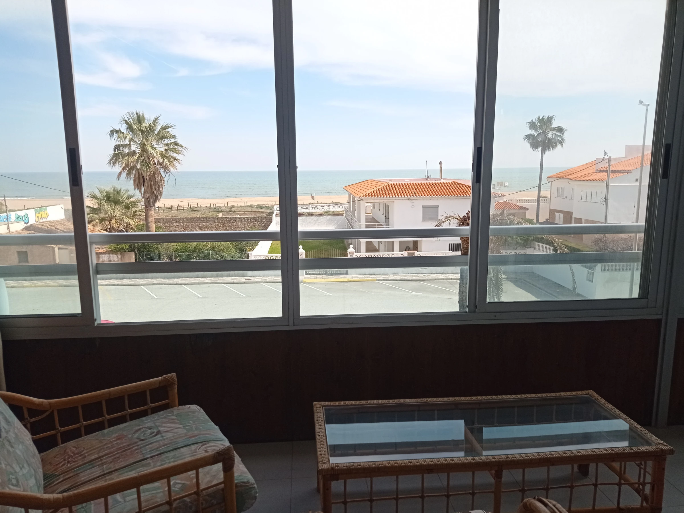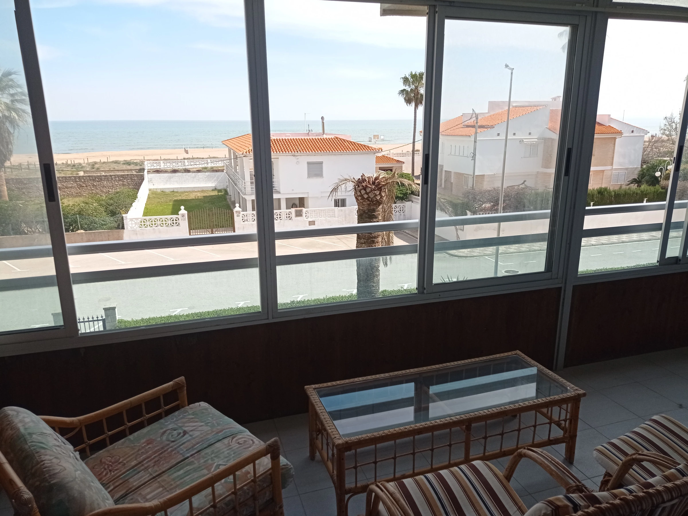 Apartamento en segunda planta, con tres dormitorios, un baño recientemente renovado con plato de ducha, pequeño aseo suite, cocina independiente con terraza-lavadero-tendedero, comodo salón comedor con salida a acogedora terraza parcialmente acristalada de orientación Este frontal al mar con fabulosas vistas a las dunas y la playa. Incluye plaza de aparcamiento cubierta y equipado con lavavajillas.