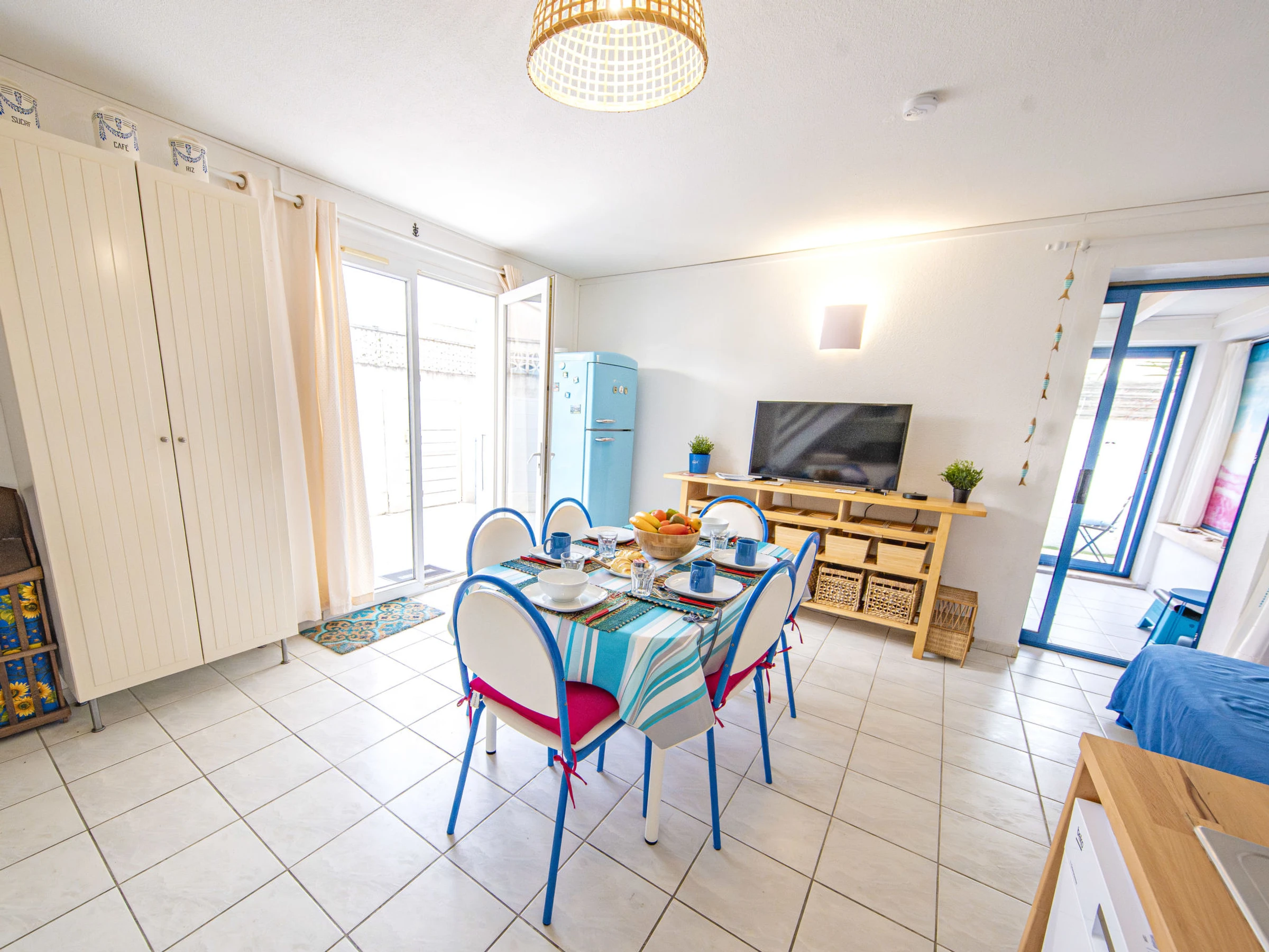 Maison mitoyenne "Le Clos Saint Louis", environnée par les prés. En bordure de la localité, à 1.6 km du centre d'Aigues-Mortes, à 7 km de la mer, à 8 km de la plage. Magasins 750 m, supermarché 2.4 km, restaurant 450 m, centre à 10 minutes à pieds, arrêt de bus "Arrêt Tour de Constance" 1.5 km, gare ferroviaire "Aigues-Mortes" 1.4 km, plage de sable "l'Espiguette" 12 km, piscine 8.9 km, centre thermal "Les bains de Camargue" 13 km. Marina 11.5 km, terrain de golf (42 trous) 9.5 km, ecole de surf 1 km, tennis 1 km. Attractions à proximité: Seaquarium 9.5 km, Babyland 9.6 km, Arènes du Grau du Roi 7.8 km, Nîmes 37.5 km, Montpellier 32.5 km. Veuillez noter: voiture recommandée. Bien convenant à 4 adultes + 2 enfants.