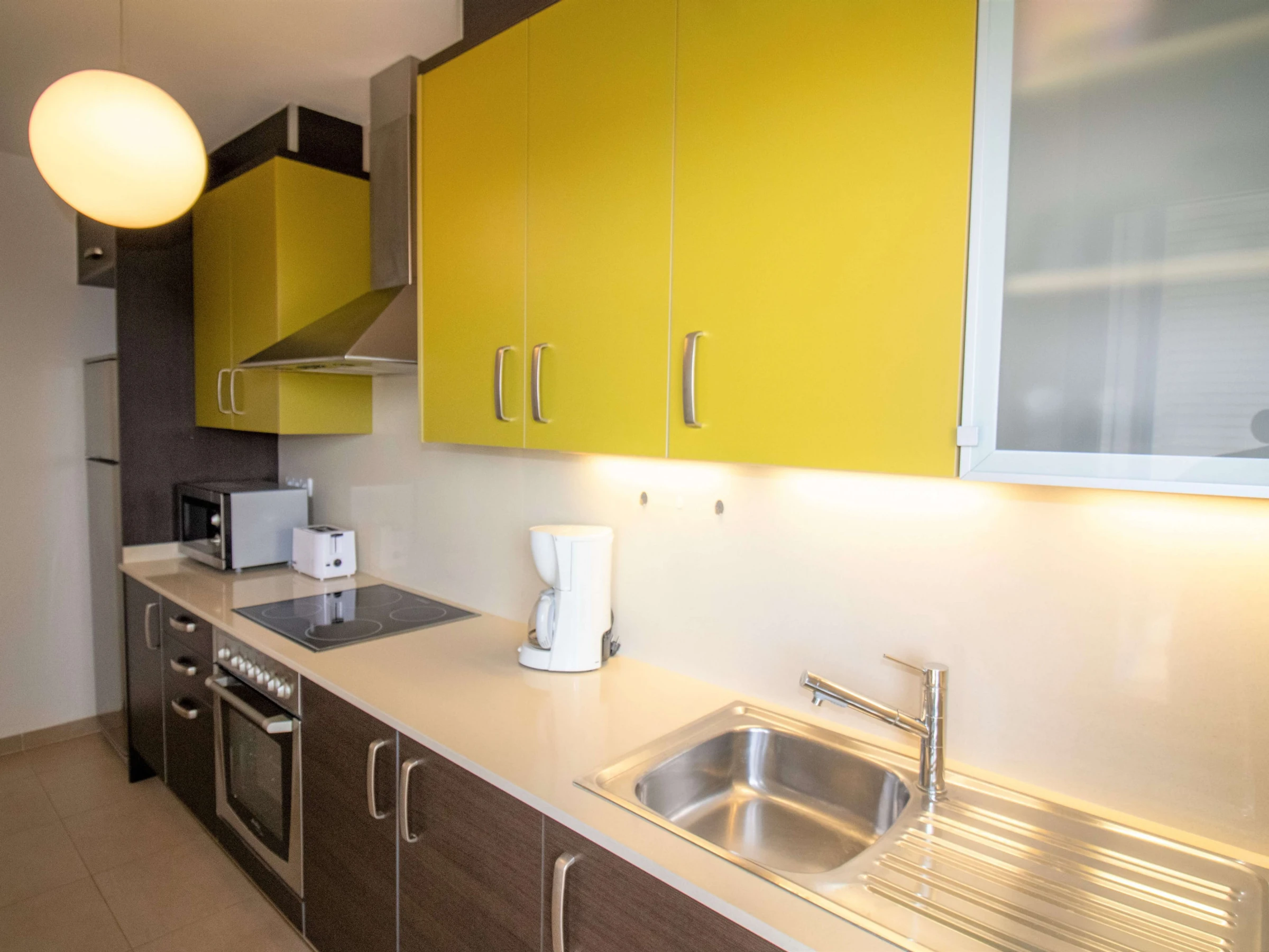 La cuisine indépendante, avec plaque vitrocéramique, est équipée d'un réfrigérateur, d'un micro-ondes, d'un four, d'un congélateur, d'un lave-linge, d'un lave-vaisselle, de vaisselle, d'ustensiles de cuisine, d'une cafetière, d'un grille-pain et d'un presse-agrumes.