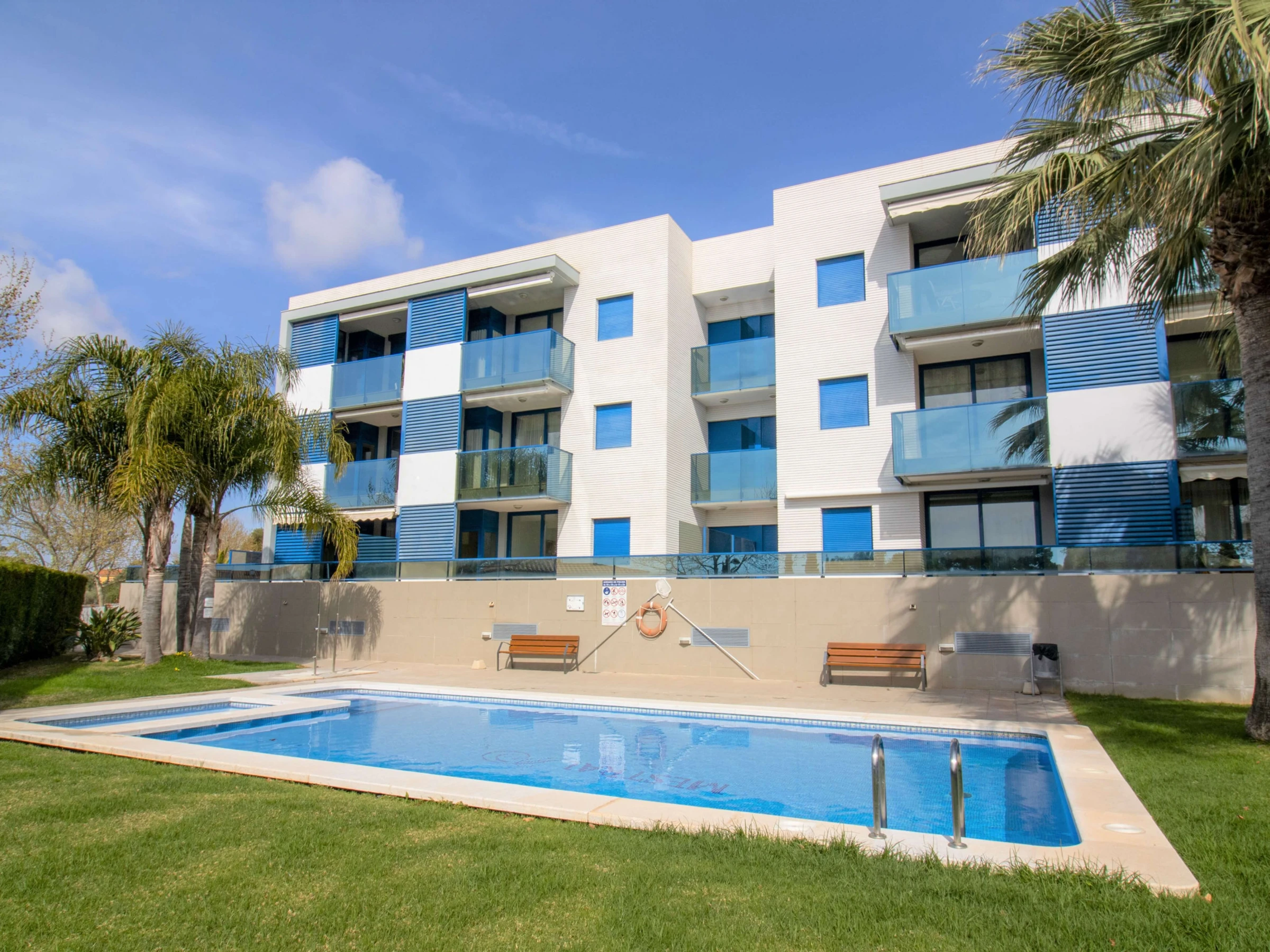 Dans l'urbanisation Mestral, très calme et bien situé, à 5 minutes à pied de la plage Cargador. Avec piscine et jardin commun.
