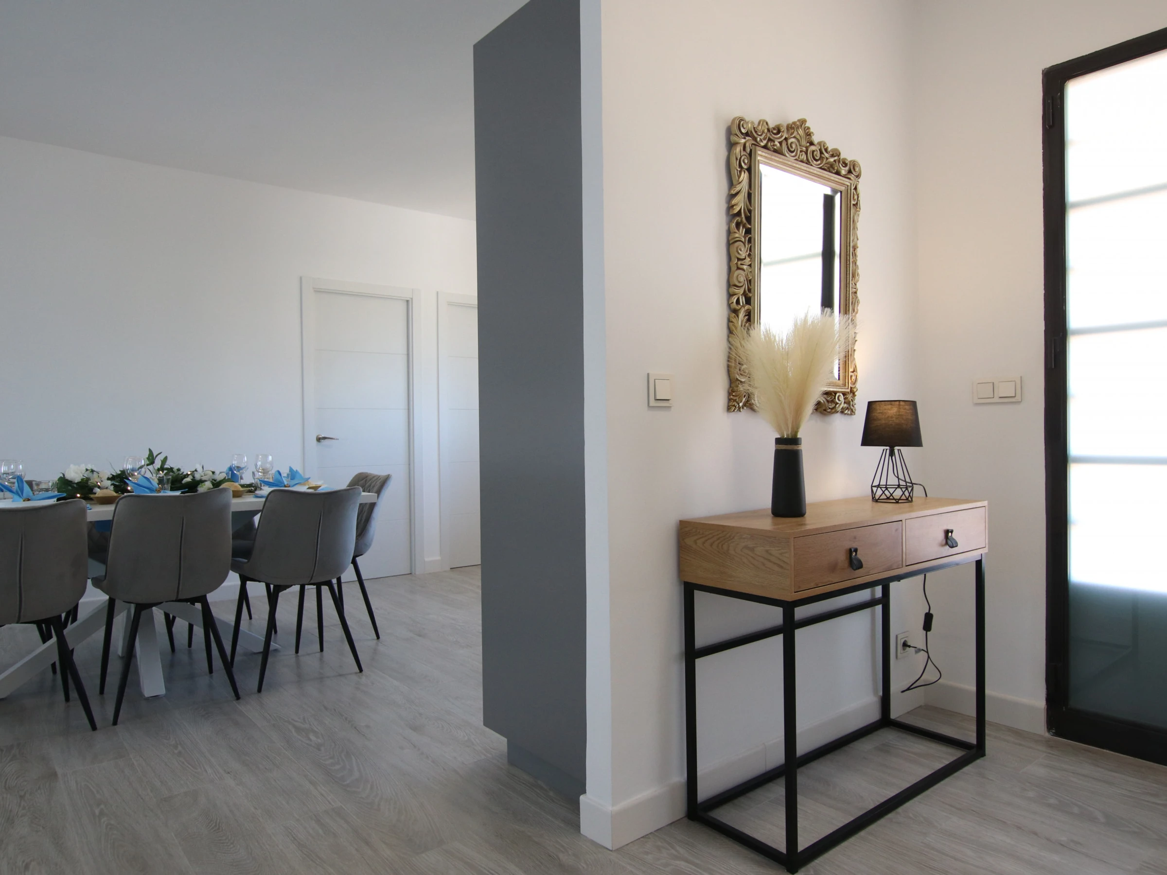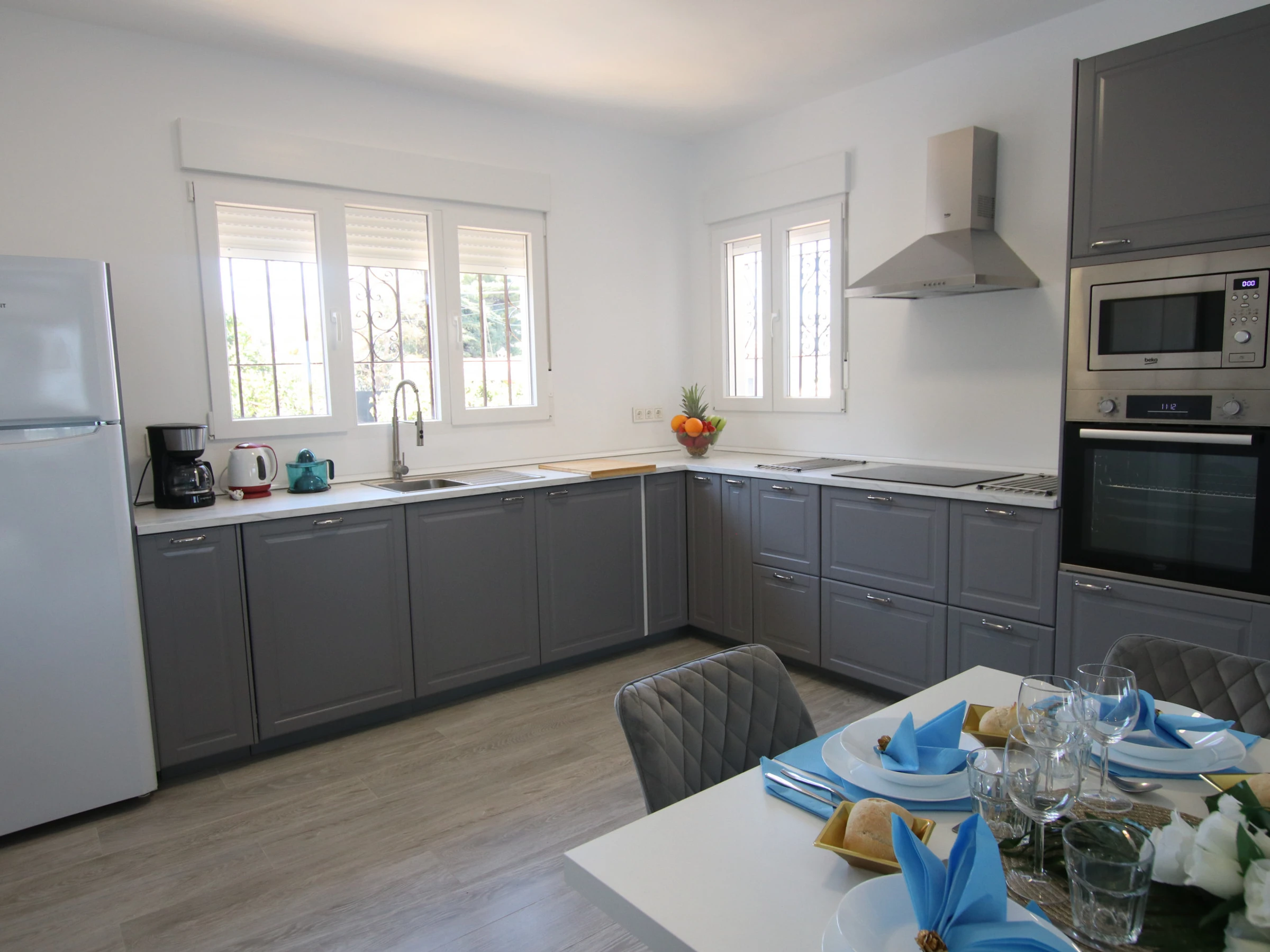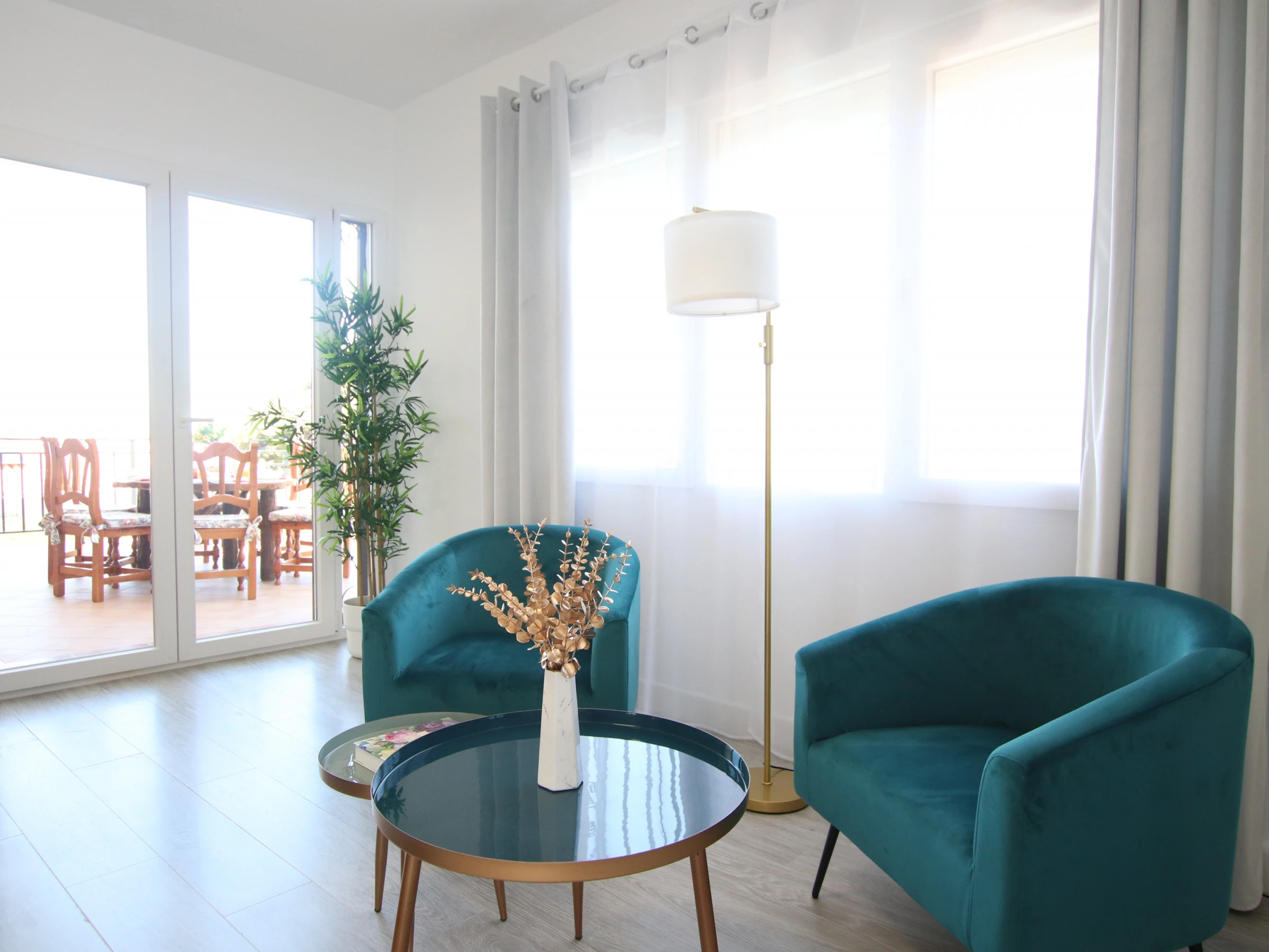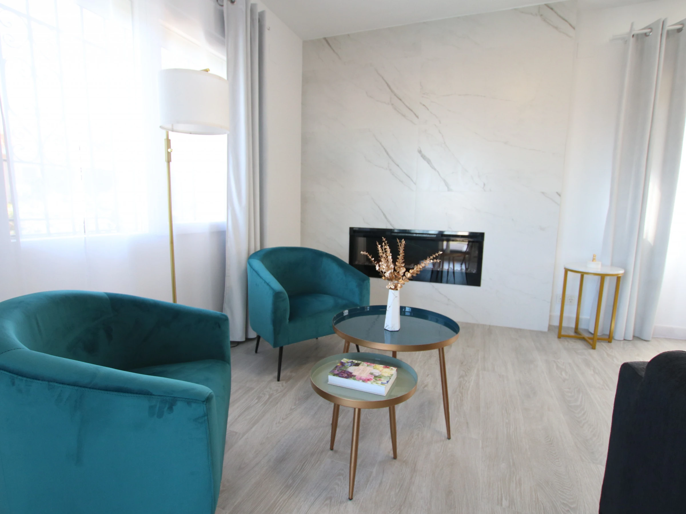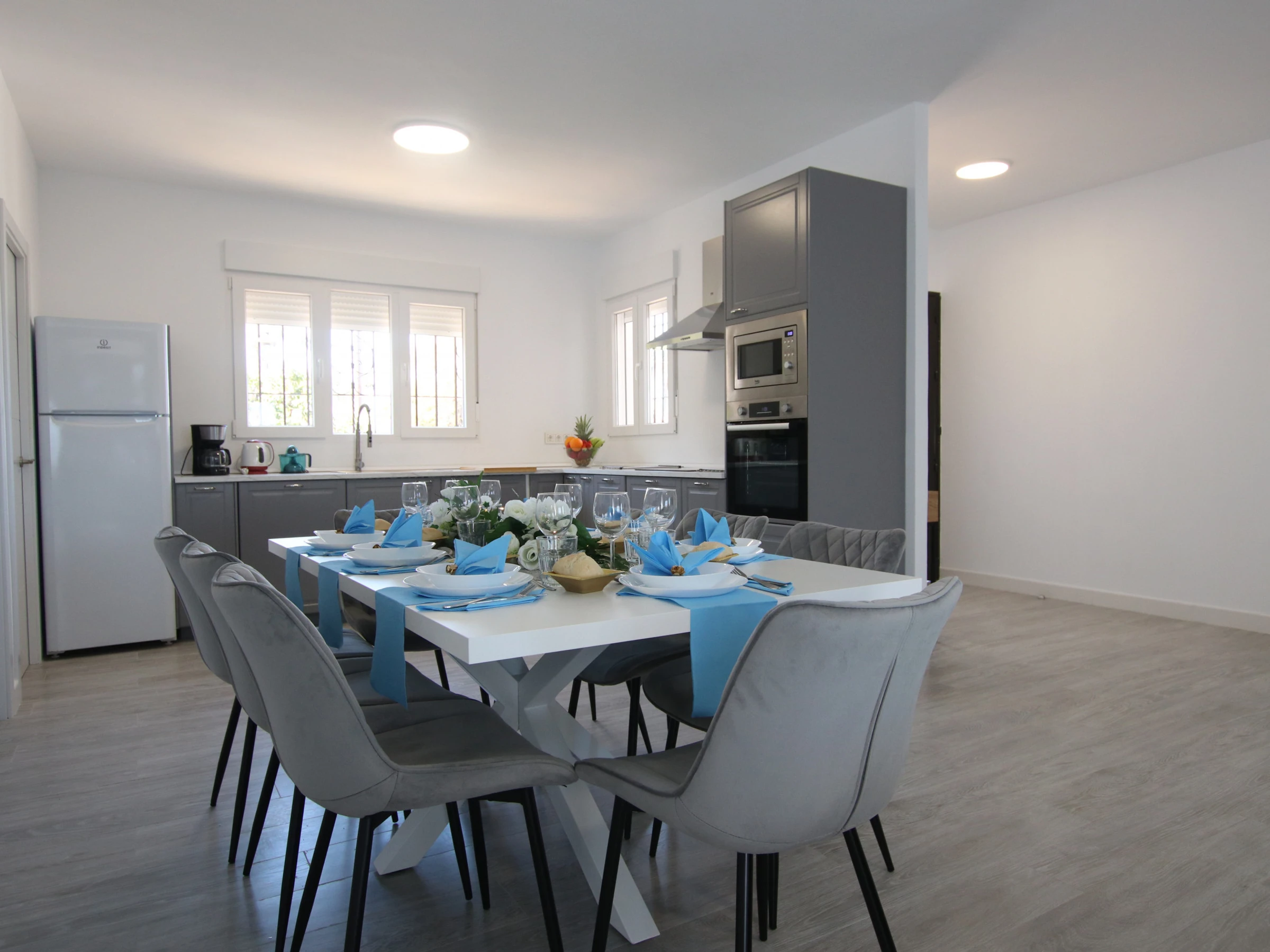 -SALON : conçu avec goût et assez spacieux, avec deux grands canapés, une télévision Full HD, la climatisation et de grandes fenêtres qui donnent accès à une grande terrasse avec vue sur le jardin et la piscine. Très lumineuse et spacieuse. Il dispose également d'une cheminée électrique fonctionnelle et d'un coin lecture avec deux fauteuils séparés. Une connexion Internet et WIFI est disponible dans la maison.