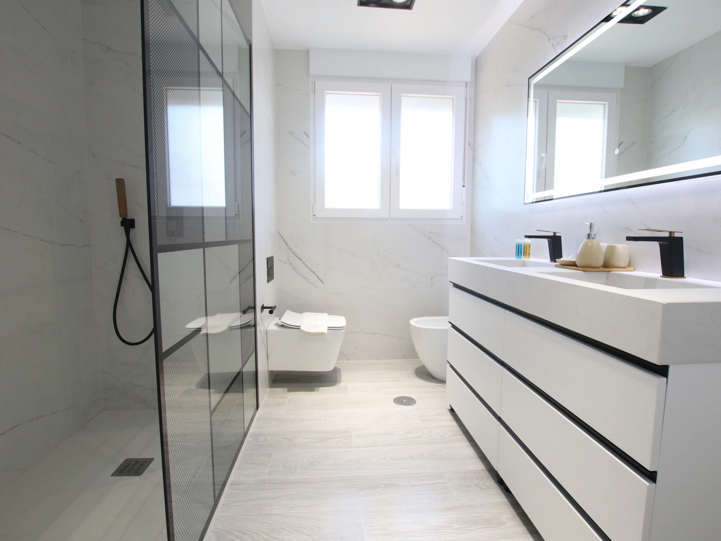 -Salle de bains attenante : dans la chambre A, il y a une salle de bains avec toilettes, lavabo et douche (récemment rénovée).