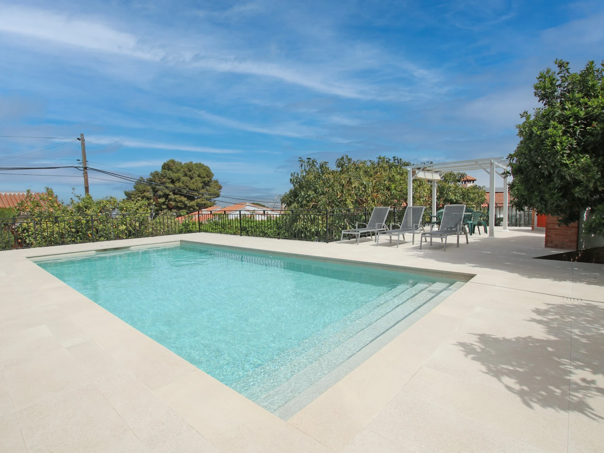 En cette année 2024, nous aimerions souligner la piscine TOTALEMENT REFORMÉE ET MODERNISÉE, avec une descente progressive, qui assure la sécurité et le plaisir des jeunes enfants dans l'eau. Des projecteurs ont été installés pour l'éclairage nocturne. La profondeur de la piscine varie de 0'7m/2,3ft à 1'60m/5'25ft.