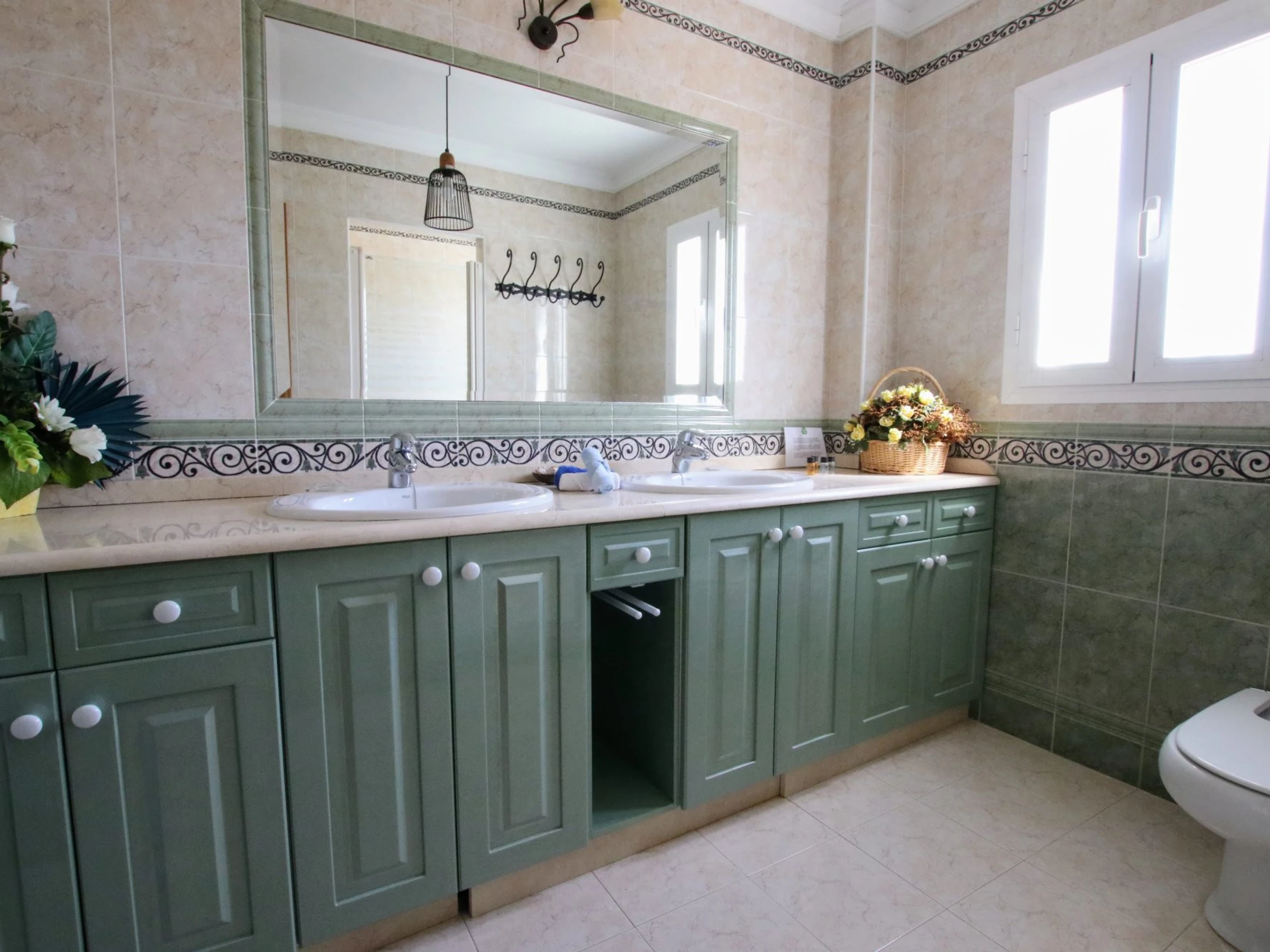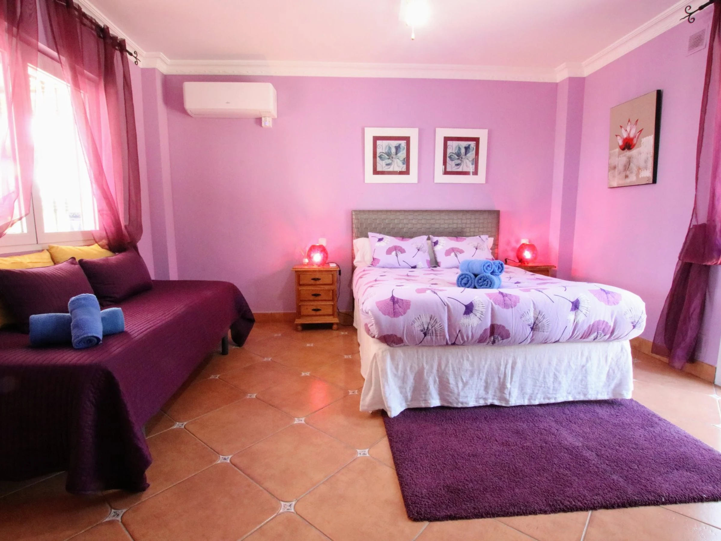 Dispose de 5 chambres. Au rez-de-chaussée, nous pouvons en trouver 3. La première (avec un lit de 140 x 200) et un lit individuel de (90x190cm) est très spacieuse et lumineuse. Elle possède des placards intégrés avec miroirs, de grandes fenêtres, la climatisation et le chauffage et une salle de bain avec une douche.