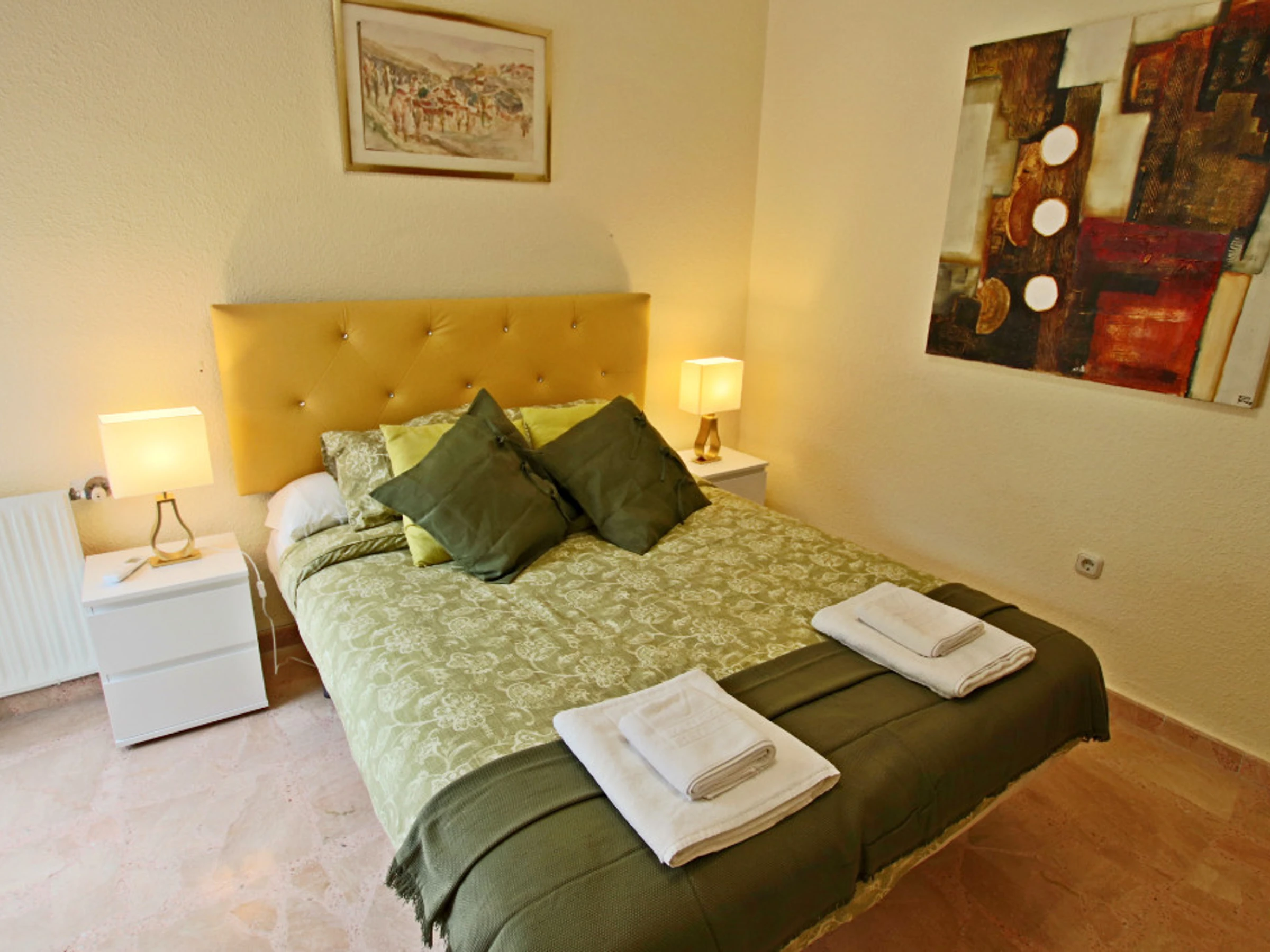 La deuxième chambre, avec un lit de 140 x 200, est très lumineuse, dispose de la climatisation et du chauffage, et de grandes fenêtres donnant sur une petite terrasse avec vue sur les montagnes. La troisième chambre, avec un lit de 140 x 200, dispose d'armoires encastrées, de grandes fenêtres ouvrant sur une grande terrasse surplombant la vallée, de l'air conditionné et du chauffage. La quatrième chambre, avec un lit double de 140 x 200, dispose d'armoires encastrées, de la climatisation et du chauffage, et d'un balcon avec vue sur les montagnes. La cinquième chambre, avec un lit double de 150 x 200, dispose d'armoires encastrées, de la climatisation et du chauffage, et d'un balcon avec vue sur les montagnes.