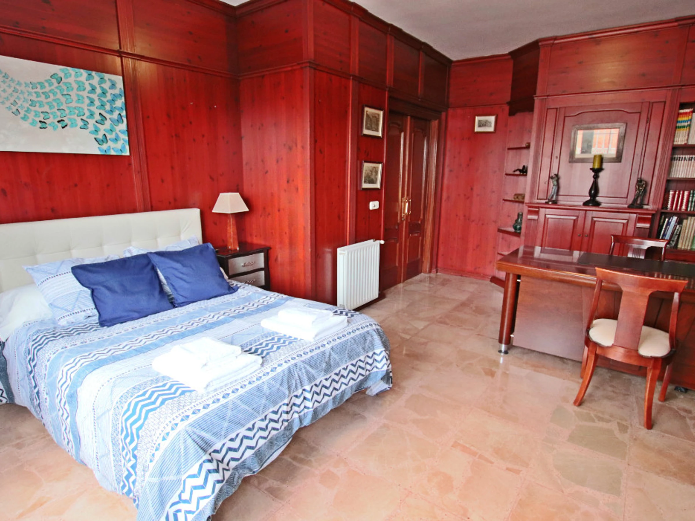 Au rez-de-chaussée se trouve une sixième chambre (avec un lit de 140 x 200), climatisée et chauffée, avec un coin bureau, une bibliothèque et de grandes fenêtres avec vue sur les montagnes. Il y a aussi une septième chambre (avec quatre lits simples de 90 x 200), climatisée et chauffée, avec un espace pour les enfants, des jeux pour enfants et des jeux de société.