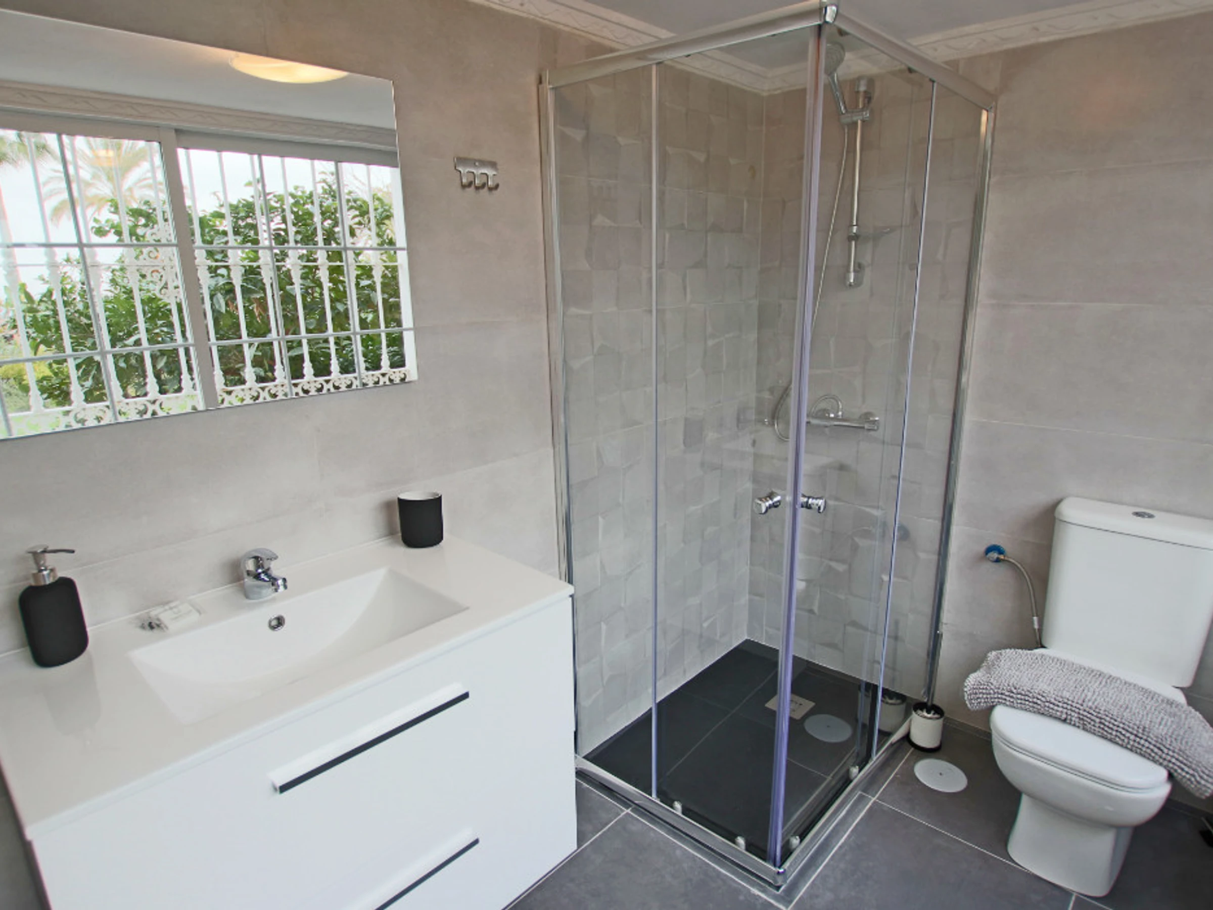 Cette belle villa a un grand hall d'entrée où l'on peut voir un bel escalier qui nous mène au premier étage. De l'autre côté, on trouve le salon, deux chambres et une salle de bains entièrement équipée avec baignoire.