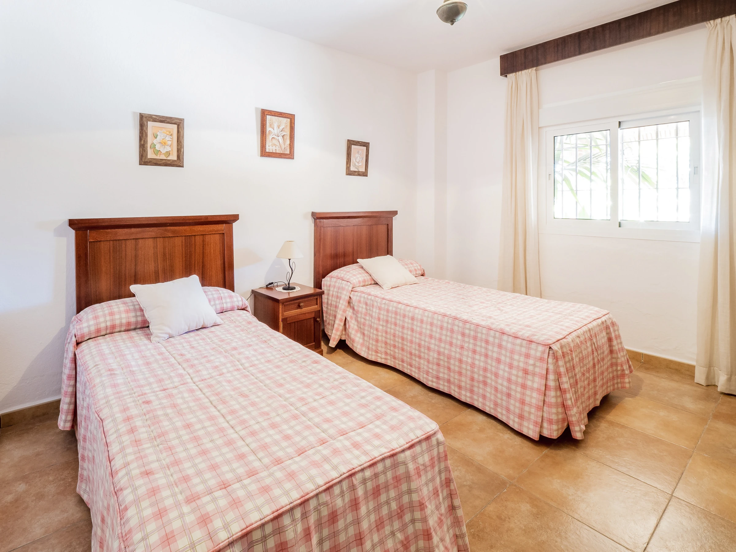 La maison, de 130 m², est confortable et lumineuse, avec une capacité de 6 personnes réparties dans trois chambres (deux avec un lit de couple et une avec deux lits individuels). Veuillez noter que cette propriété n'admet pas plus d'un bébé par réservation (0-2 ans). Toutes disposent de fenêtres donnant sur l'extérieur et d'un espace de rangement pour vos bagages. Le logement offre un salon-salle à manger accueillant avec télévision et canapés confortables, idéal pour se détendre en famille. La cuisine, spacieuse et équipée de plaques vitrocéramiques, four, micro-ondes, réfrigérateur, congélateur et tous les ustensiles nécessaires, est parfaite pour préparer vos repas facilement.