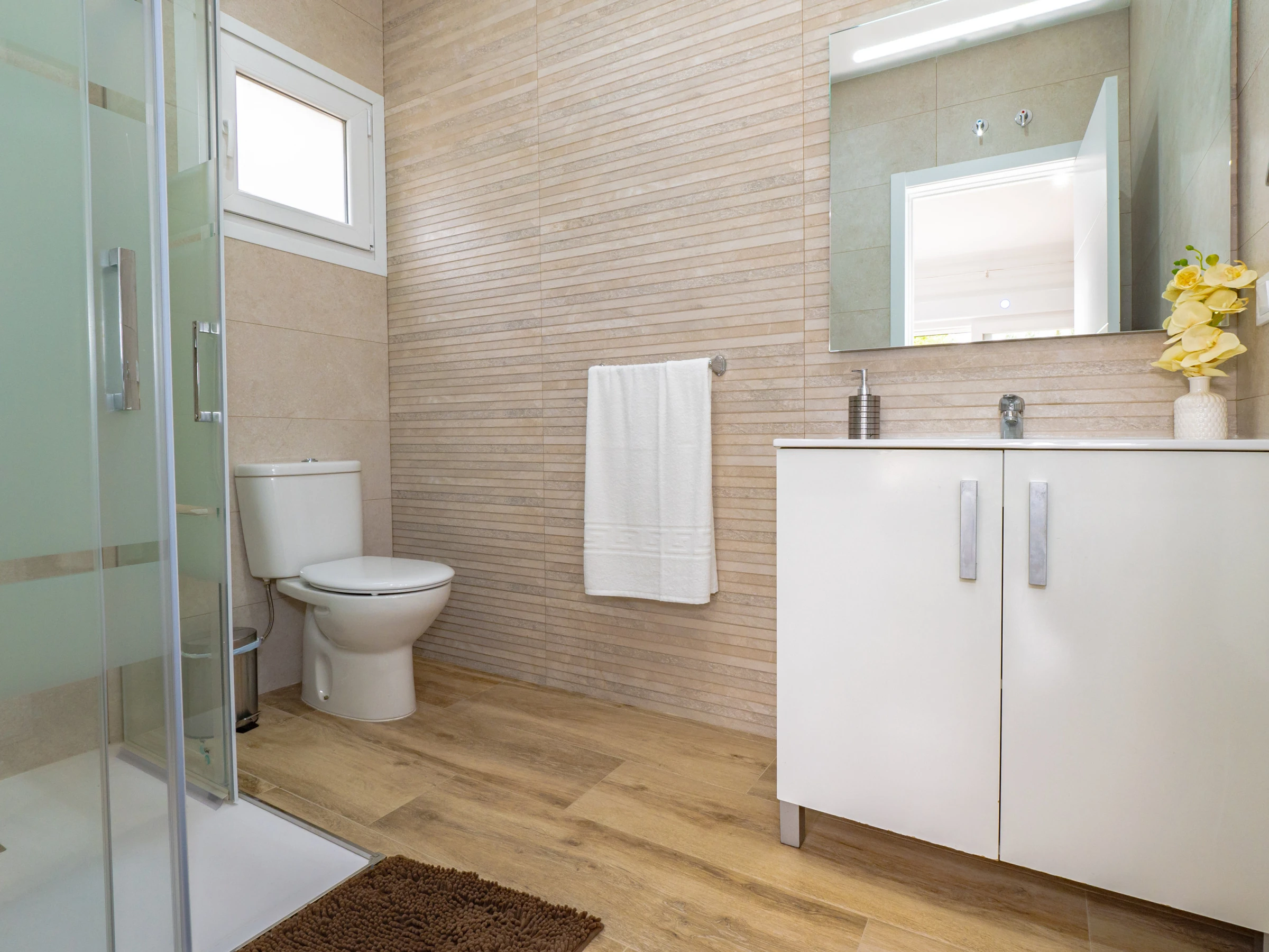La distribution comprend deux chambres avec des lits doubles, une avec deux lits simples, une salle de bain attenante dans la chambre principale et une deuxième salle de bain complète, ainsi que des toilettes extérieures près de la piscine pour plus de commodité. La climatisation, le chauffage et l'accès internet wifi garantissent un séjour confortable à toute période de l'année.
