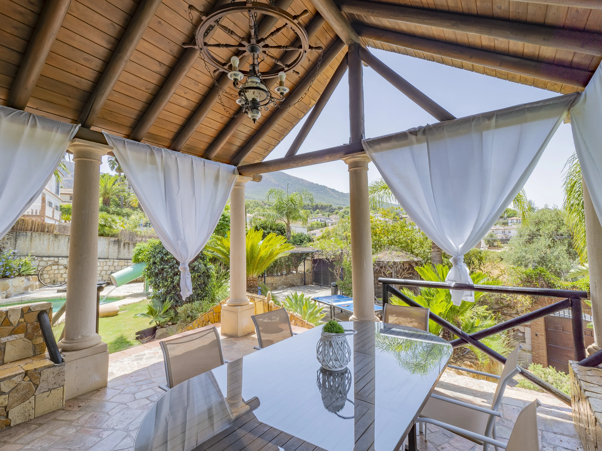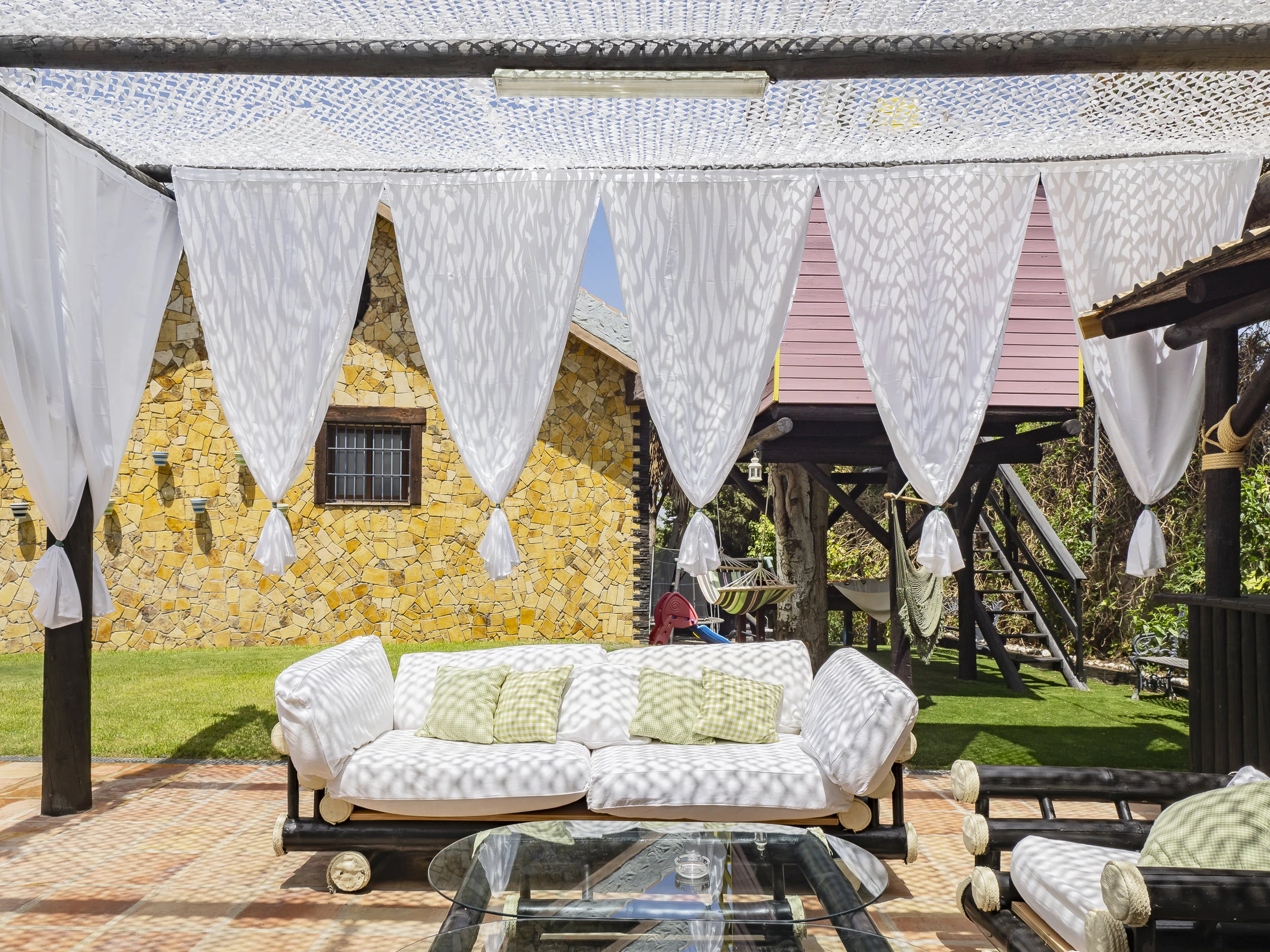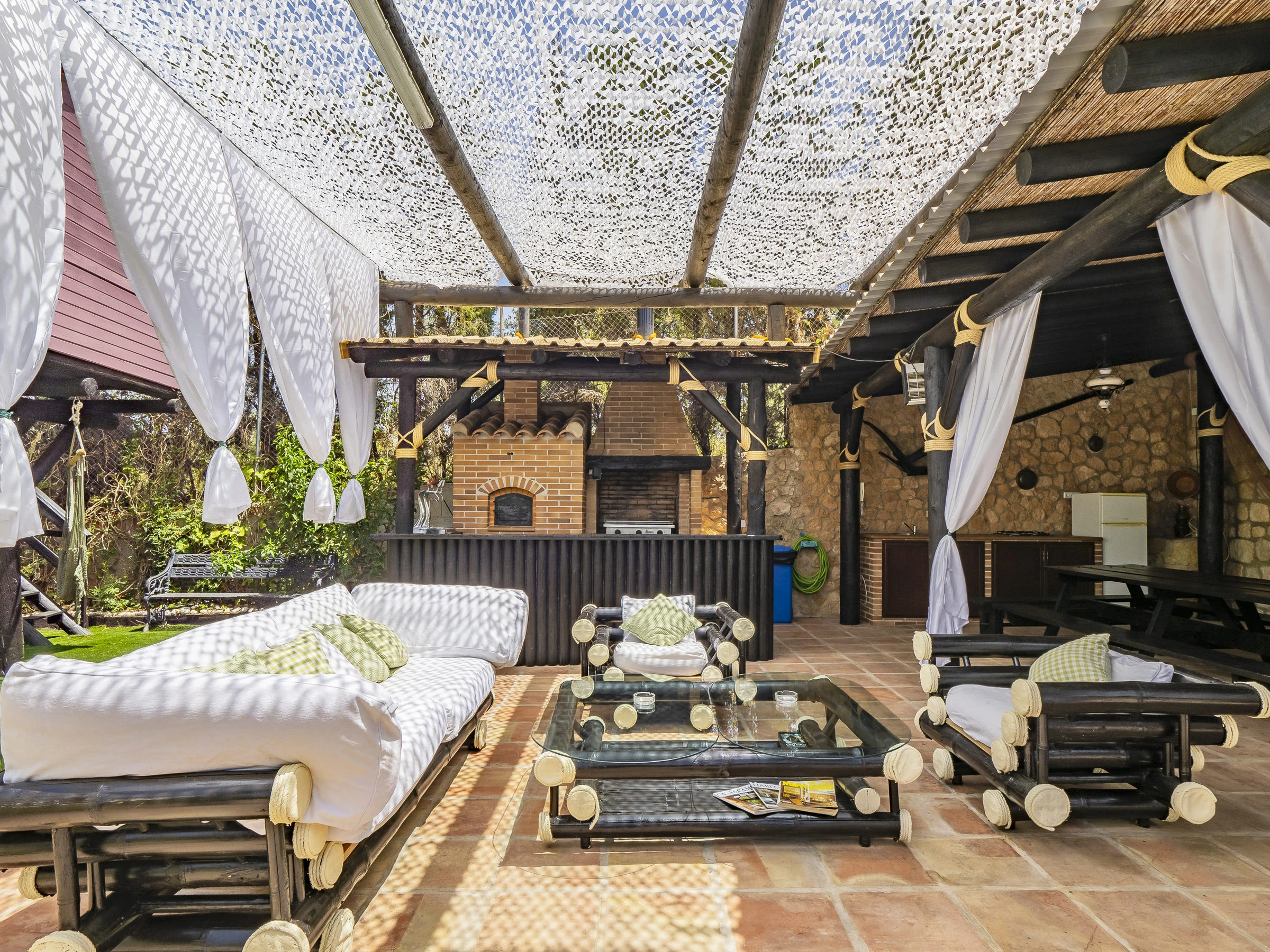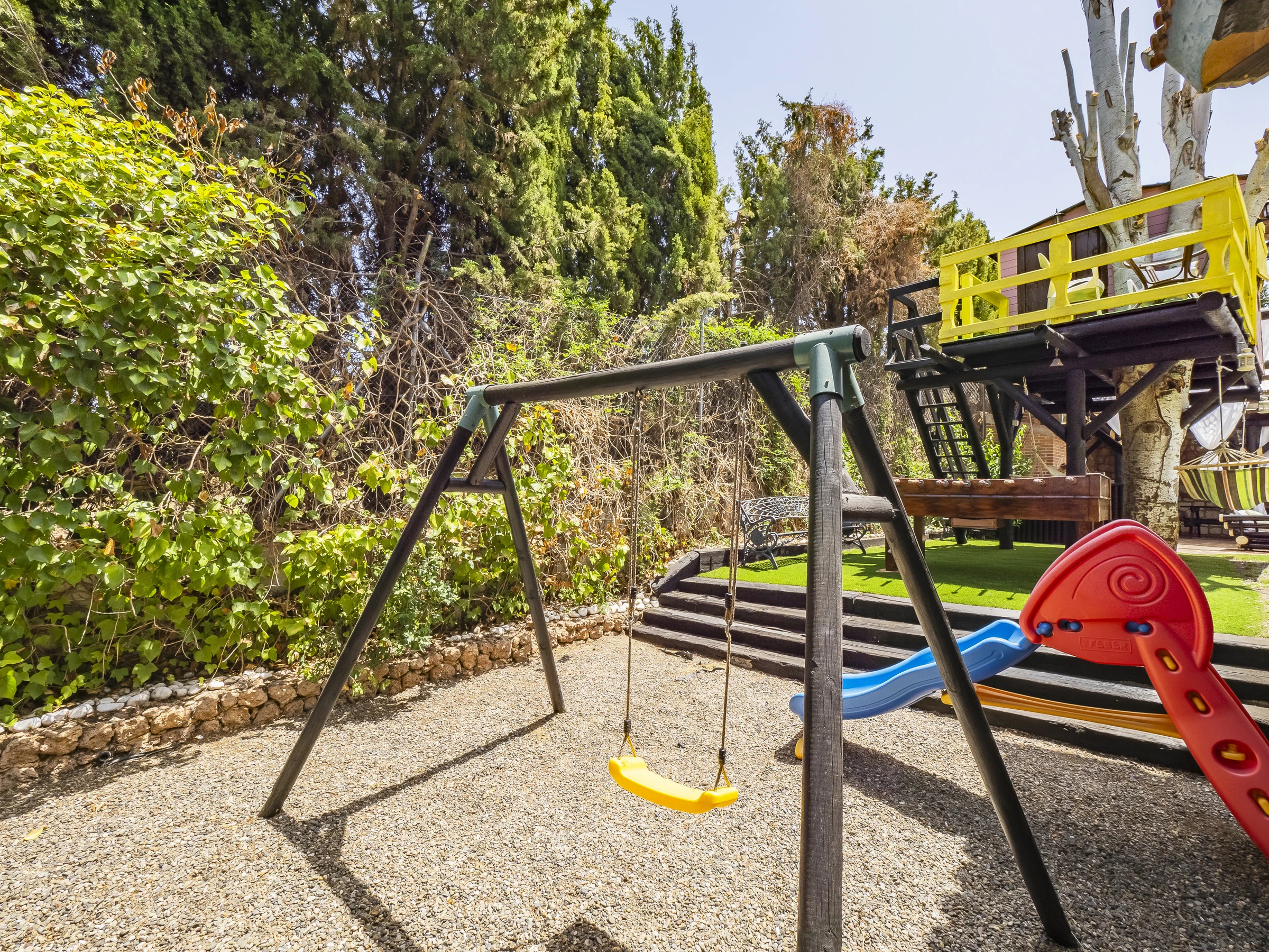 À l'extérieur, la villa offre un grand jardin avec piscine privée, une aire de jeux pour enfants et une vaste zone de barbecue, parfaite pour profiter de déjeuners et de dîners en plein air sous la pergola avec une table à manger et des vues relaxantes. Le mobilier extérieur peut varier selon le temps, mais toujours en pensant à votre confort. La parcelle est clôturée, idéale pour les familles avec des enfants qui pourront s'amuser dans l'aire de jeux, bien que la supervision des plus jeunes soit de la responsabilité des adultes, en particulier s'ils décident de monter dans la cabane dans les arbres 🏊♂️🌳.