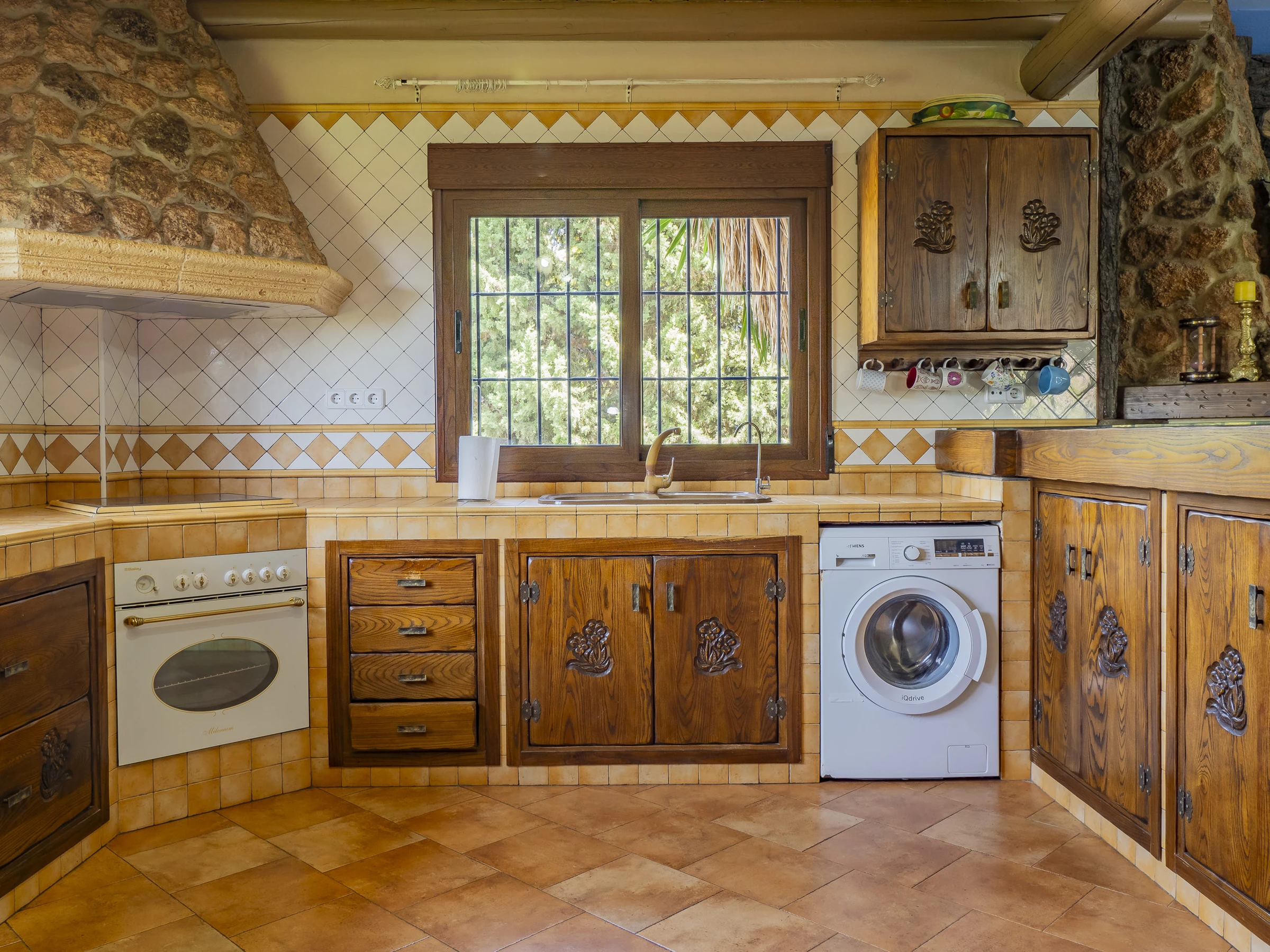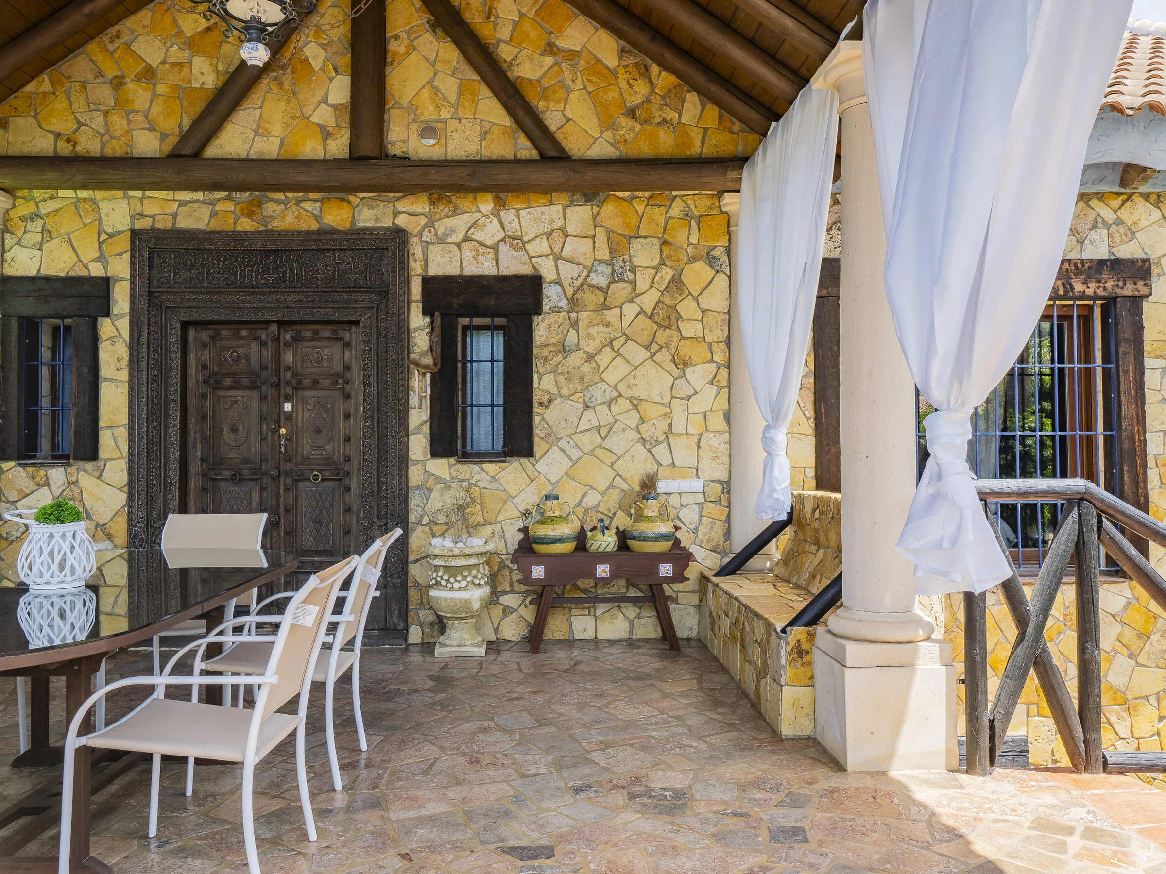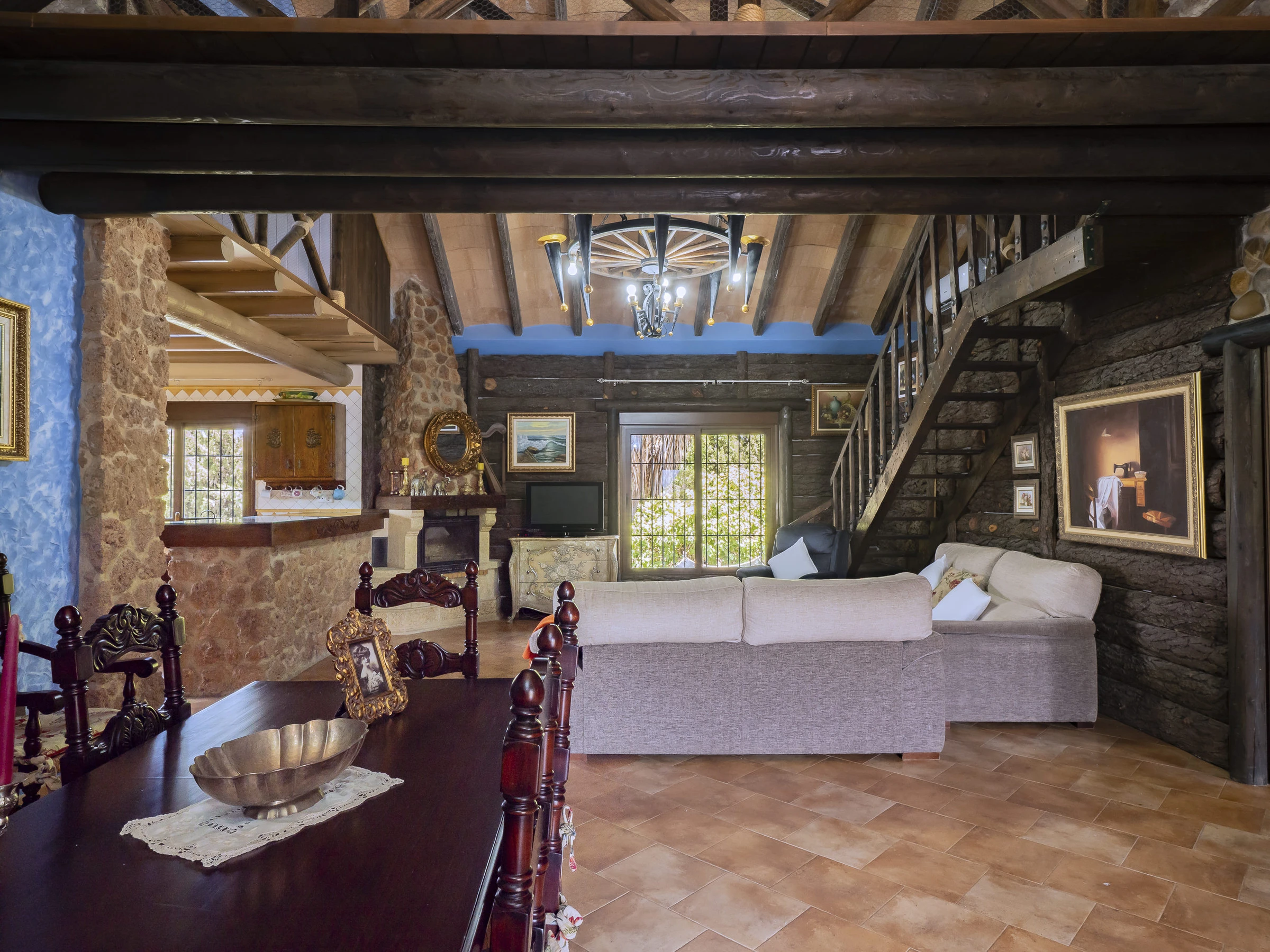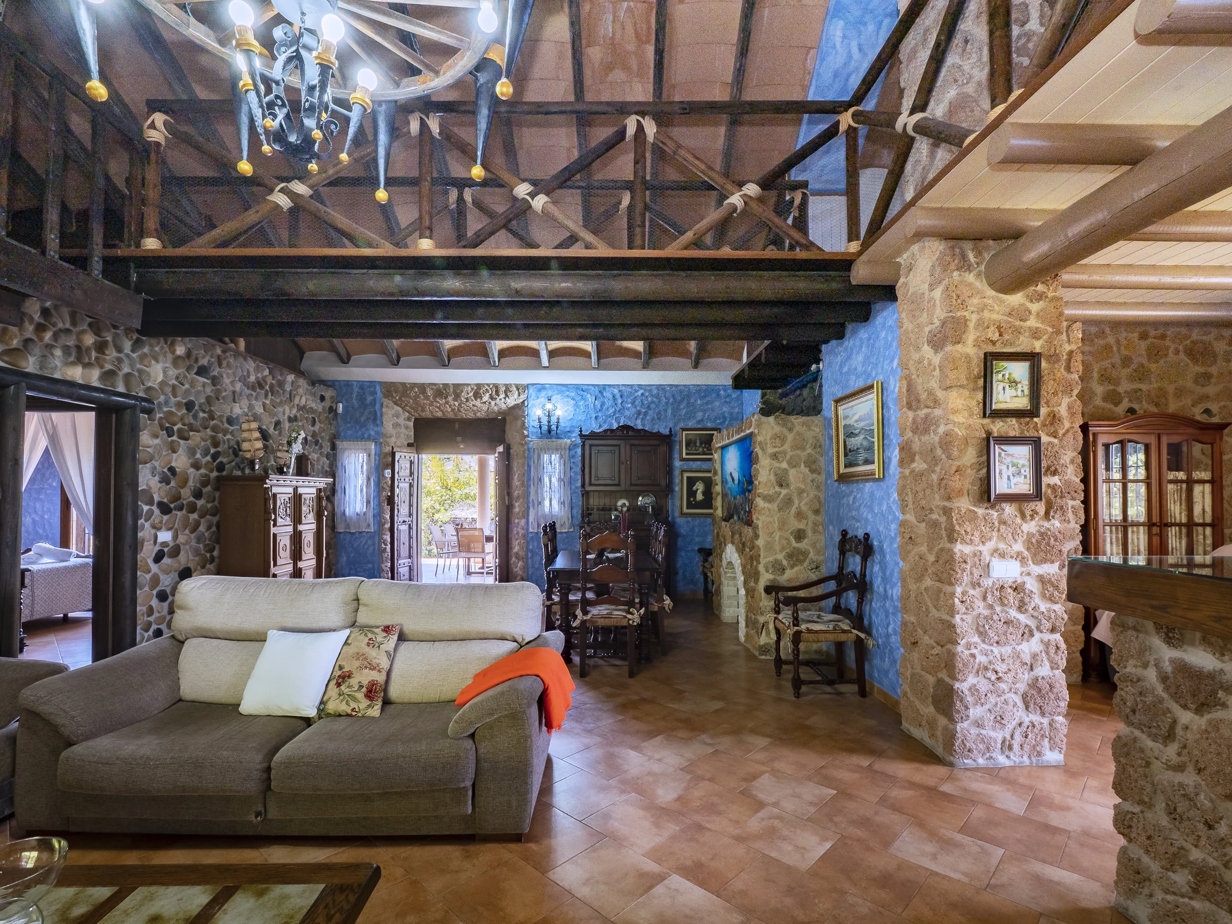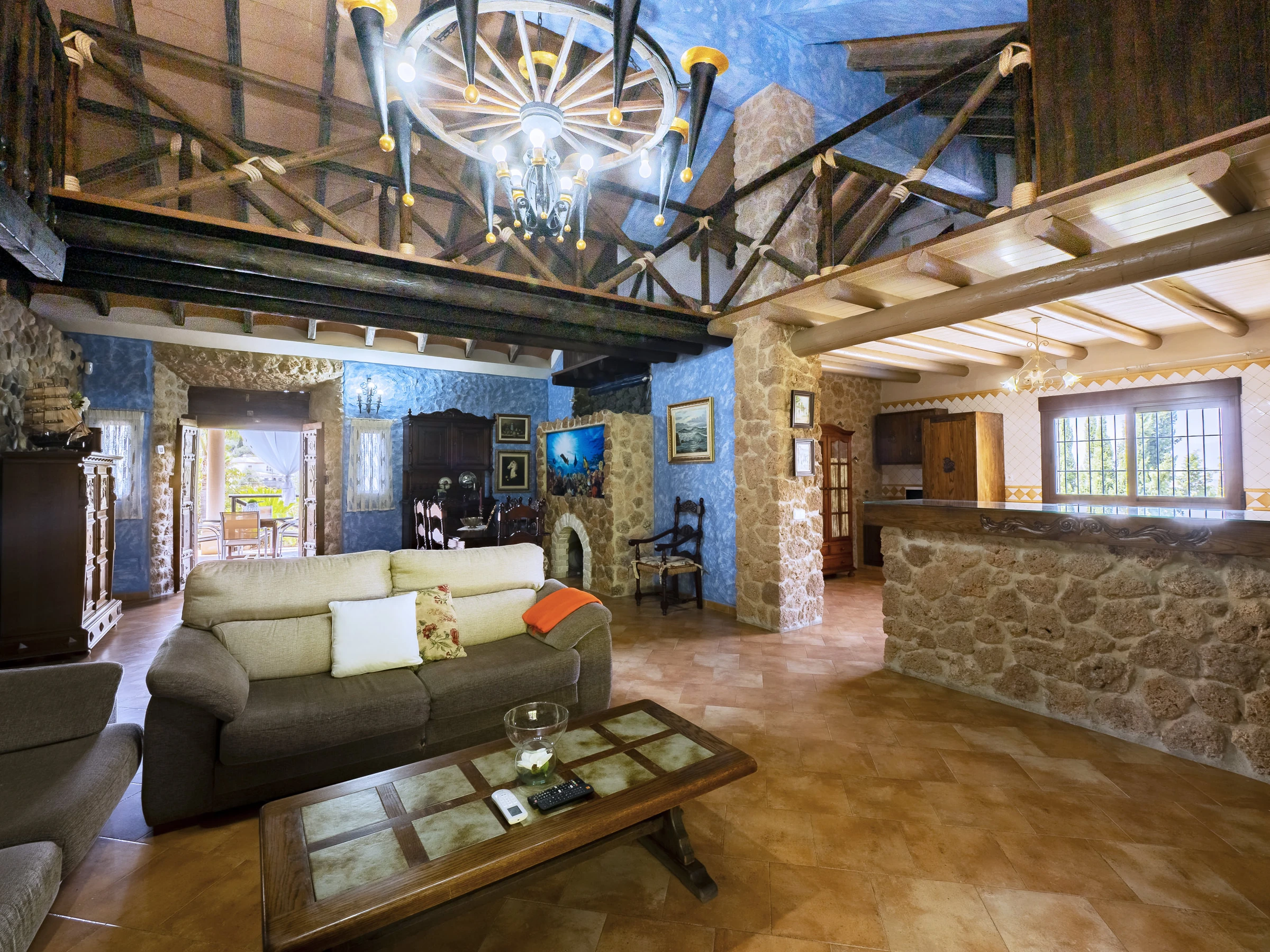 La villa se distingue par son style rural chaleureux, combinant bois et pierre qui apportent chaleur et confort. Elle dispose de trois chambres : au rez-de-chaussée, une chambre principale avec un lit king size et une autre avec deux lits individuels, toutes deux avec climatisation et espace pour ranger vos bagages. À l'étage, sous des toits à deux pentes avec des poutres en bois, vous trouverez deux lits doubles et une zone de repos avec un bureau, idéale si vous devez travailler ou étudier pendant votre séjour 💻.