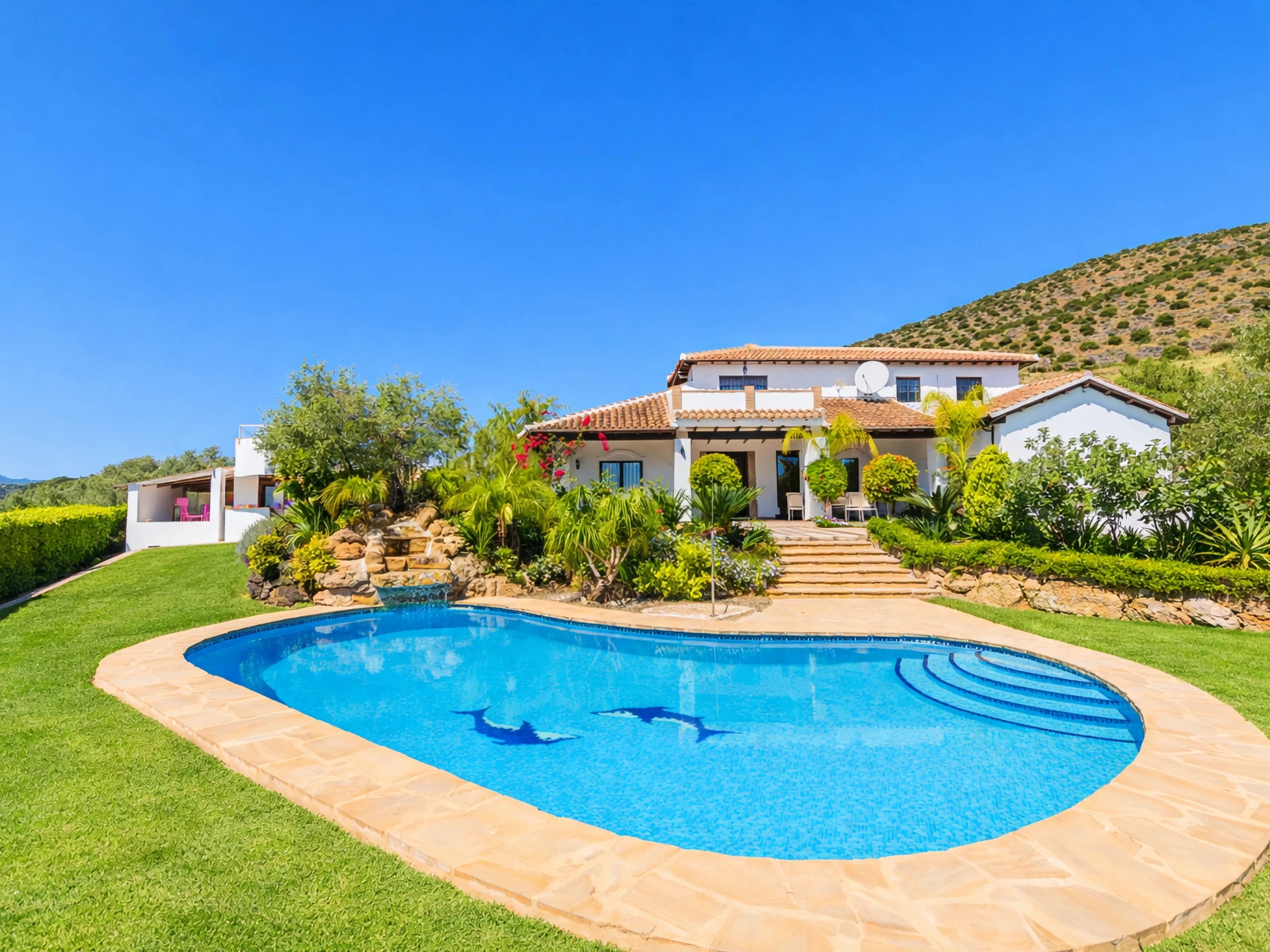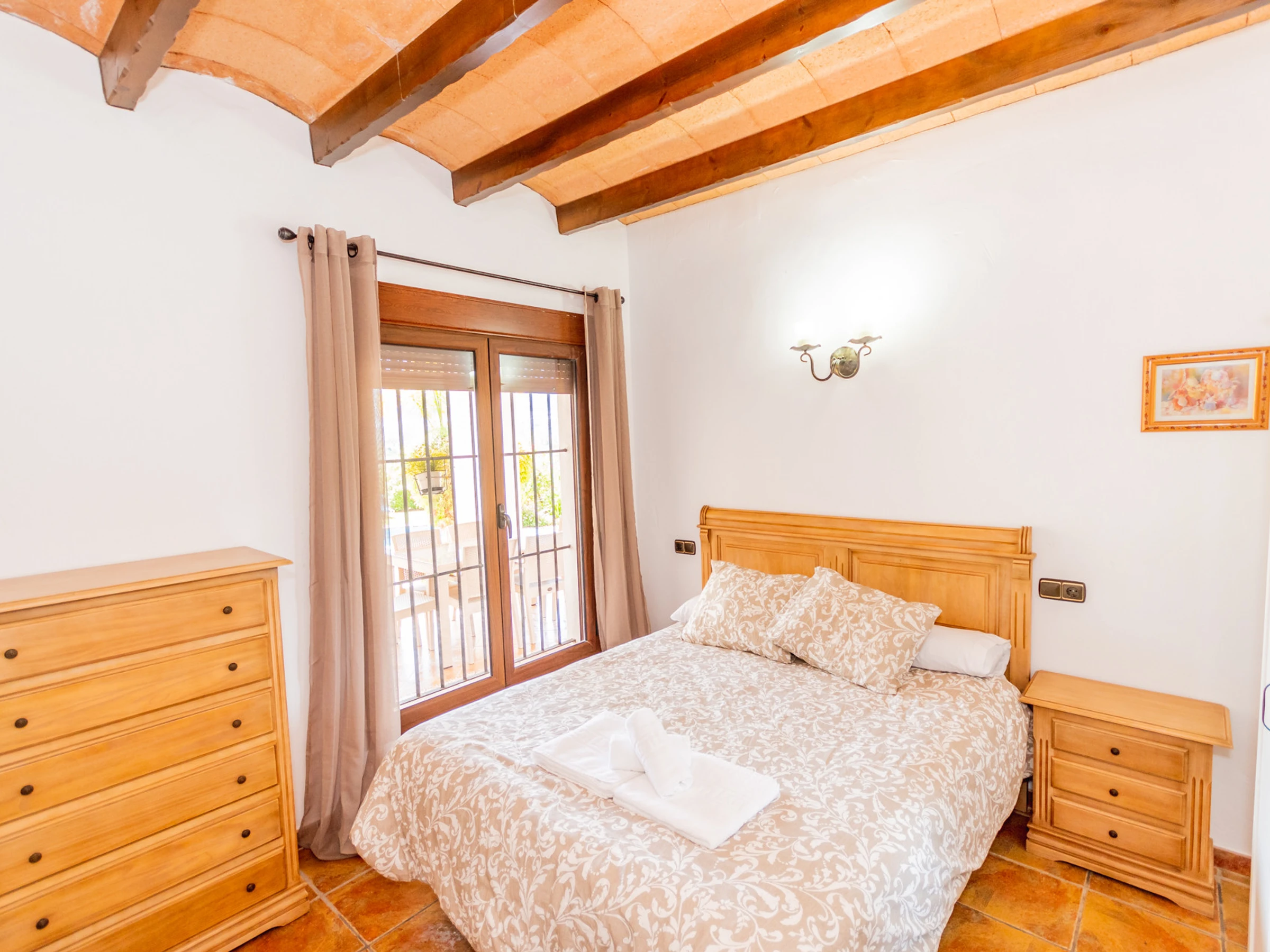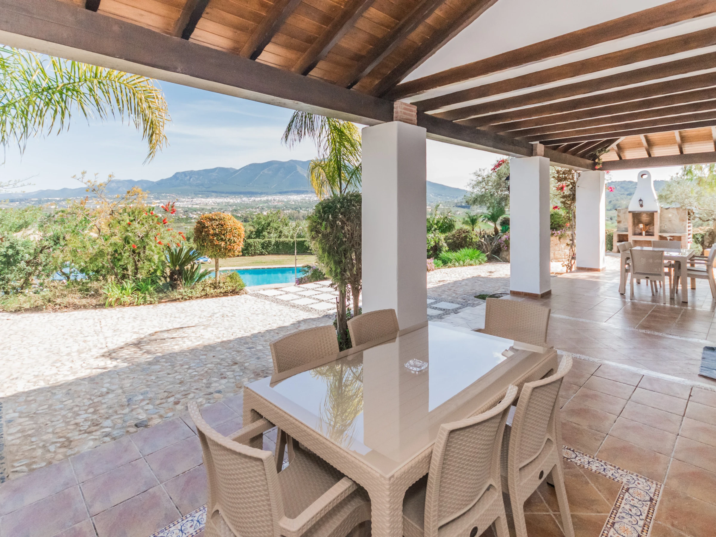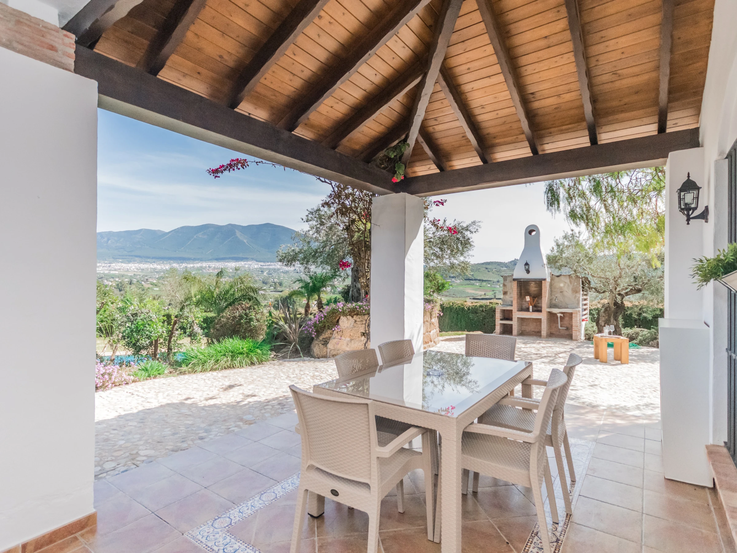 À l'extérieur, profitez du climat méditerranéen depuis la large terrasse meublée avec table et chaises, idéale pour des dîners en plein air avec des vues spectaculaires sur la montagne et le jardin 🌄. La piscine privée invite à se rafraîchir et à se détendre, tandis que la zone de barbecue est parfaite pour partager des moments spéciaux en compagnie.