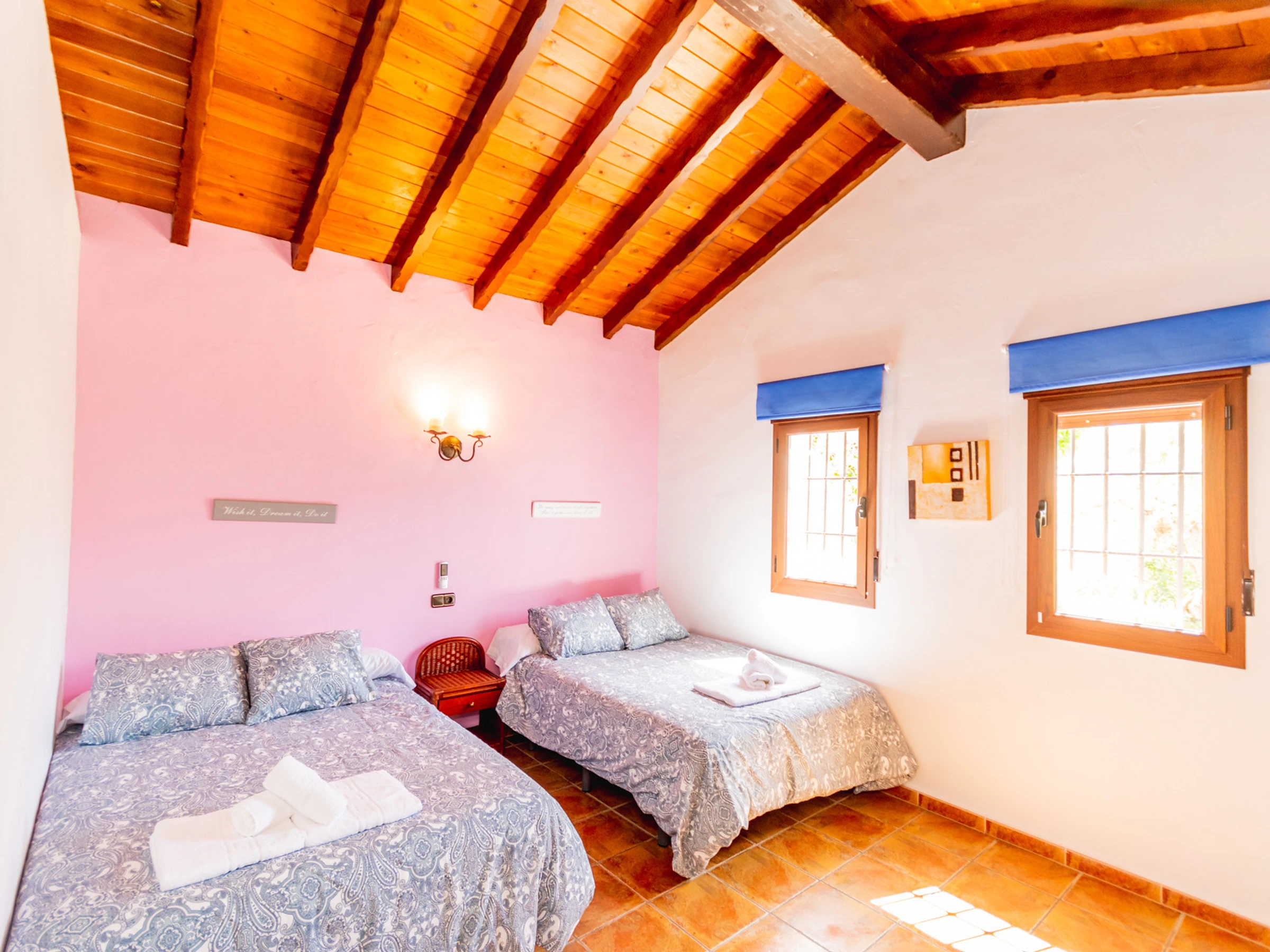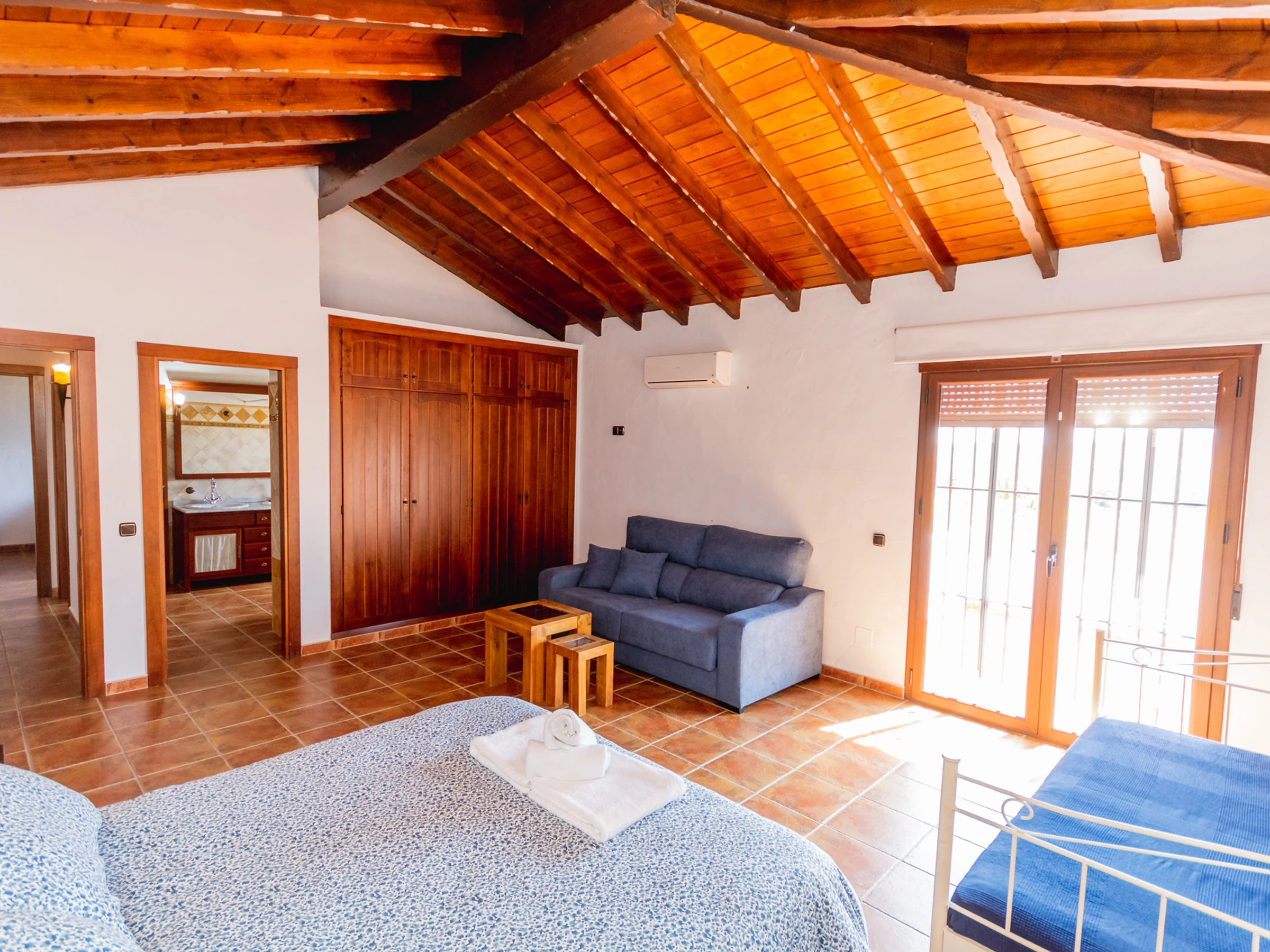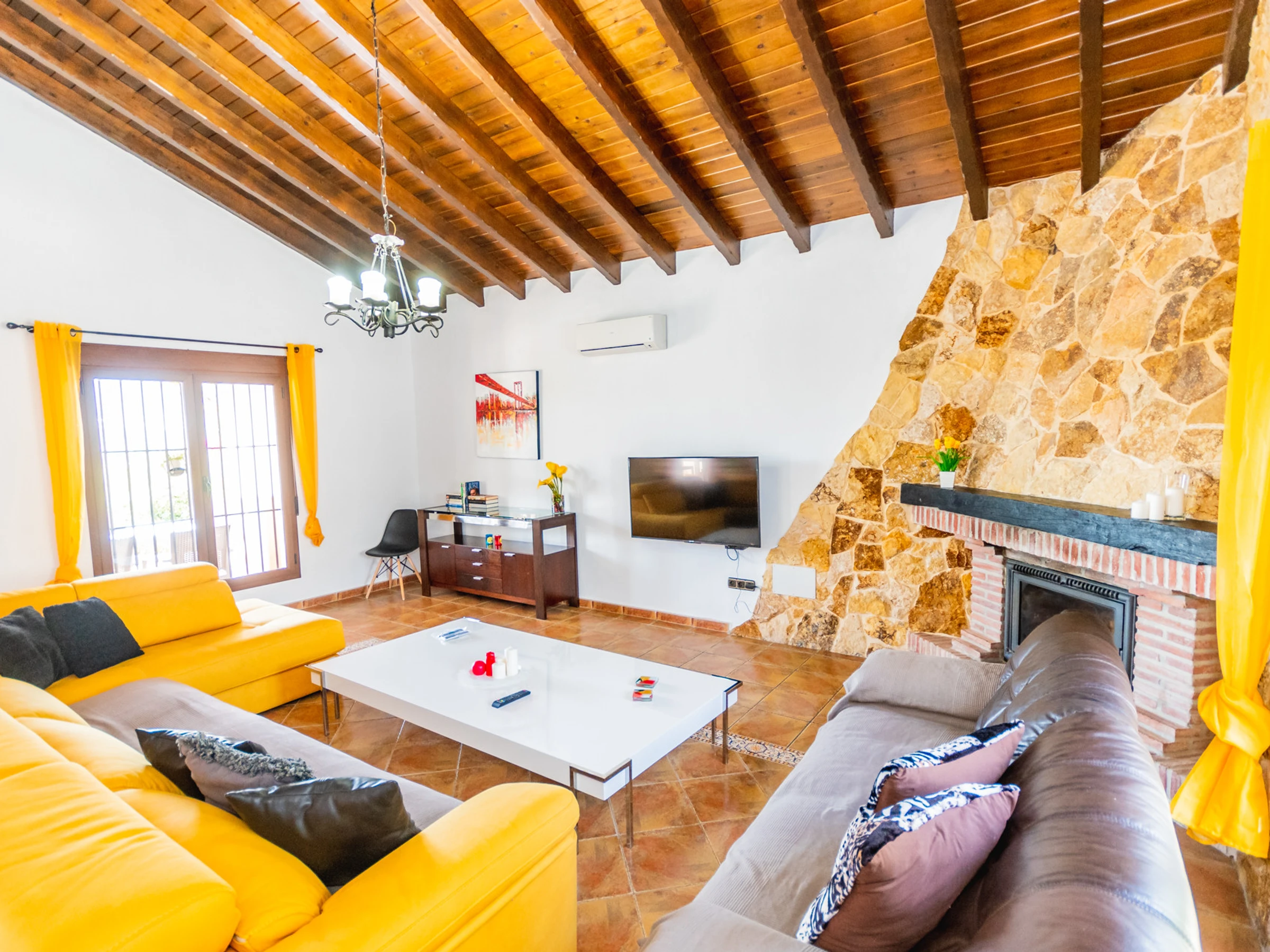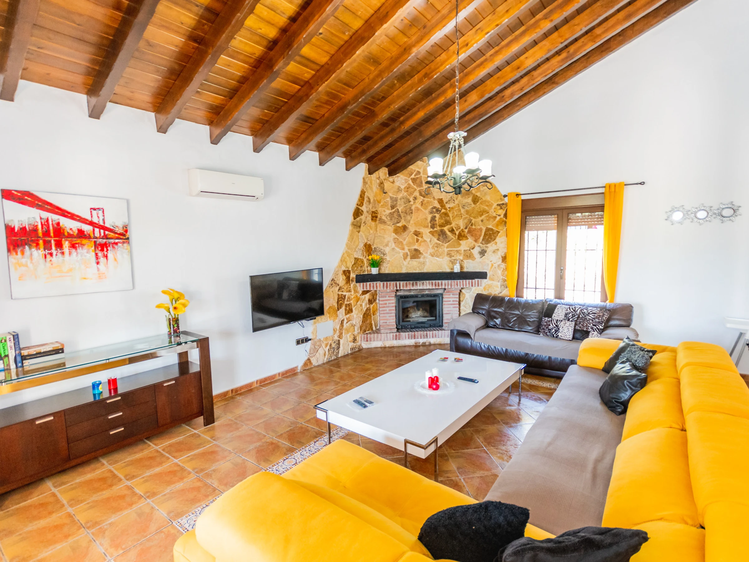 La propriété dispose de tous les services dont vous avez besoin : connexion WiFi gratuite, climatisation dans toute la maison (climatisation et pompe à chaleur), cheminée pour les journées les plus fraîches, parking en plein air et terrain clôturé pour plus de confidentialité et de sécurité.