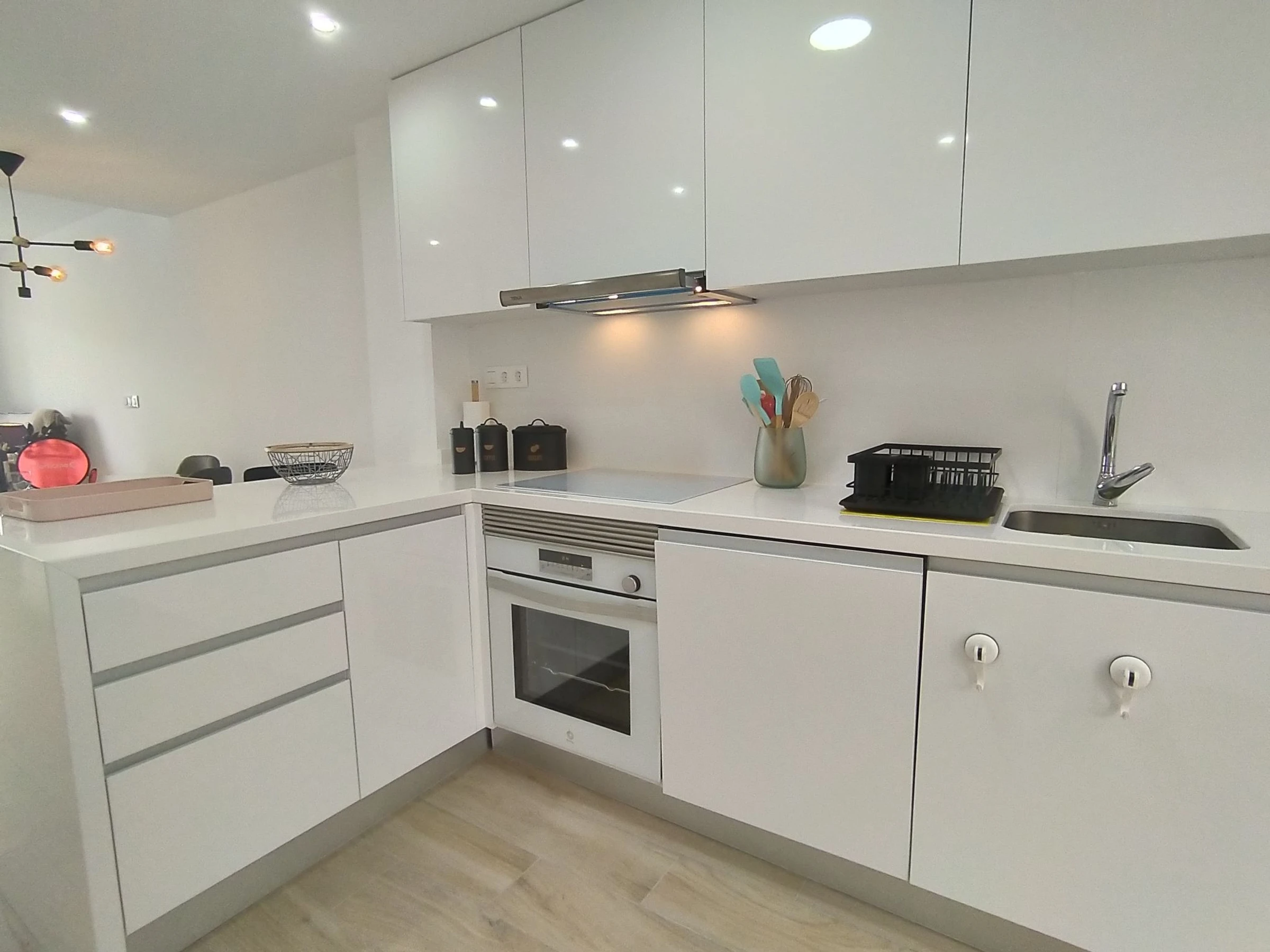 Maison mitoyenne moderne, confortable "Residencial Panoramic", de 3 étages. En bordure de la localité, à 5 km du centre de Finestrat en-dehors de la localité, à 9 km du centre de Benidorm, situation ensoleillée quartier résidentiel, à 3 km de la mer, à 3 km de la plage. En commun: terrain (clôturé), piscine (6 x 15 m, disponibilité saisonnière: [hidden] - [hidden] Bassin pour les enfants, douche extérieure, place de parking sur le terrain. Supermarché 2 km, restaurant 2 km, bar 2 km, arrêt de bus "Benidorm" 2 km, gare ferroviaire "Benidorm" 2 km. Terrain de golf (18 trous) 4 km, chemins de randonnées pédestres depuis la maison 300 m. Attractions à proximité: Terra Mitica 4 km, Terra Natura 5 km, Aqualandia 14 km, Mundomar 14 km, Alicante 44 km, Aeropuerto Alicante 56 km. Veuillez noter: voiture recommandée. Le propriétaire n'accepte pas les groupes de jeunes. Environnement très sensible au bruit. Silence et bonne tenue exigés.