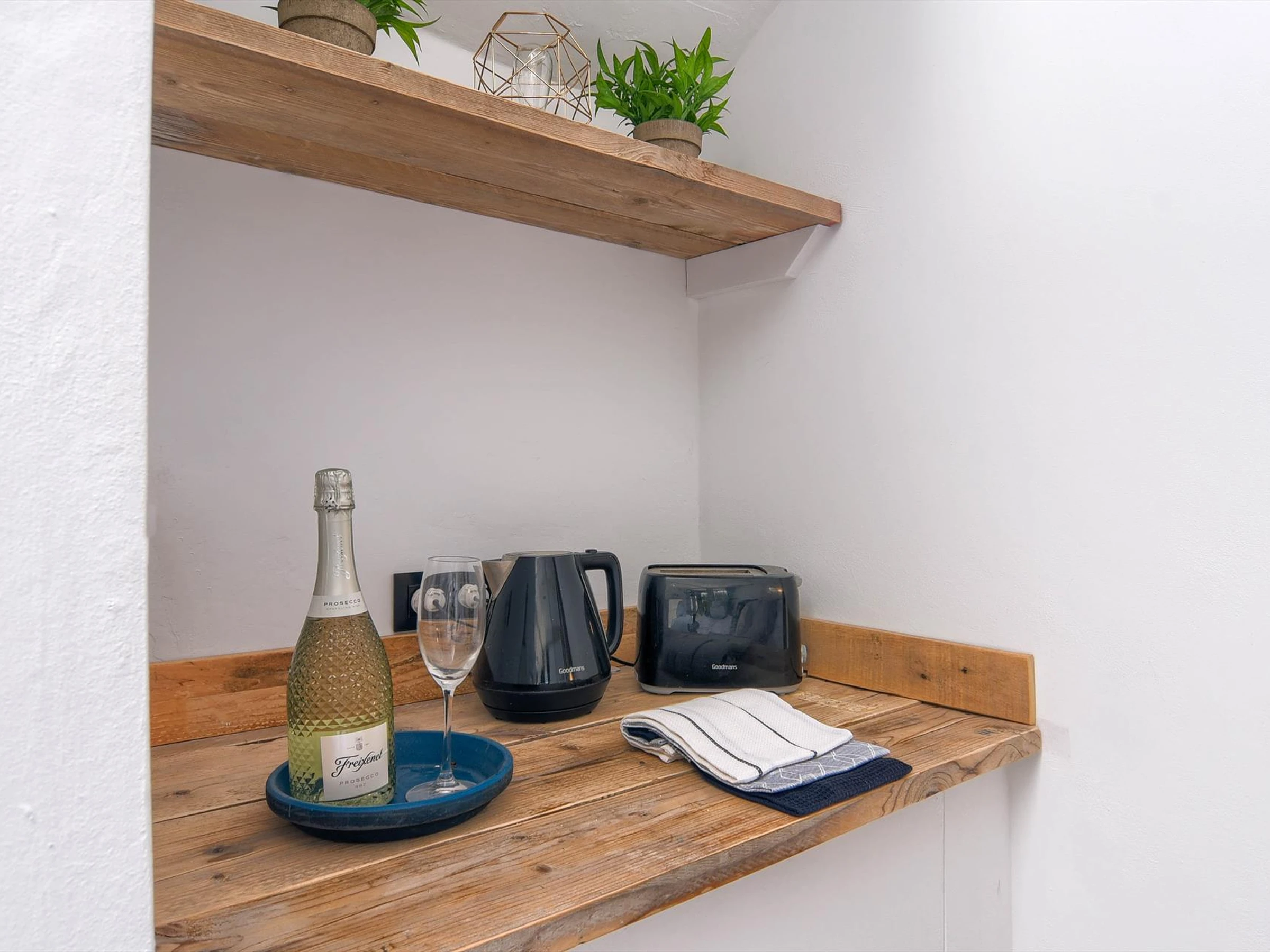 * cuisine américaine avec refrigérateur, bouilloire et grille-pain