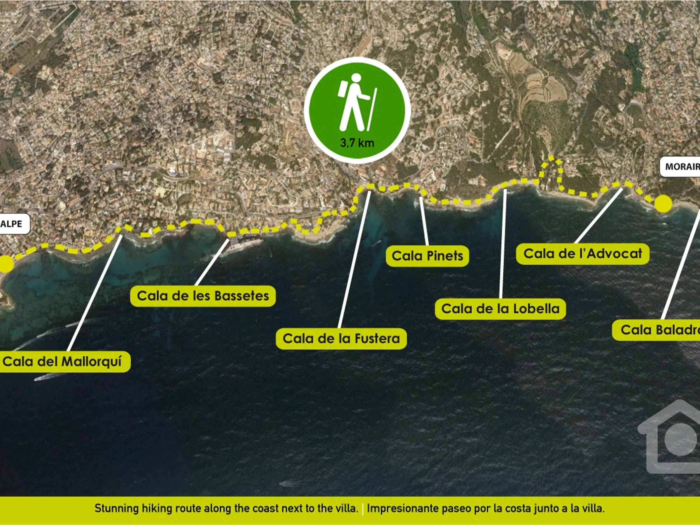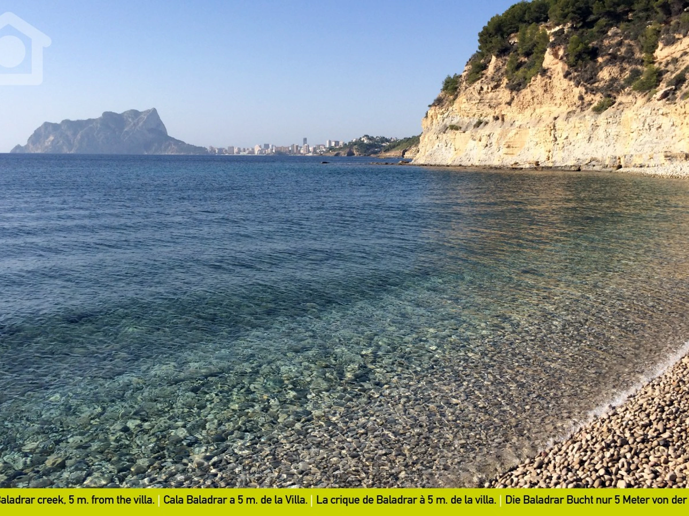 Cette magnifique maison se trouve dans un site privilégié, Cala Baladrar, l’une des plus belles criques de la Costa Blanca. Elle se situe à seulement 5 minutes du charmant village de pêcheurs de Moraira, réputé pour ses spectaculaires plages de sable fin et ses eaux cristallines.
