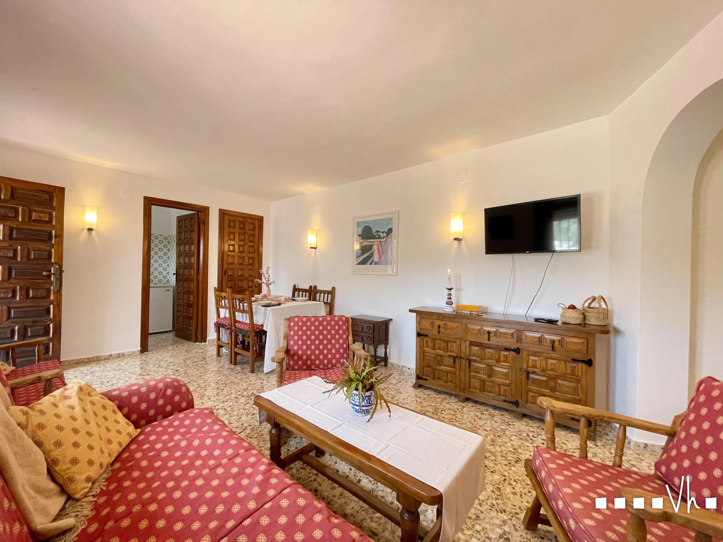 Le logement est divisé en deux étages ; le premier étage dispose d'un salon-salle à manger chaleureux de style colonial avec une vue panoramique sur le majestueux Peñon d'Ifach, une cheminée à bois, une cuisine entièrement équipée, et deux chambres avec des lits individuels suivis d'une salle de bain complète.
