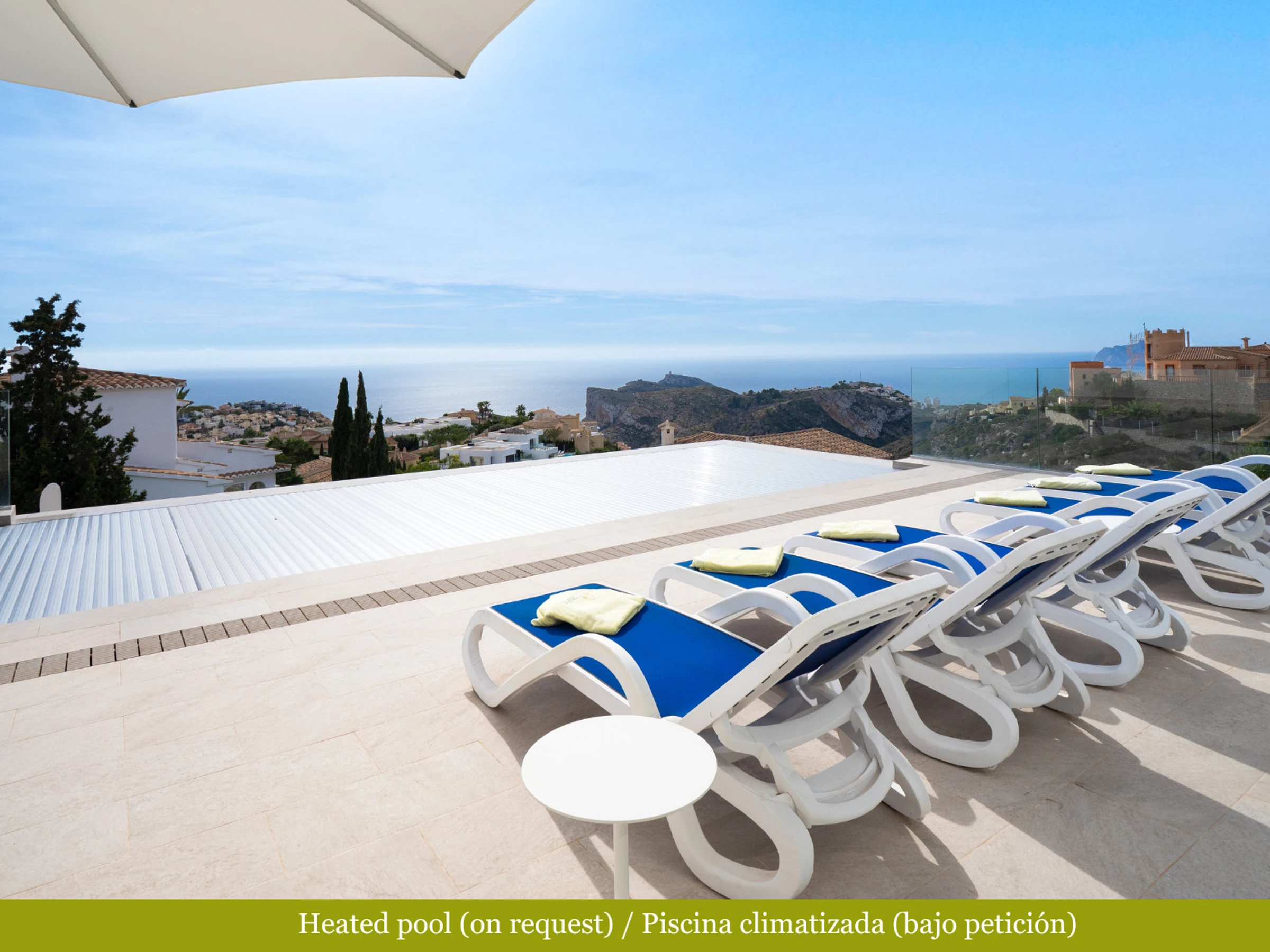 À l'extérieur, vous profiterez d'une piscine privée à débordement avec vue sur la mer, terrasse et jardin. Pour ceux qui recherchent un confort supplémentaire, la piscine peut être chauffée (ce service est disponible sur demande et avec un supplément), parfaite pour se baigner à la température idéale tout au long de l'année.