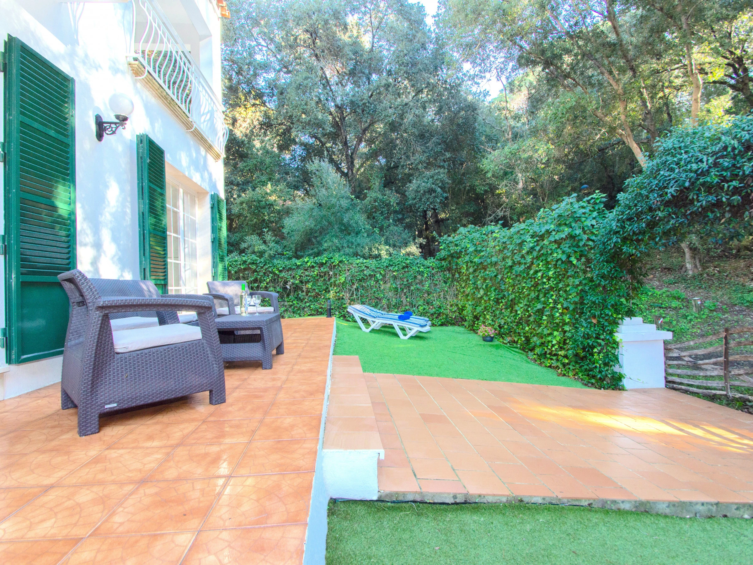 L’extérieur de la villa en location dispose de deux terrasses réparties sur deux niveaux. Casa Playa offre deux fauteuils confortables et un canapé de jardin pour profiter du calme et de la nature environnante, des transats dans le jardin et un autre espace barbecue avec table et chaises d’extérieur. Sur la terrasse supérieure se trouvent davantage de transats pour profiter du soleil et de l’intimité.