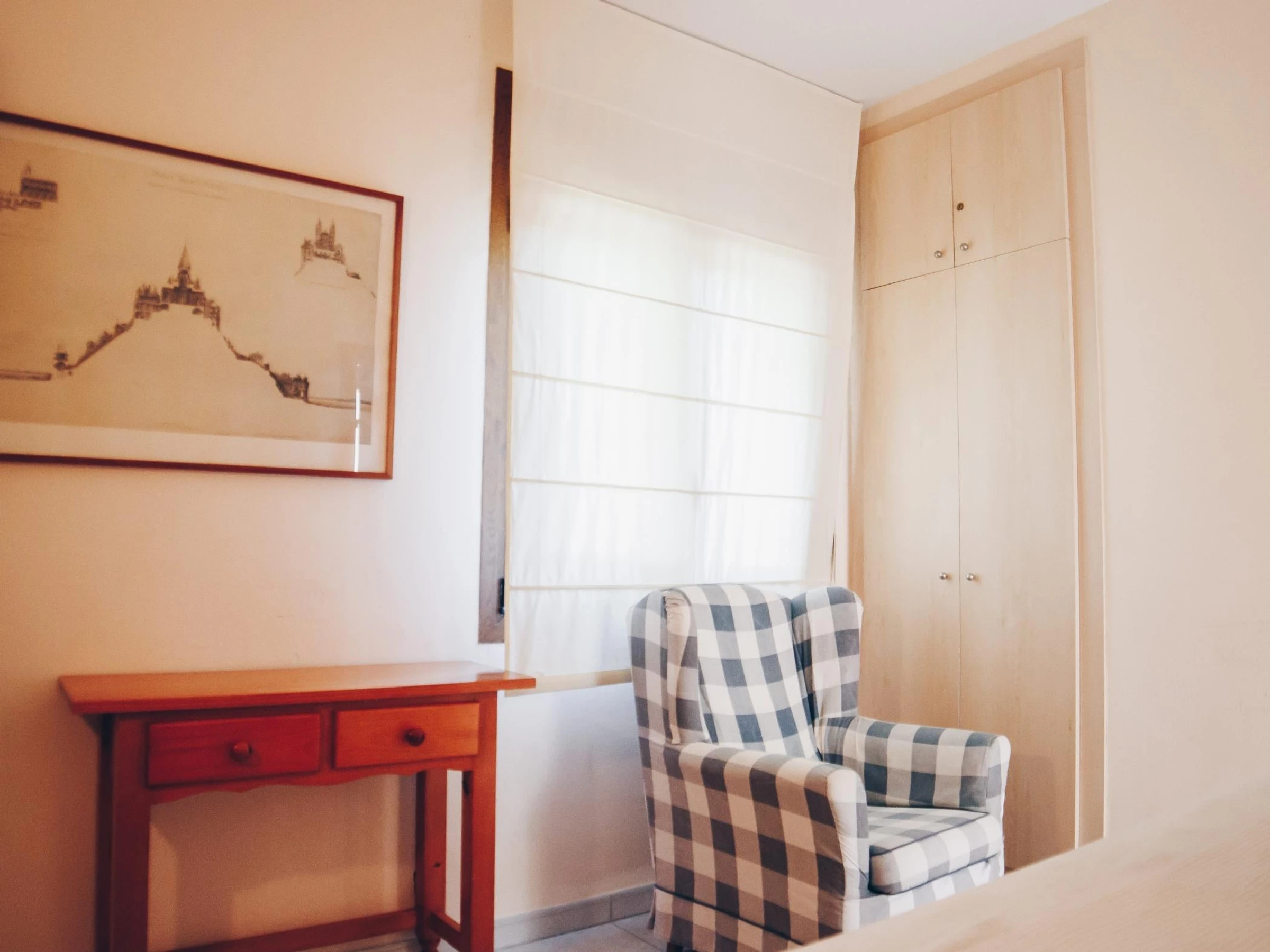 L'appartement a une capacité maximale de 6 personnes, réparties en 3 chambres et 1 salle de bain. La première chambre a un lit double, la deuxième a deux lits individuels et la troisième a également deux lits individuels et un fauteuil. Toutes les chambres ont une armoire et une lumière extérieure. Il y a une salle de bain avec douche et un autre espace séparé qui a des toilettes.