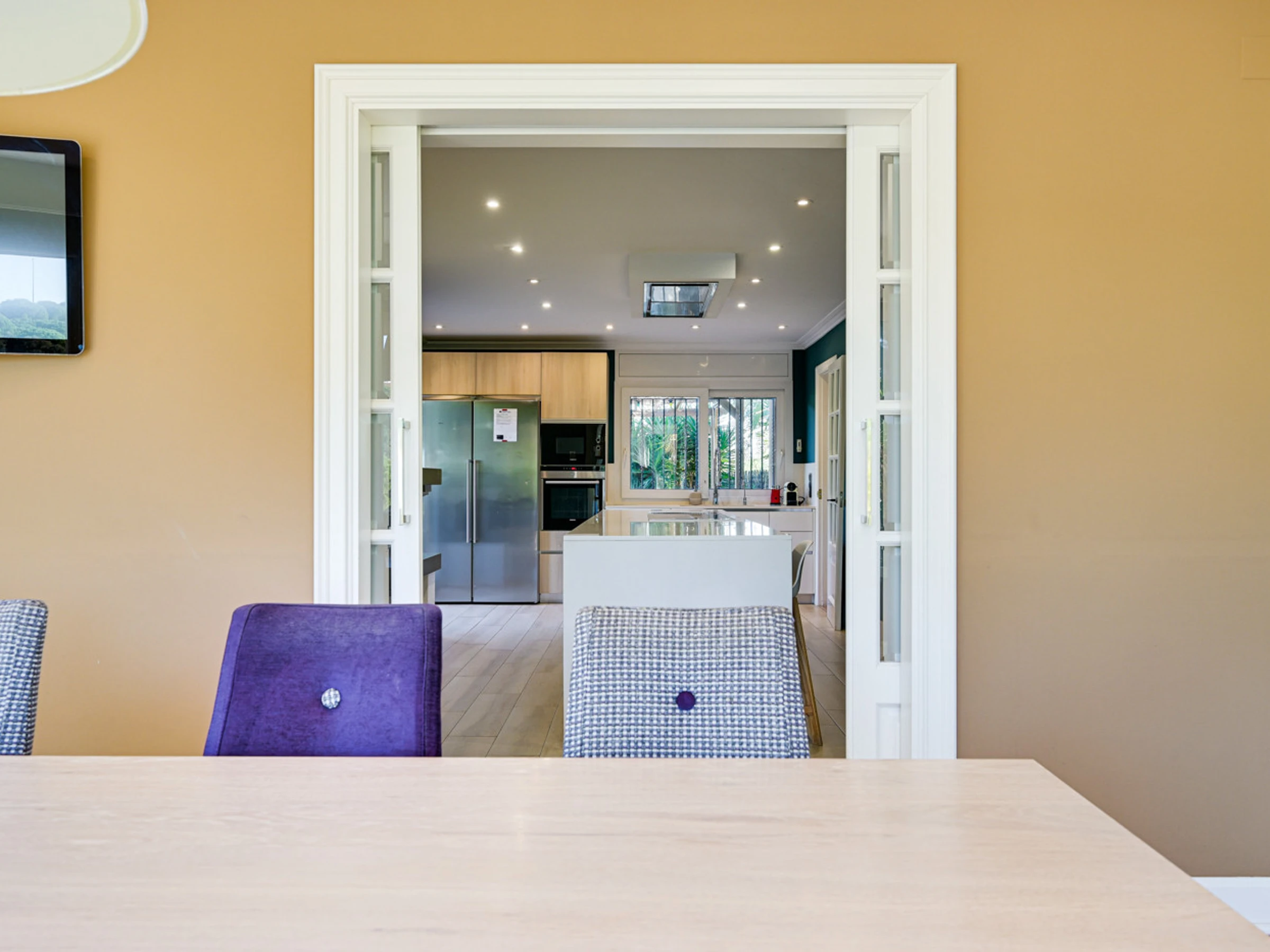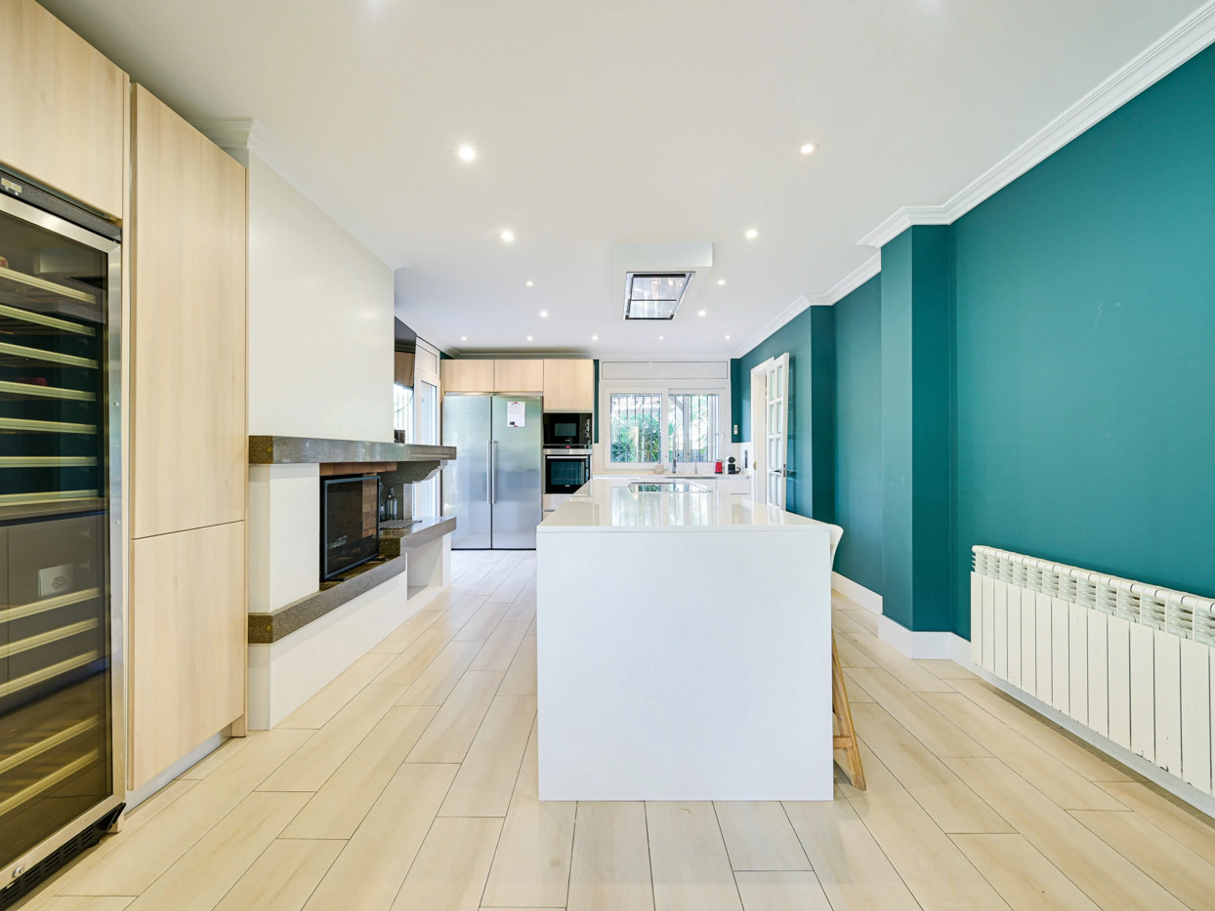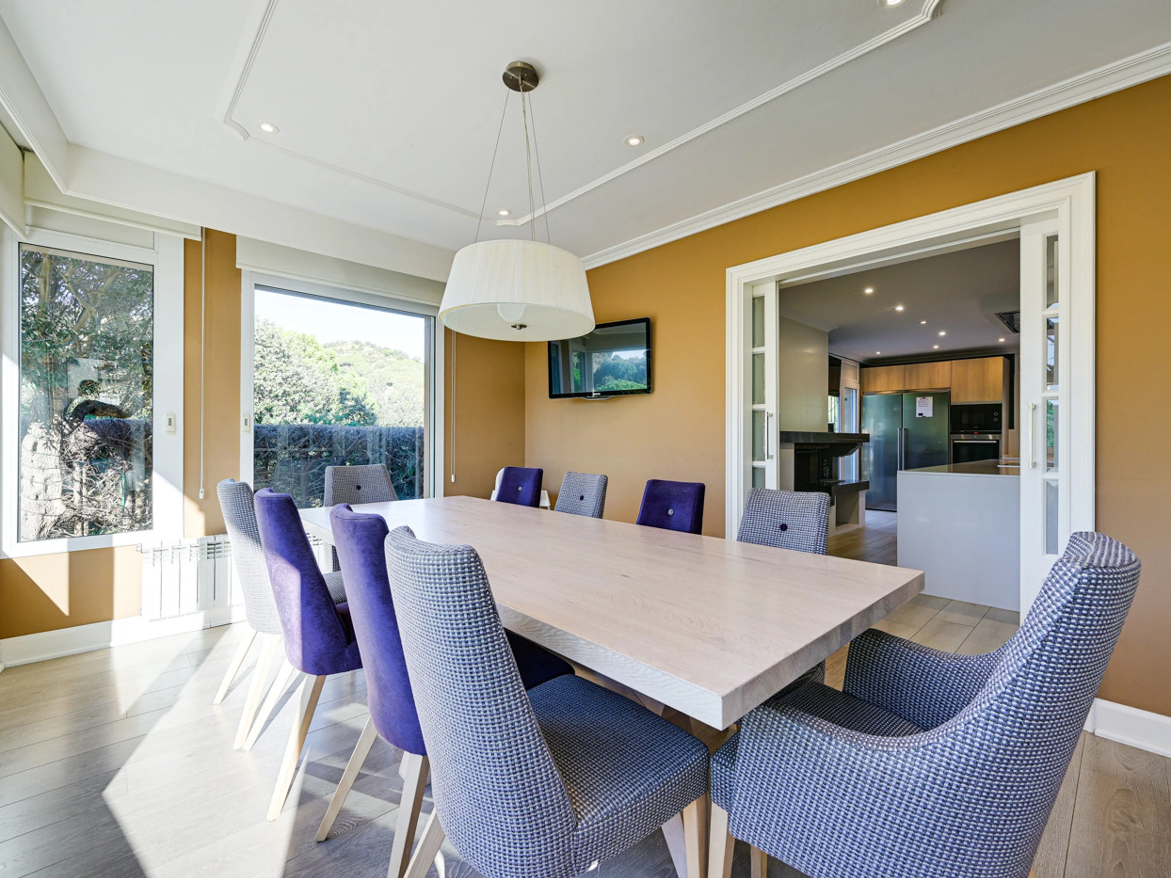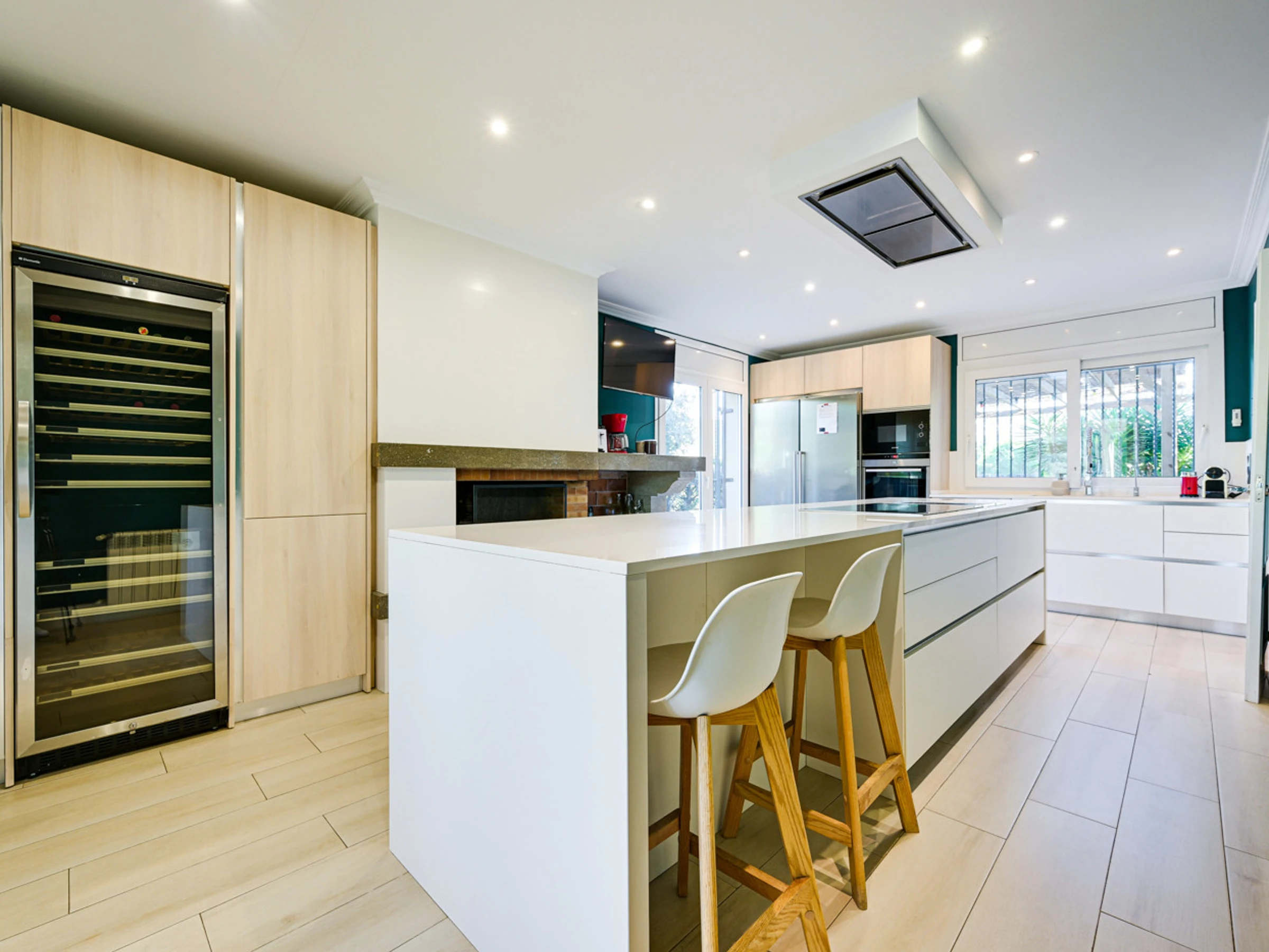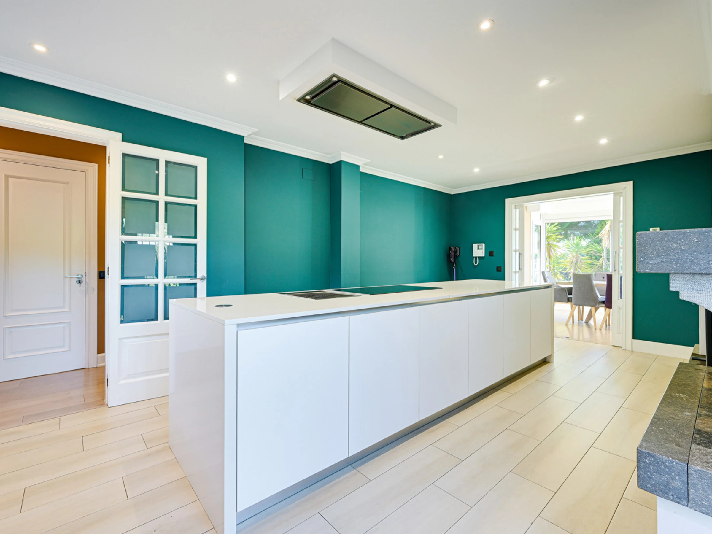 De l’autre côté du hall se trouvent la salle à manger vitrée et une grande cuisine moderne entièrement équipée. Un WC indépendant est également présent à cet étage.